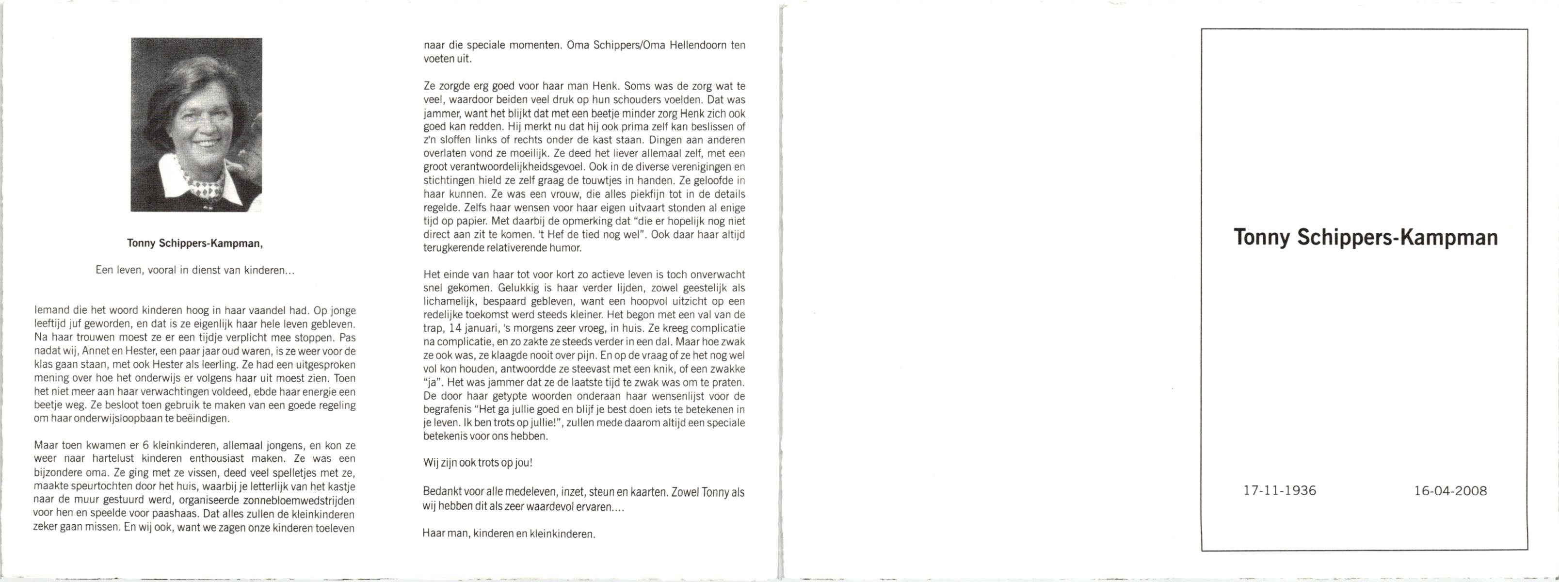 KAMPMAN, , Tonny, geboren op 17-11-1936, overleden op 16-4-2008 op 71-jarige leeftijd.