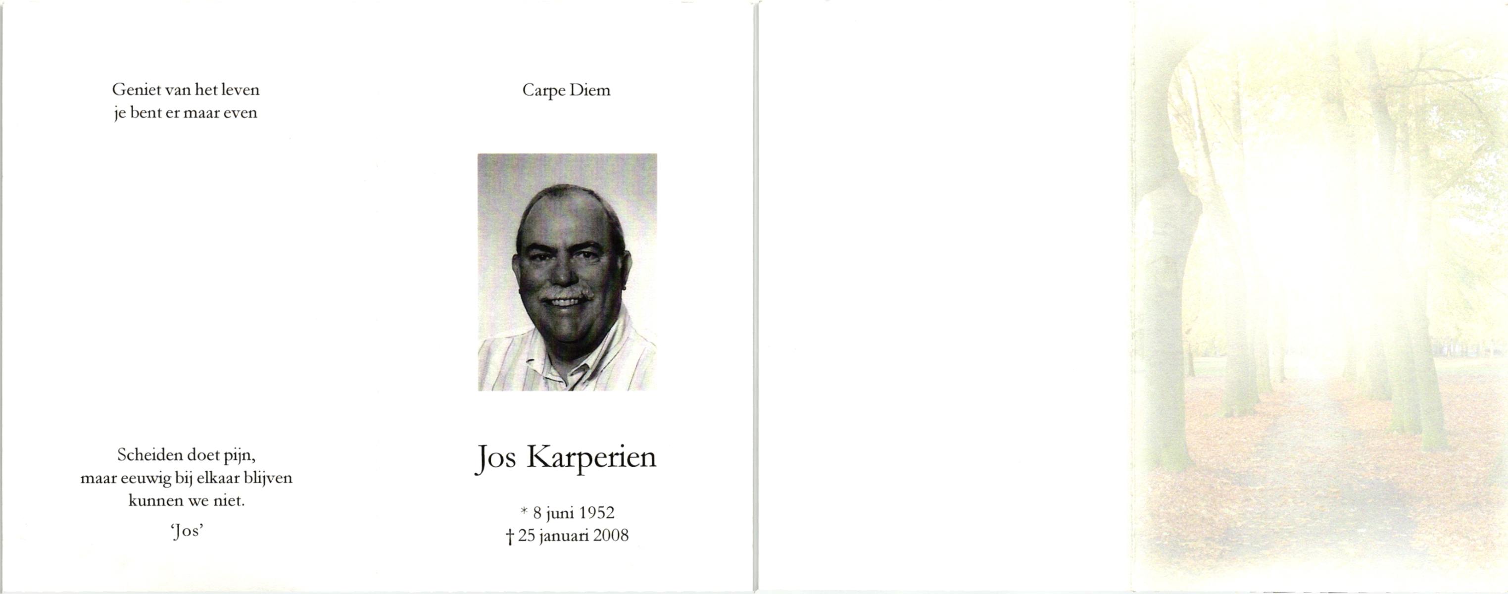 KARPERIEN, , Jos, geboren op 8-6-1952, overleden op 25-1-2008 op 55-jarige leeftijd.
