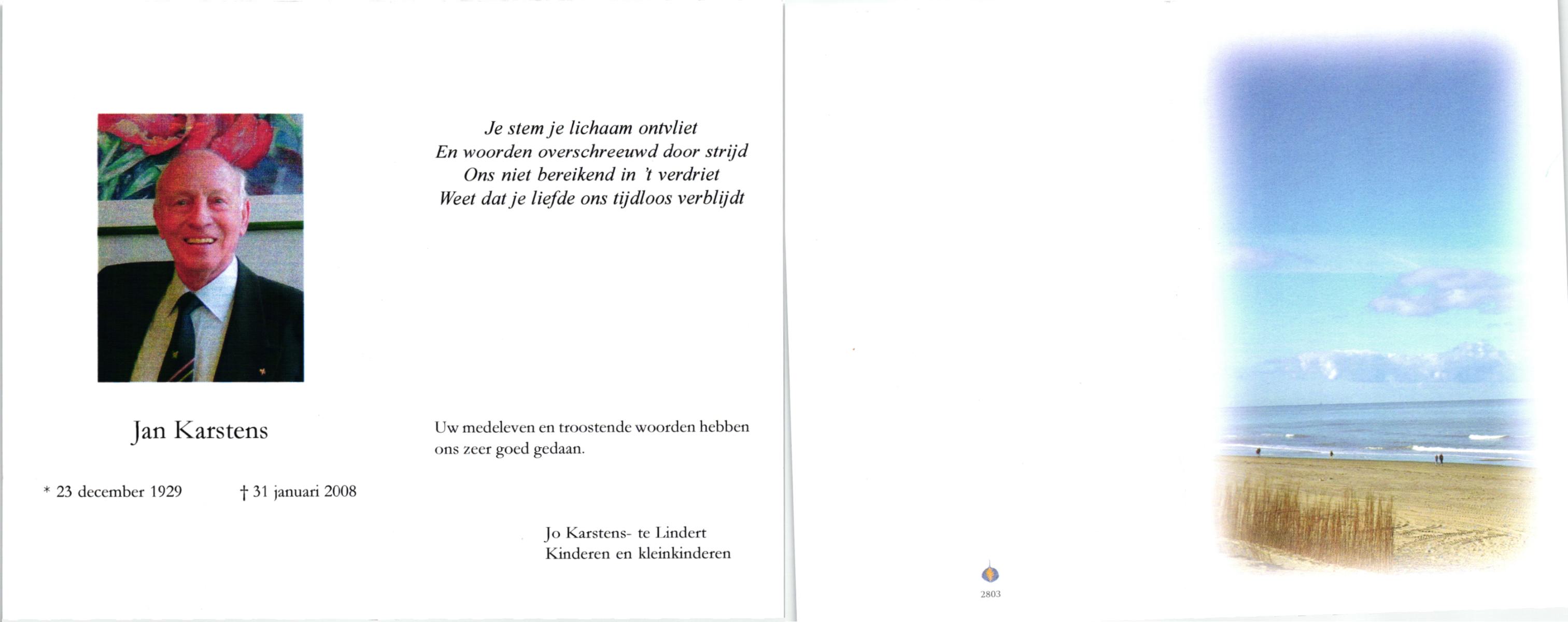 KARSTENS, , Jan, geboren op 23-12-1929, overleden op 31-1-2008 op 78-jarige leeftijd.