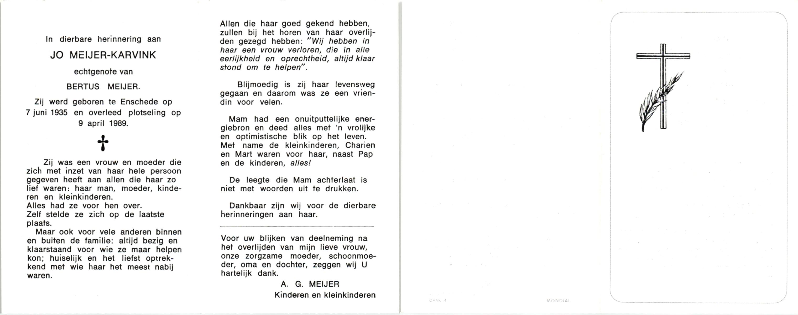 KARVINK, , Jo, geboren op 7-6-1935 te Enschede, overleden op 9-4-1989 te Enschede op 53-jarige leeftijd.