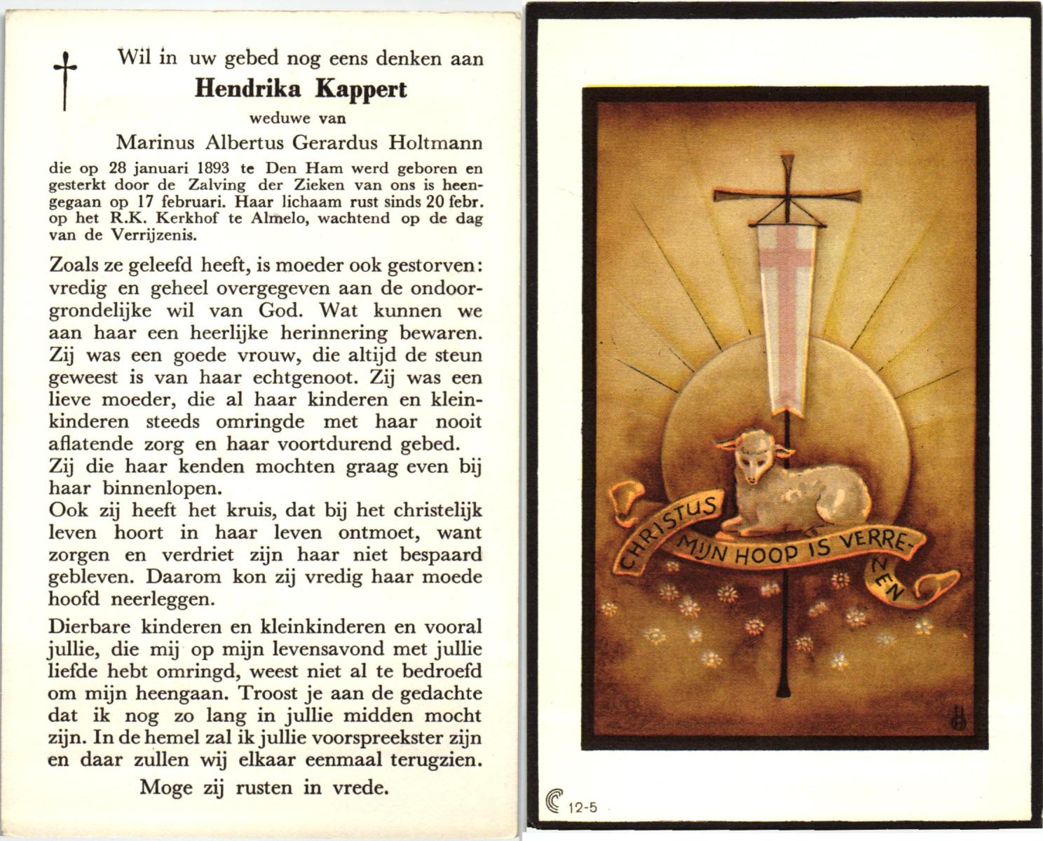 KAPPERT, Hendrika, geboren op 28-01-1893 te Den Ham, overleden op 17-02-0001, begraven op 20-02-0001 te Almelo.