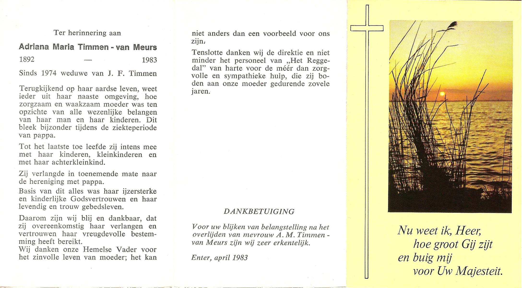 MEURS, van, Adriana Maria, geboren op 00-00-1892, overleden op 00-04-1983 te Enter op 91-jarige leeftijd.