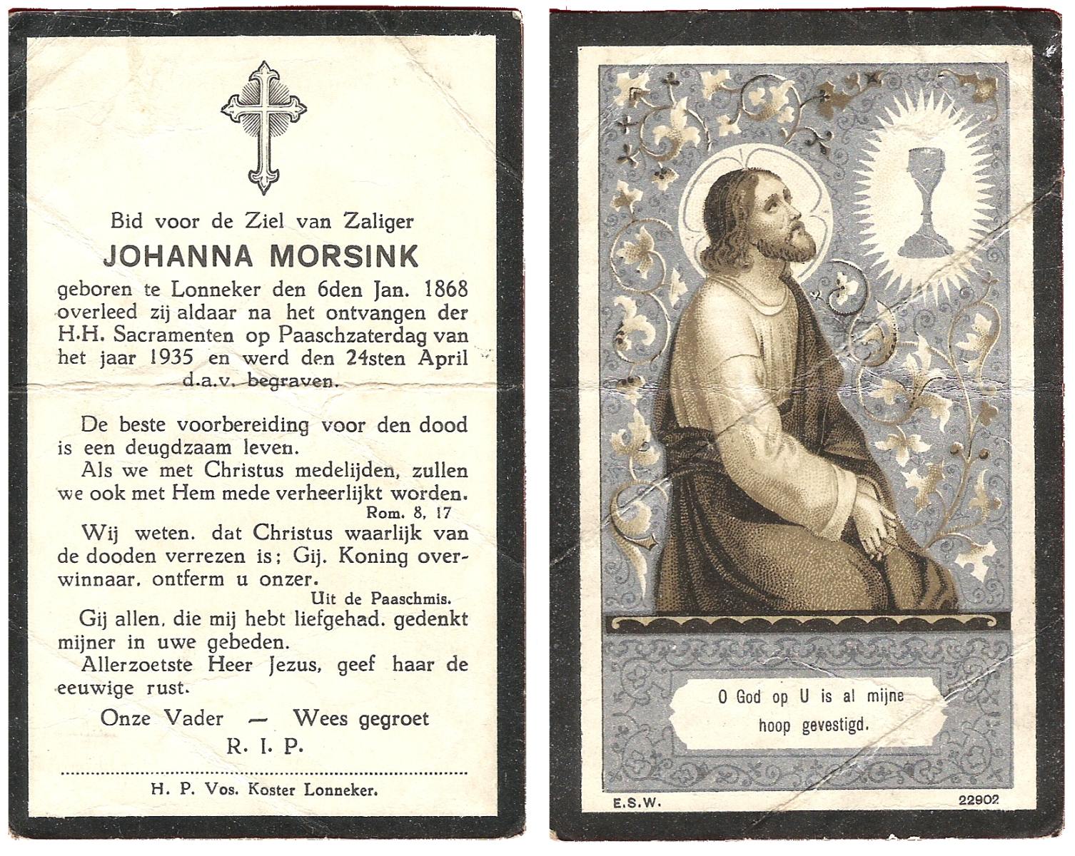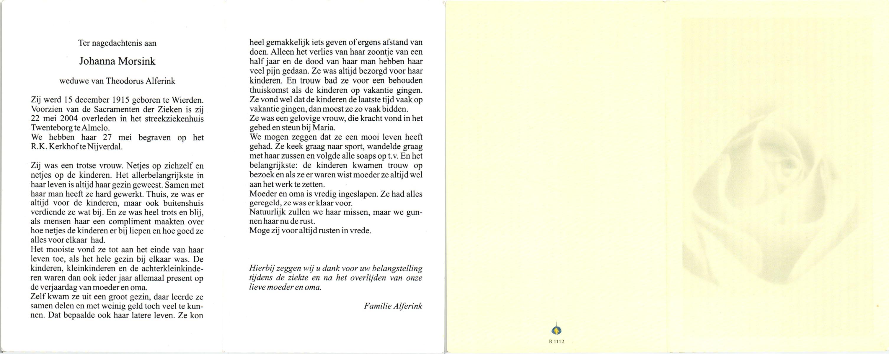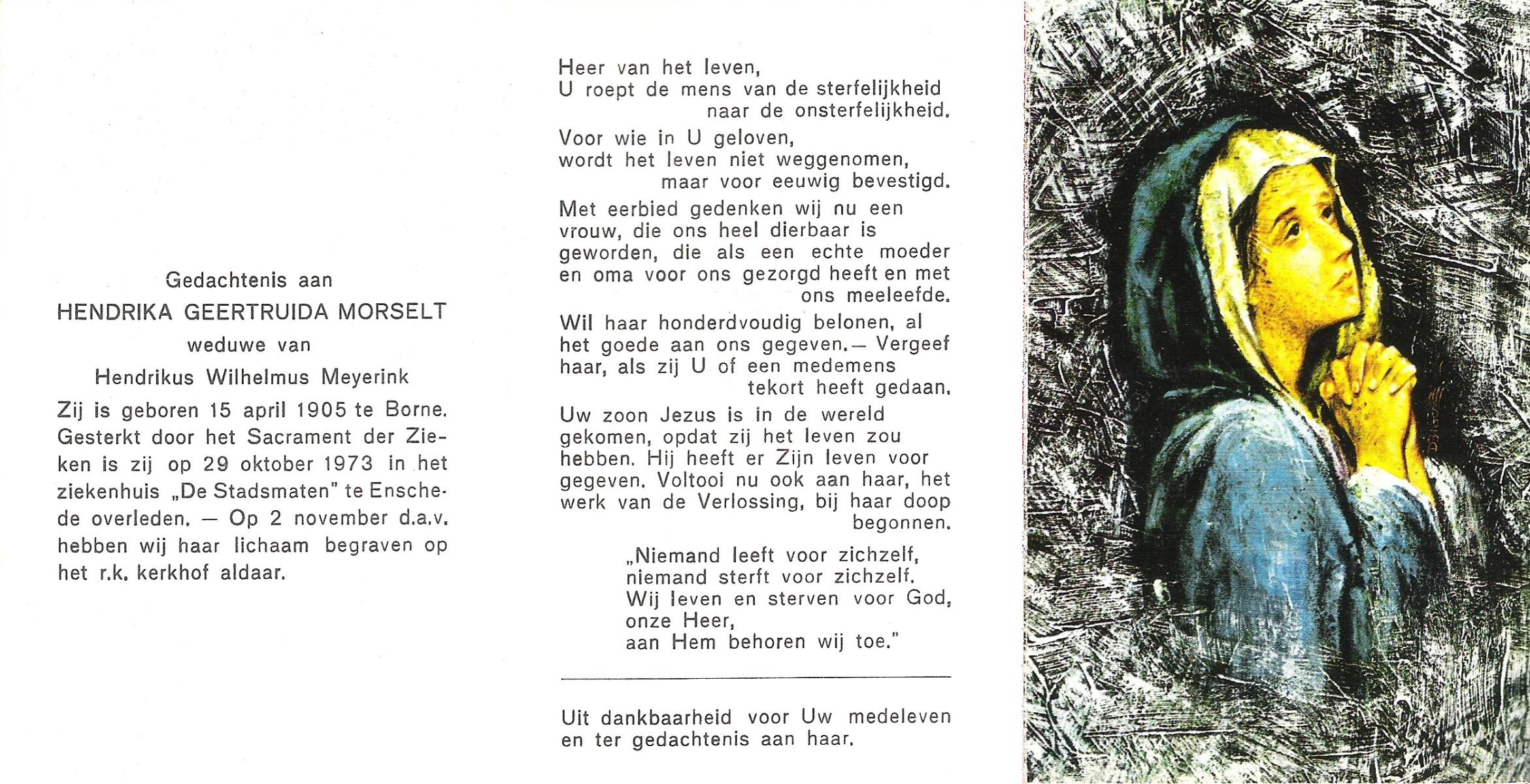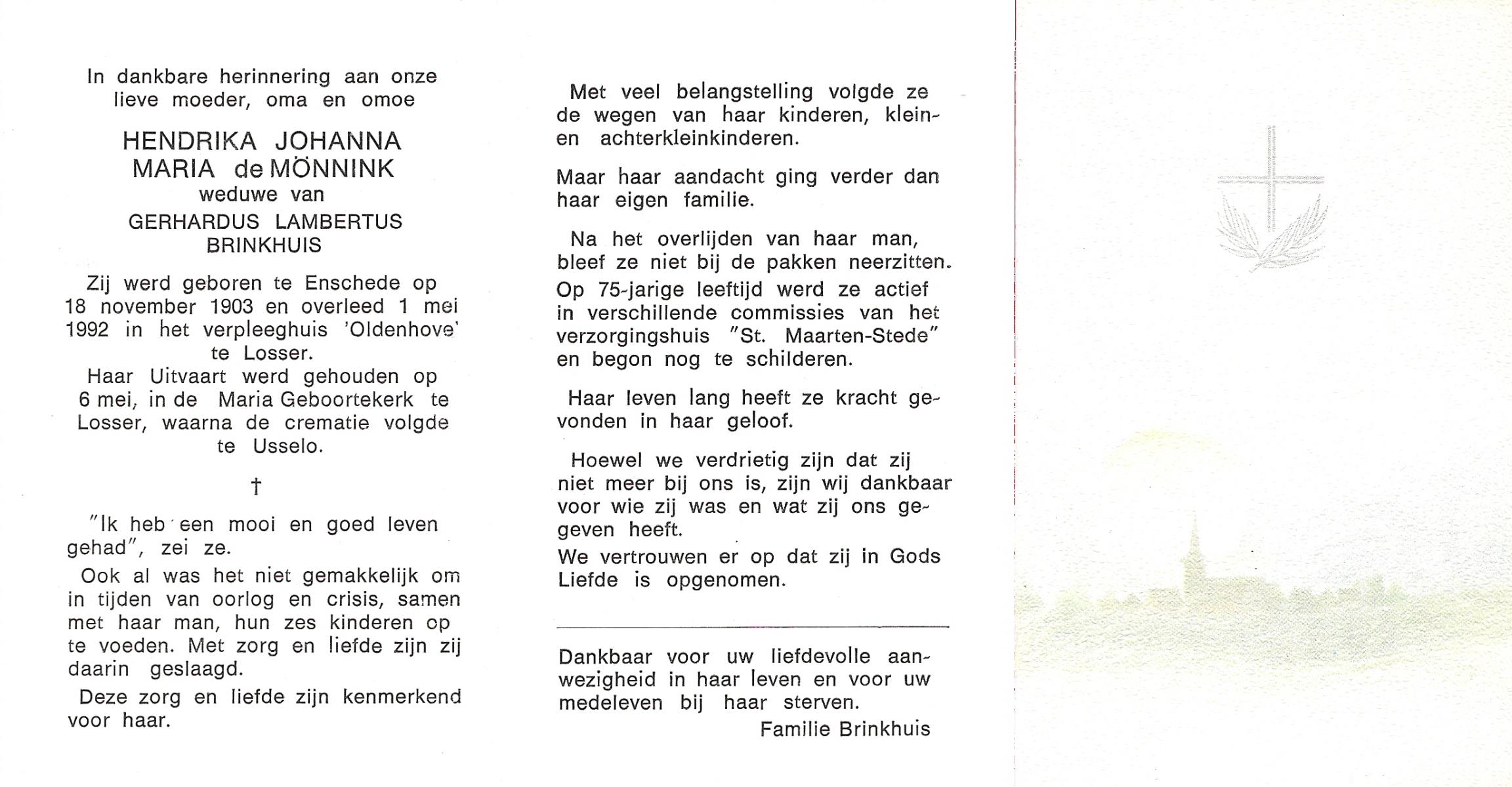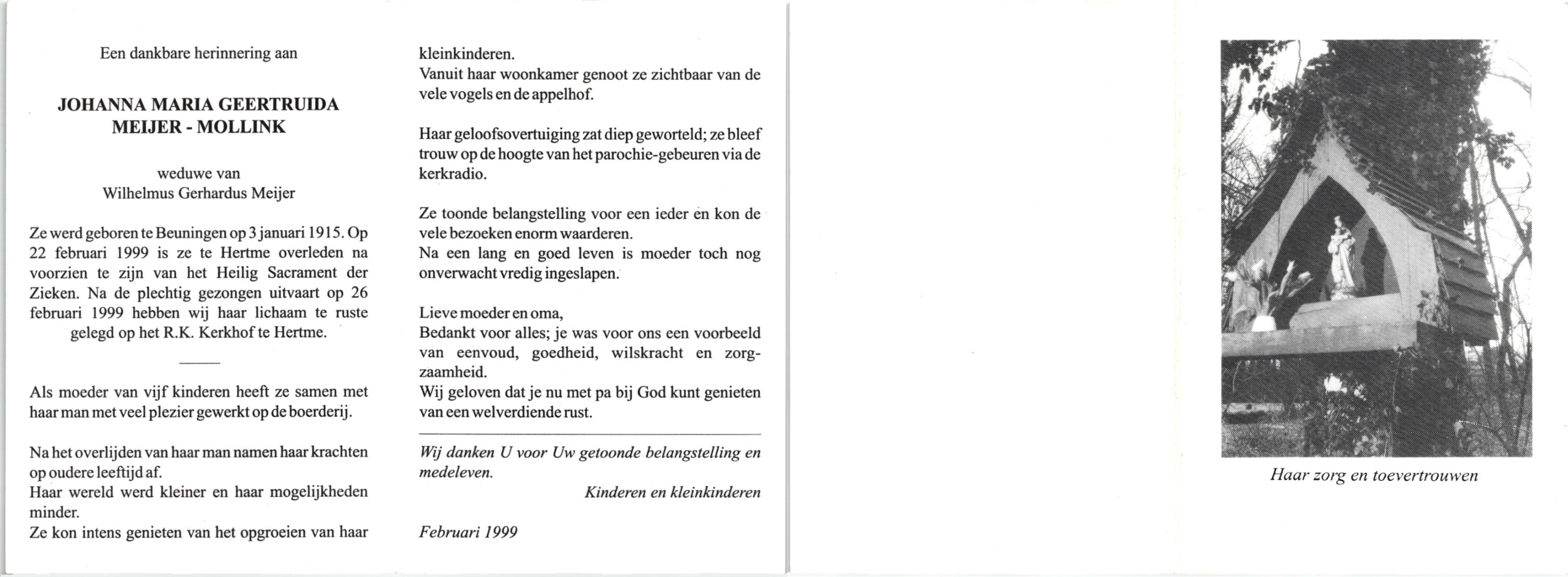 MEYERINK, Johanna Catharina Maria, geboren op 25-2-1908 te Hengelo (O), overleden op 27-6-1992 te Hengelo (Ov.) op 84-jarige leeftijd.