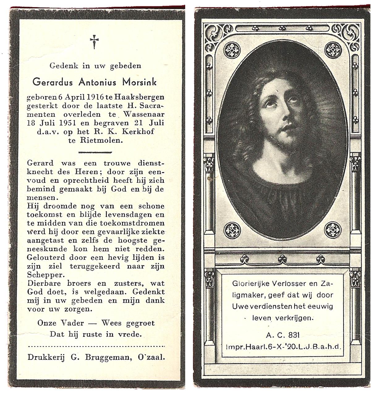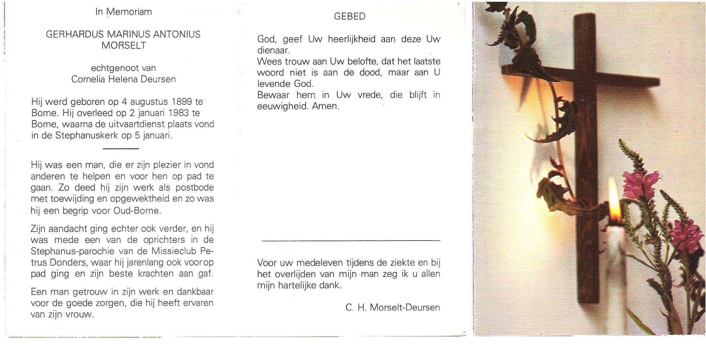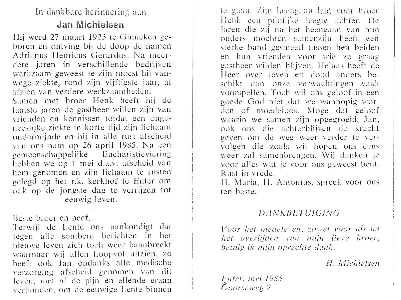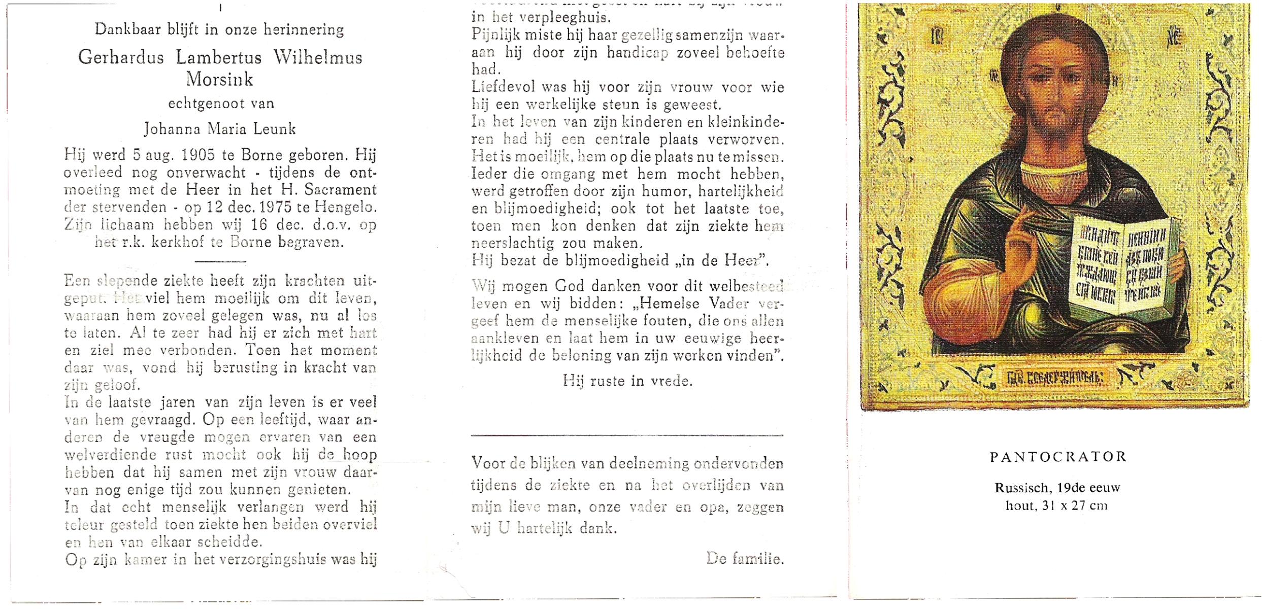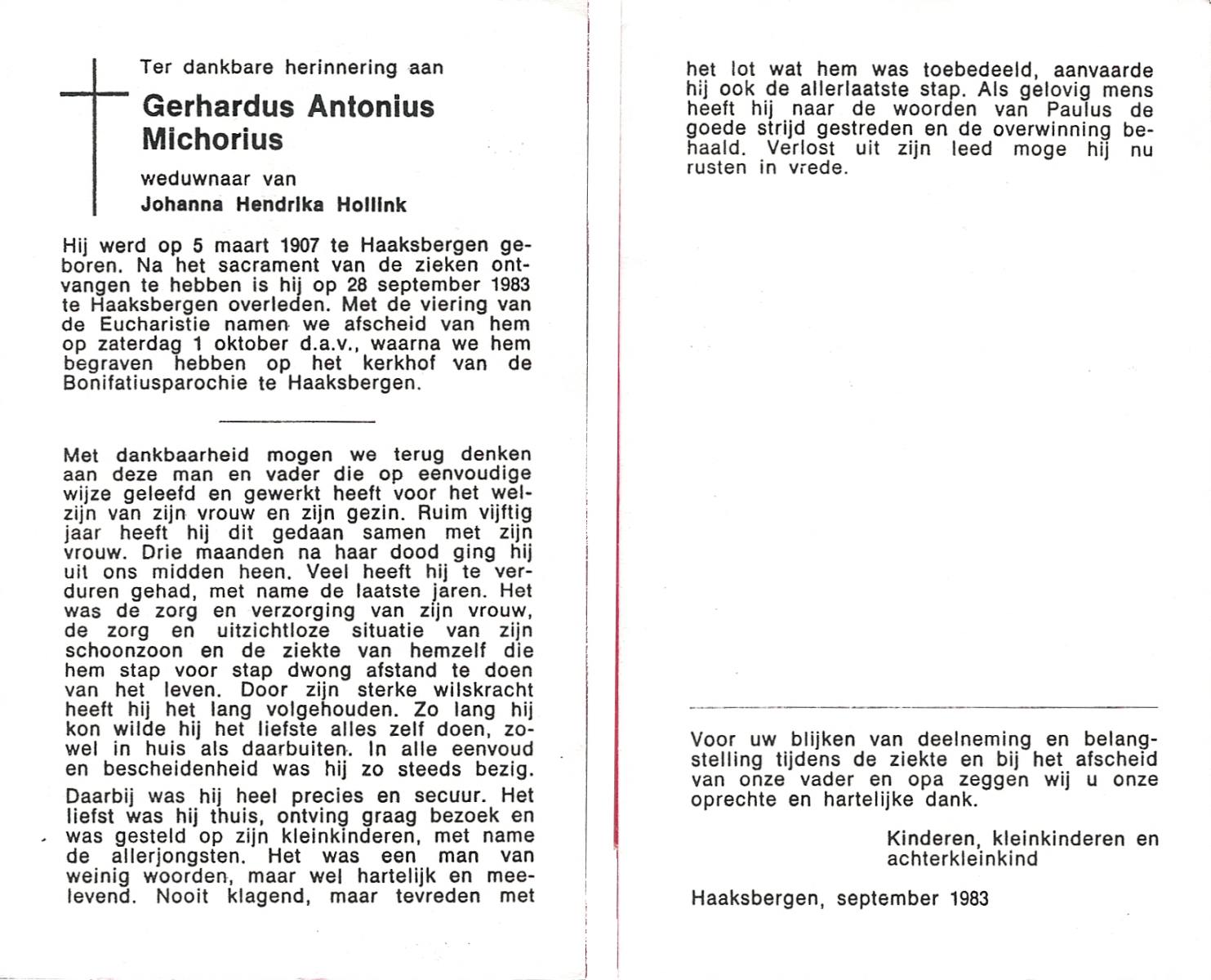 MICHORIUS, Gerhardus Antonius, geboren op 5-3-1907 te Haaksbergen, overleden op 28-9-1983 te Haaksbergen op 76-jarige leeftijd, begraven op 1-10-1983 te Haaksbergen.