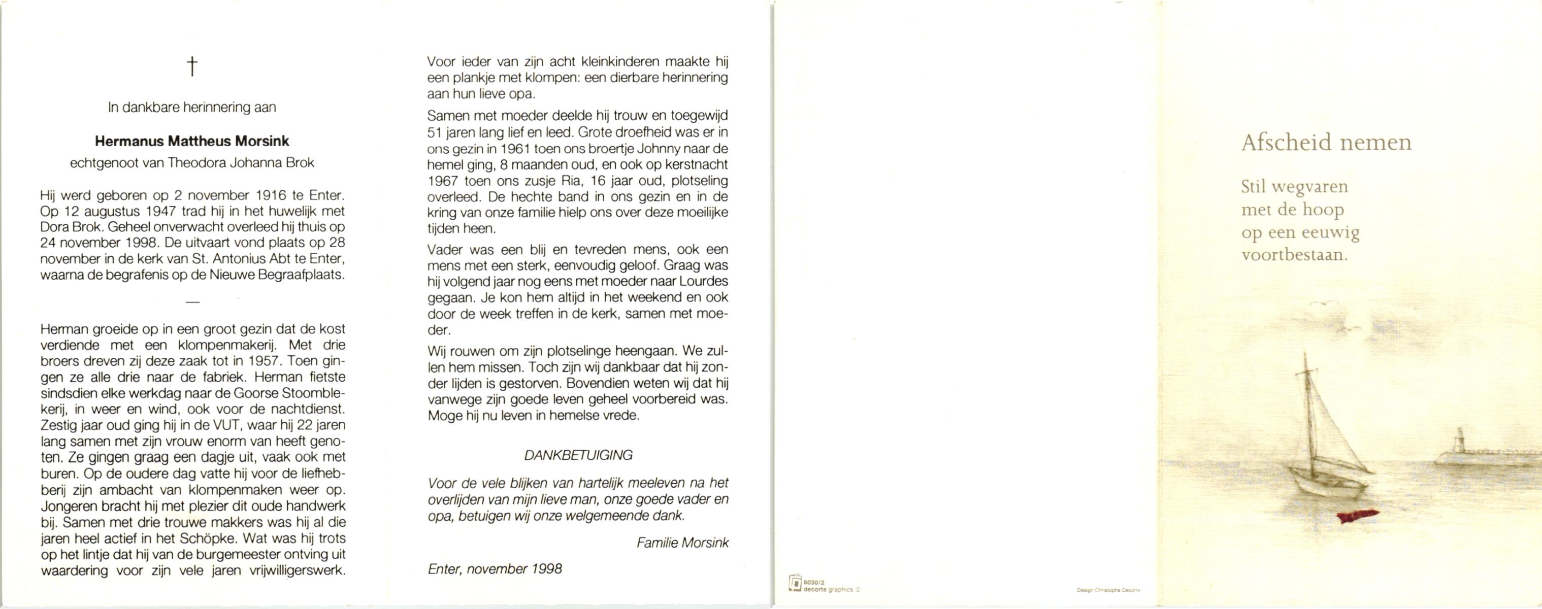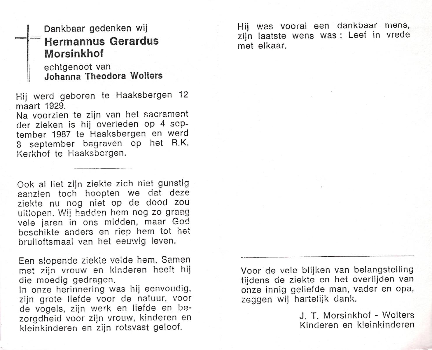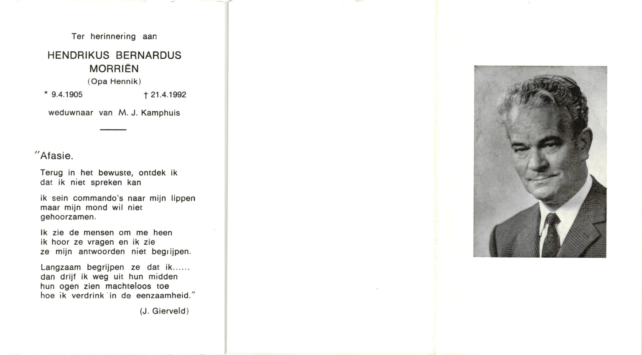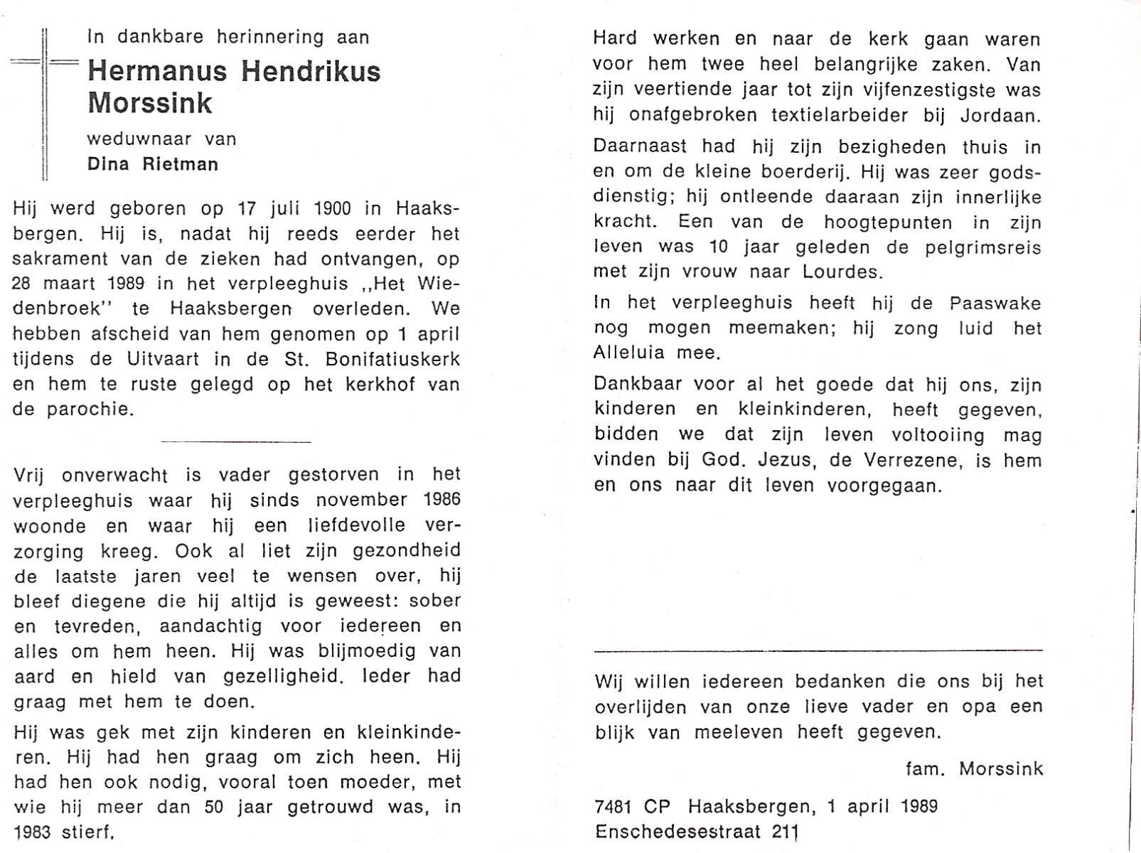 MICHORIUS, Hermanus Marinus, geboren op 26-5-1922 te Haaksbergen, overleden op 18-3-1992 te Hengelo (Ov.) op 69-jarige leeftijd, gecremeerd op 23-3-1992 te Usselo.