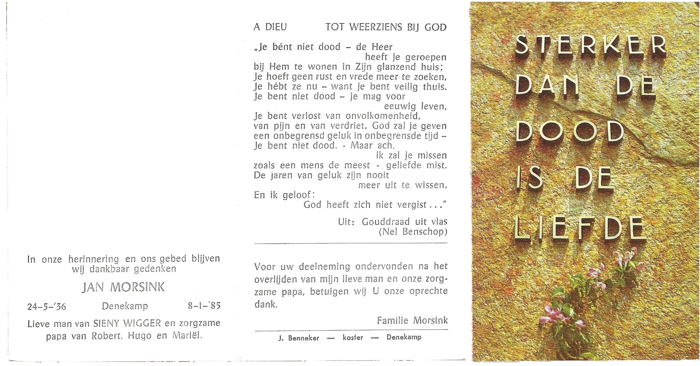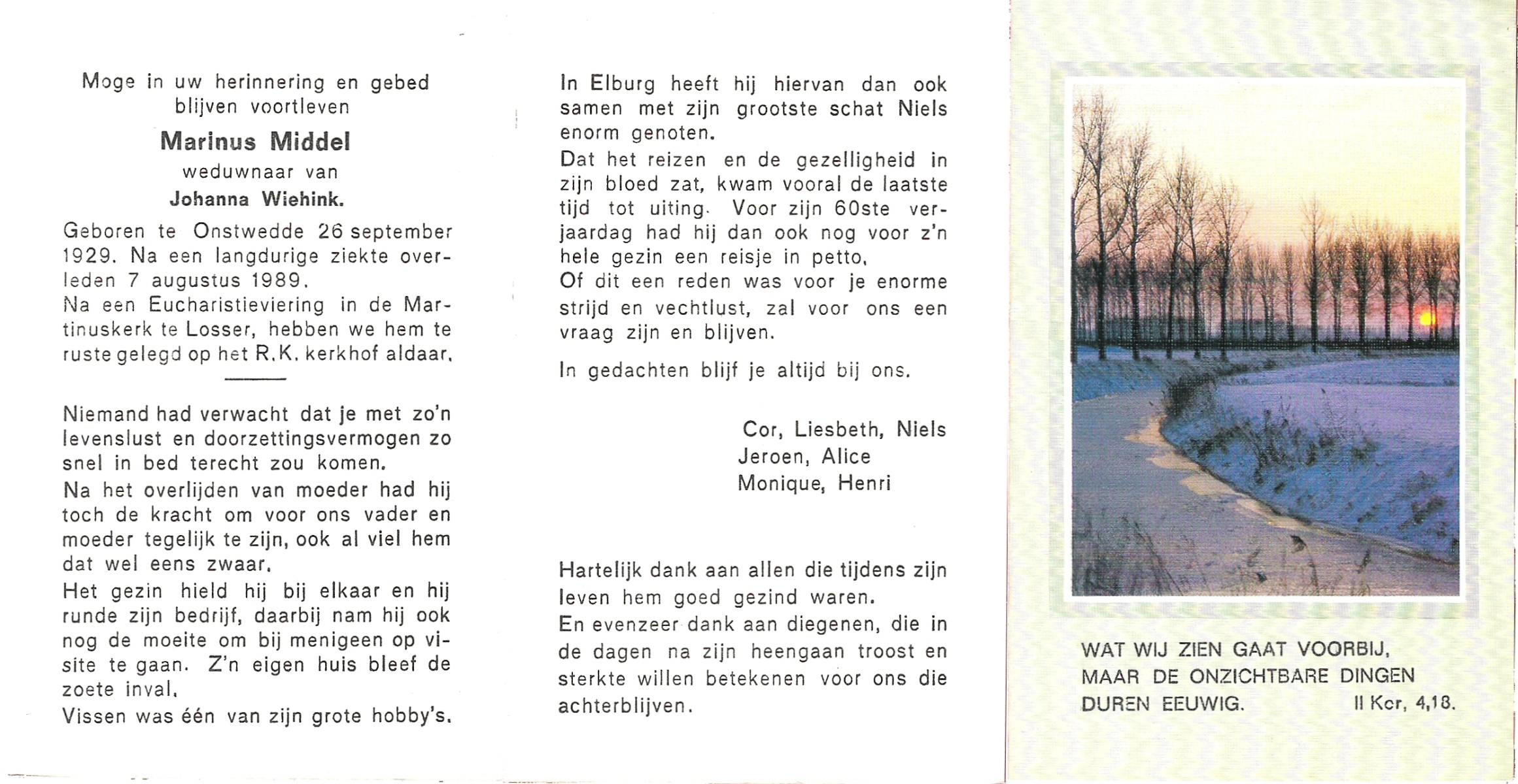 MIDDEL, Marinus, geboren op 26-9-1929 te Ontstwedde, overleden op 7-8-1989 te Losser op 69-jarige leeftijd, begraven te Losser.