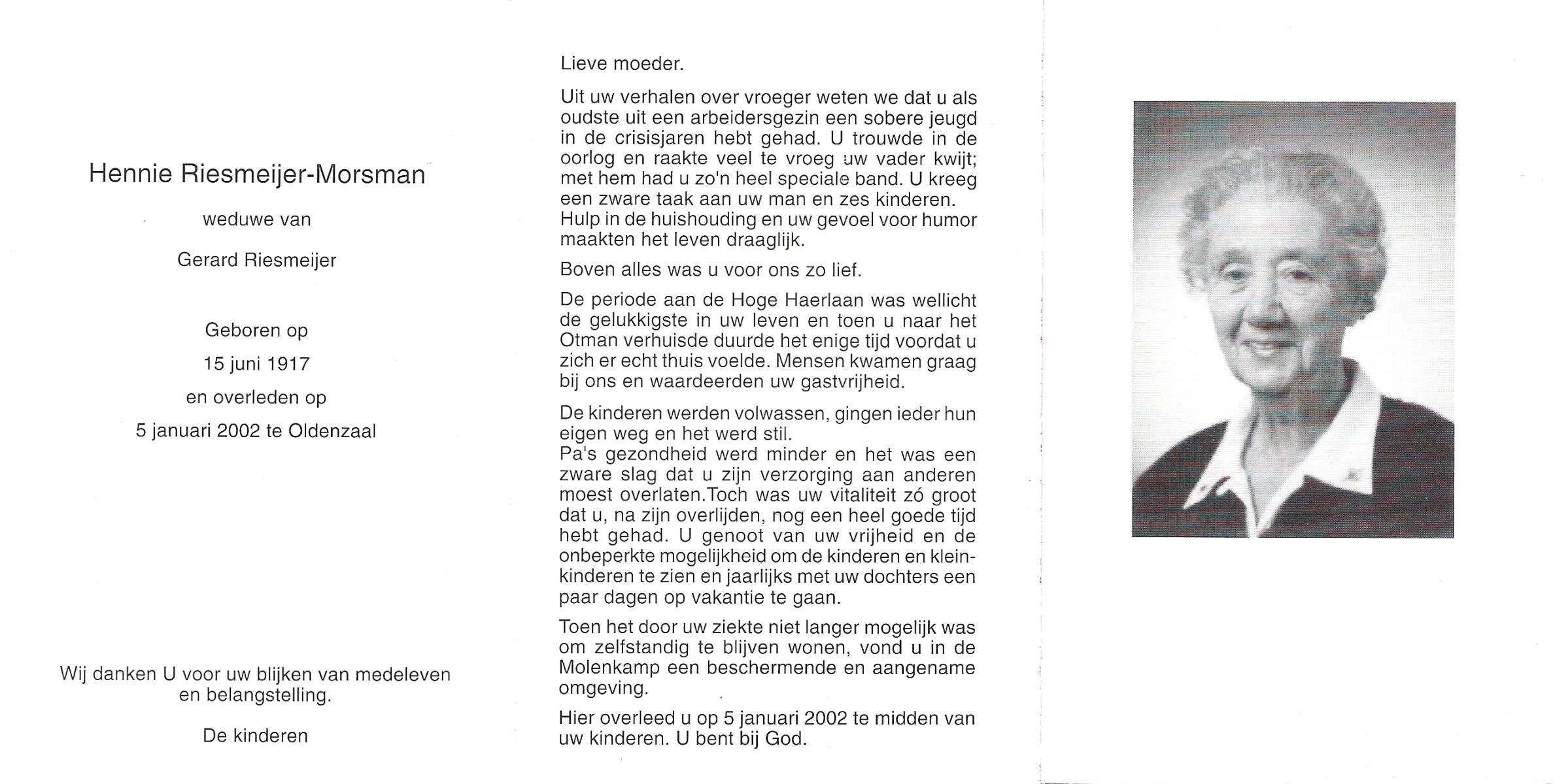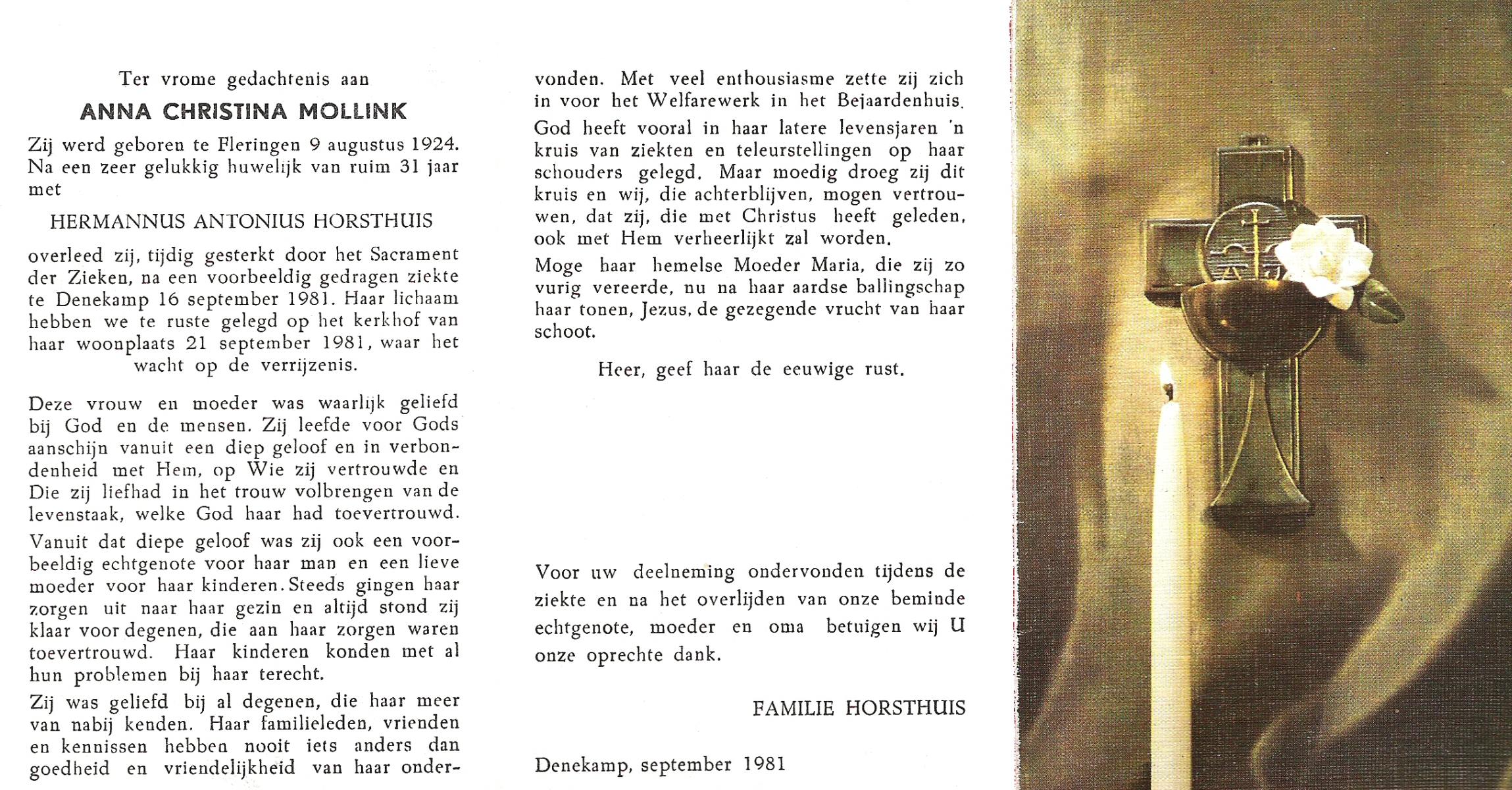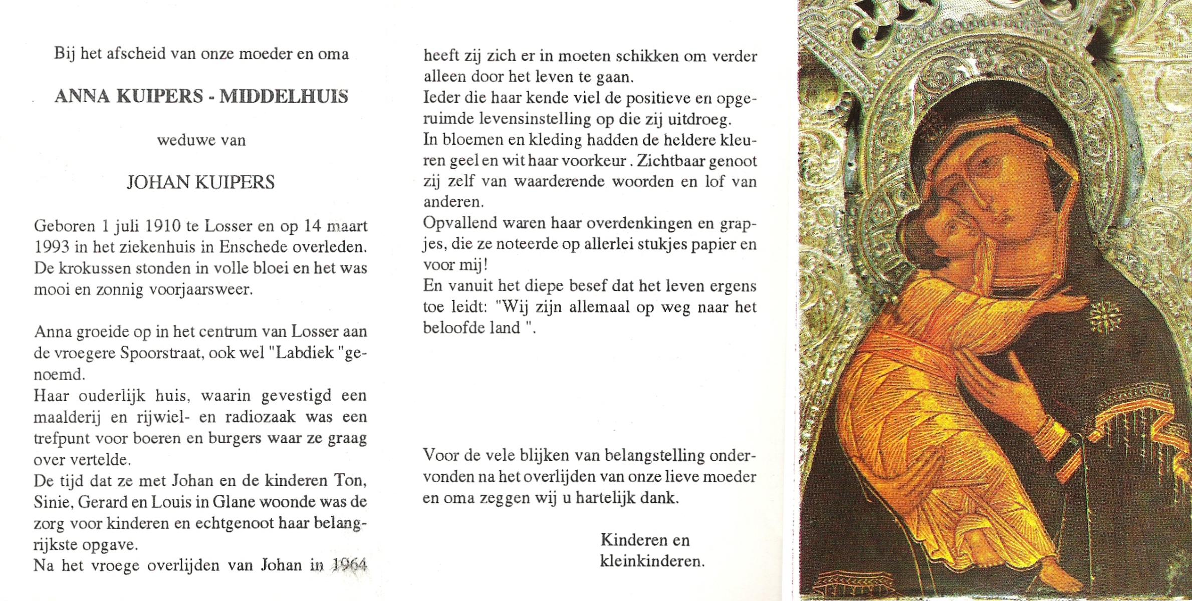 MIDDELHUIS, Anna, geboren op 1-7-1910 te Losser, overleden op 14-3-1993 te Enschede op 82-jarige leeftijd.