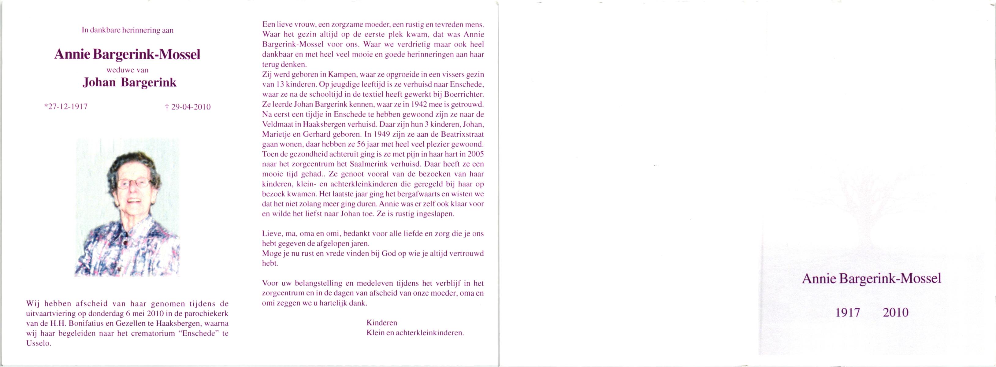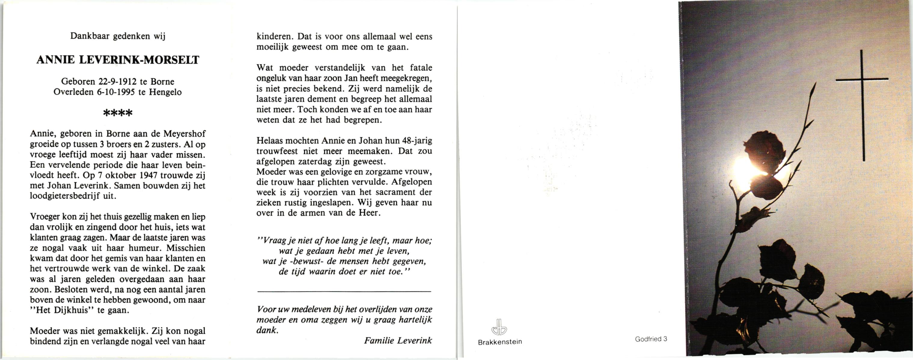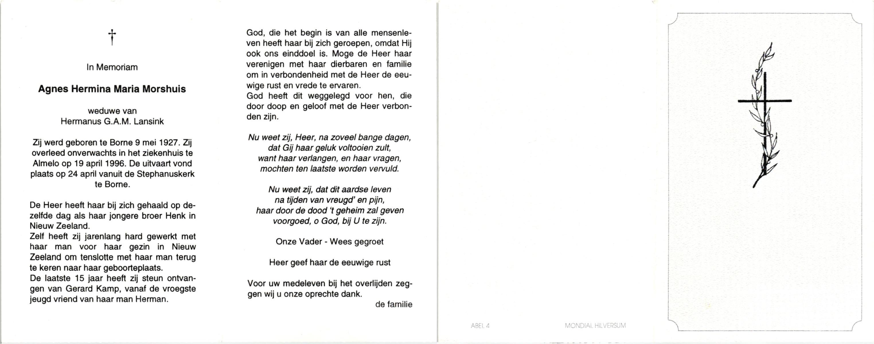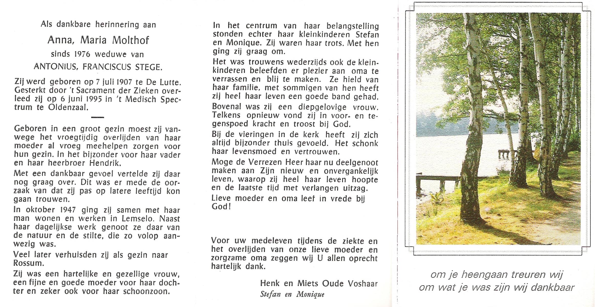 MIDDELHUIS, Anna, geboren op 1-7-1910 te Losser, overleden op 14-3-1993 te Enschede op 82-jarige leeftijd.
