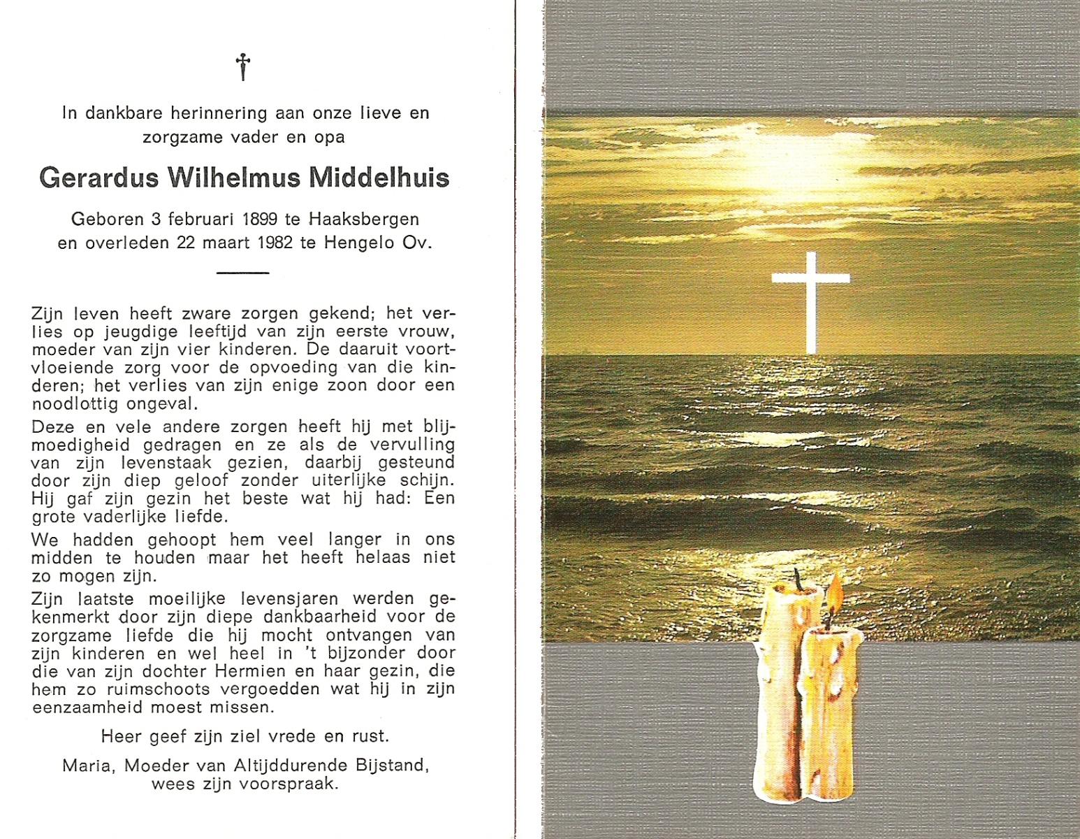 MIDDELHUIS, Gerardus Wilhelmus, geboren op 03-02-1899 te Haaksbergen, overleden op 22-3-1982 te Hengelo (Ov.) op 83-jarige leeftijd.
