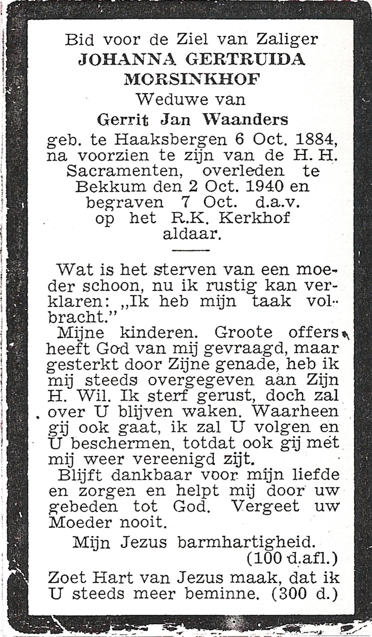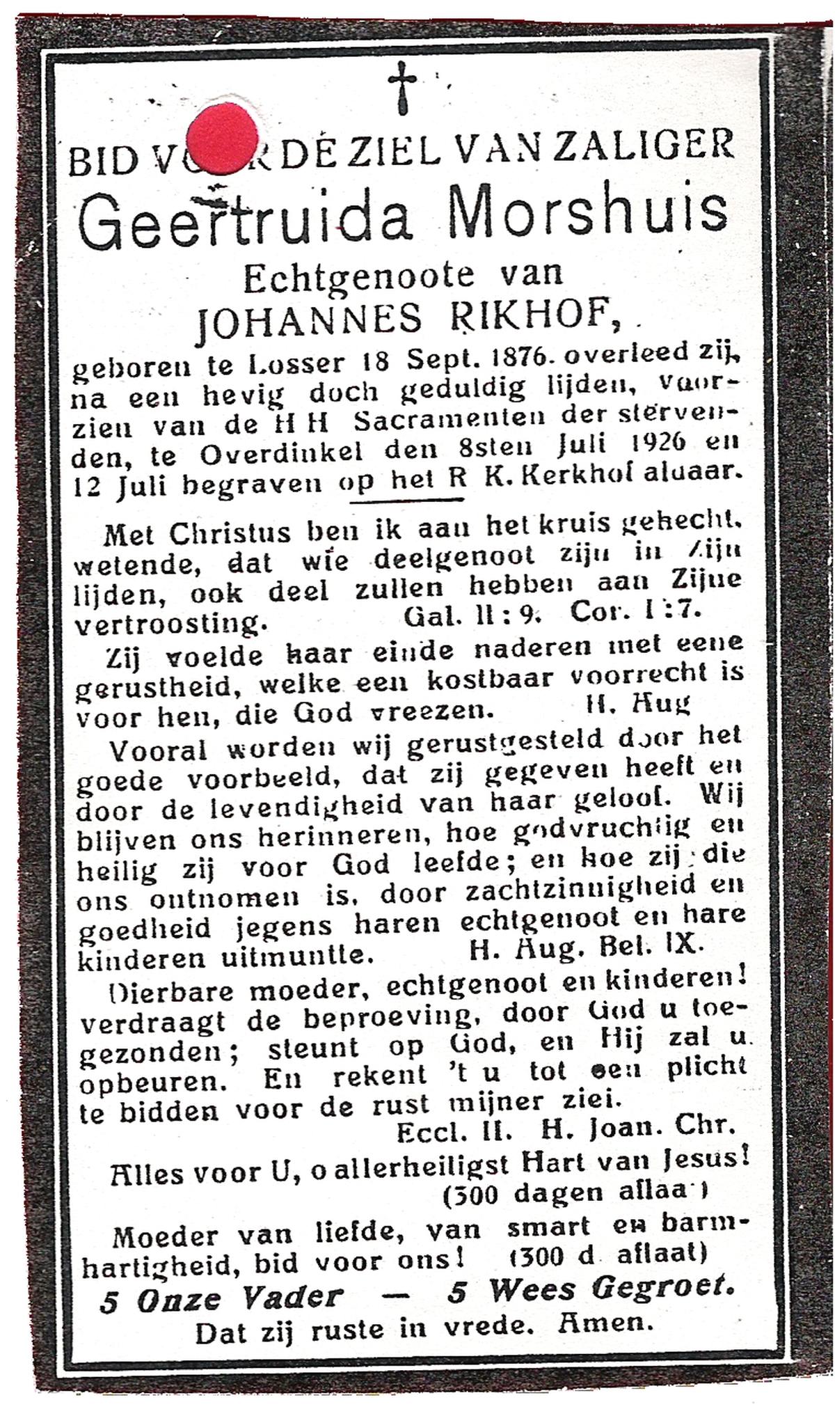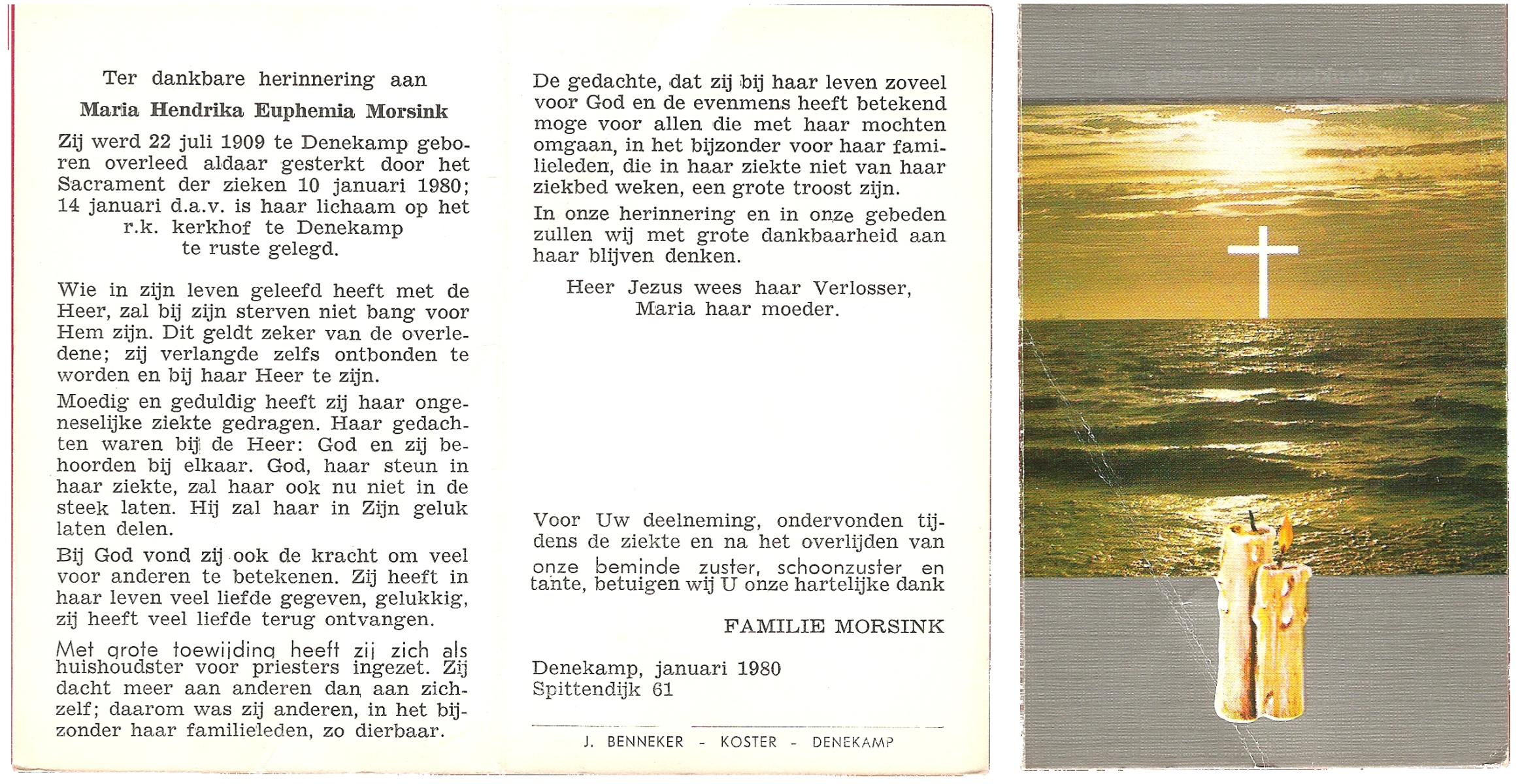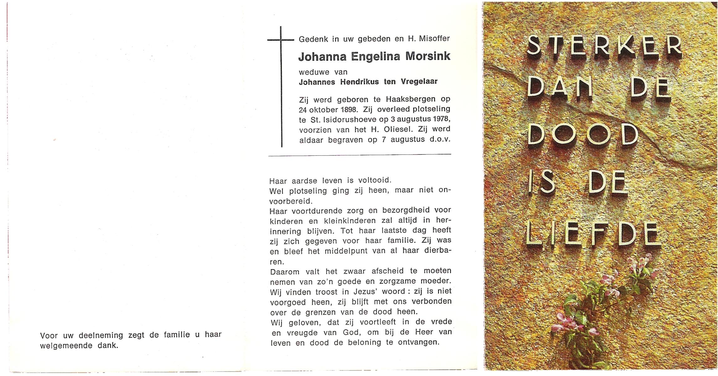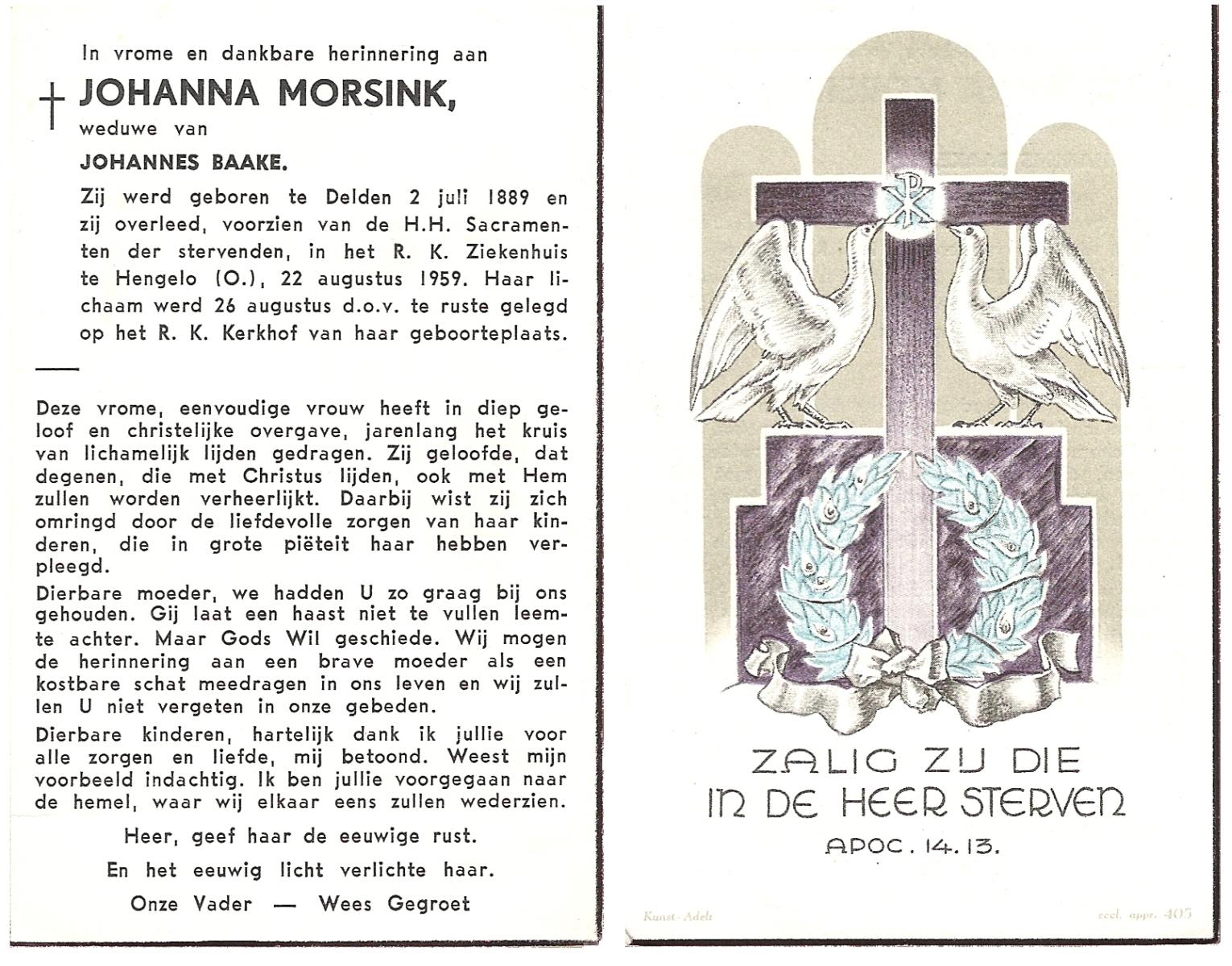 MIDDELHUIS, Johanna Maria, geboren op 02-04-1882 te Denekamp, overleden op 28-8-1965 te Tilligte op 83-jarige leeftijd, begraven op 1-9-1965 te Tilligte.