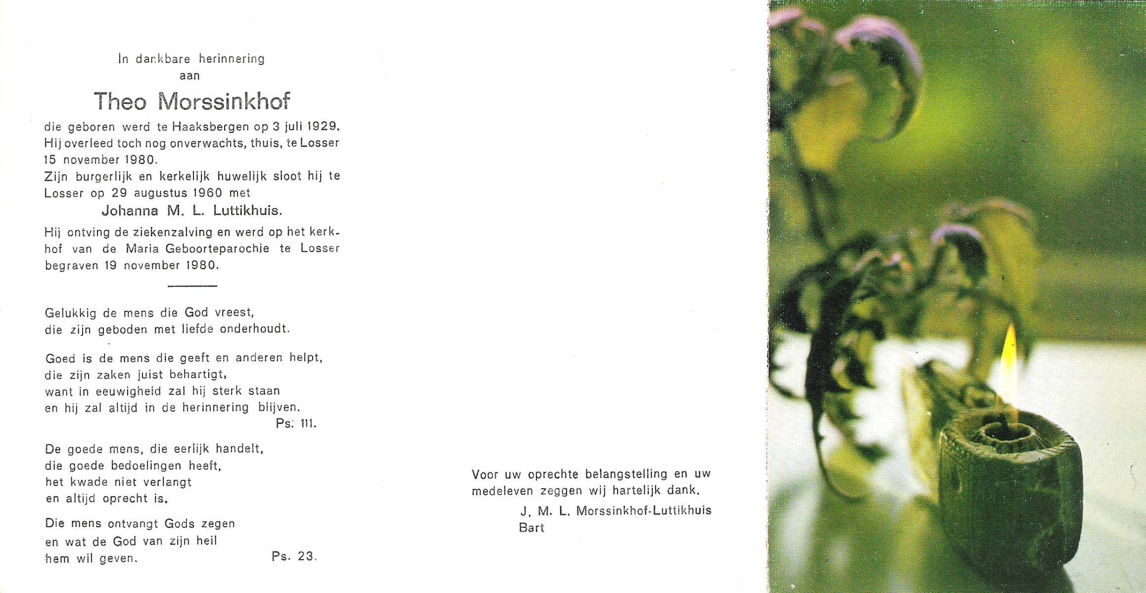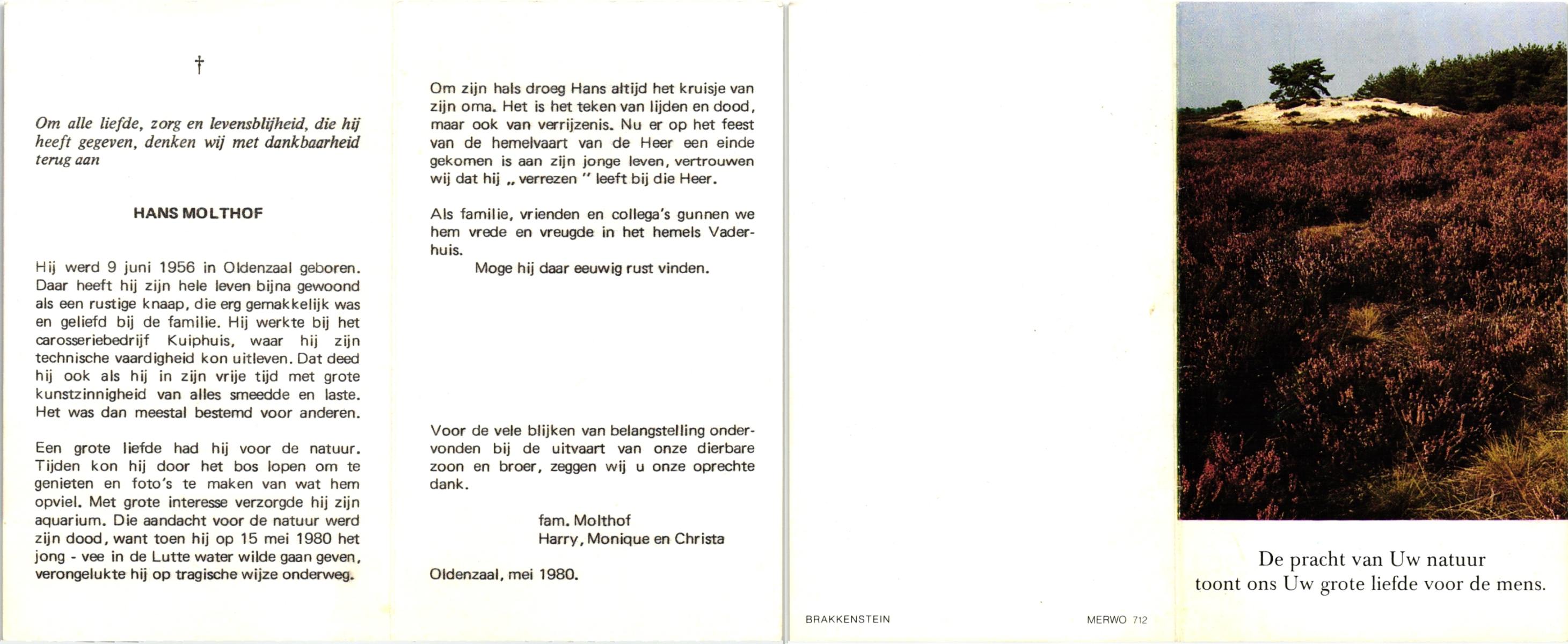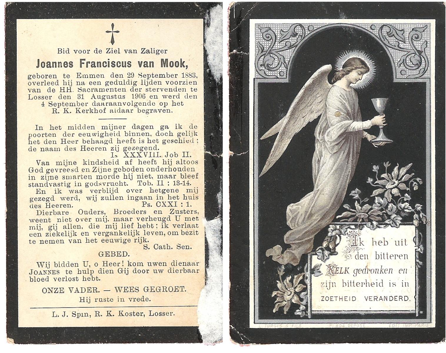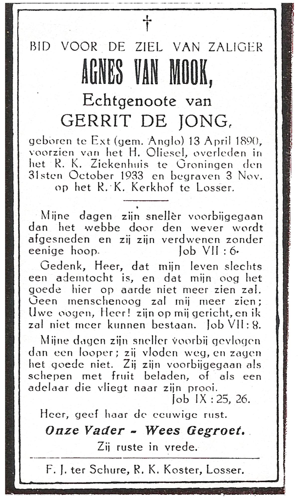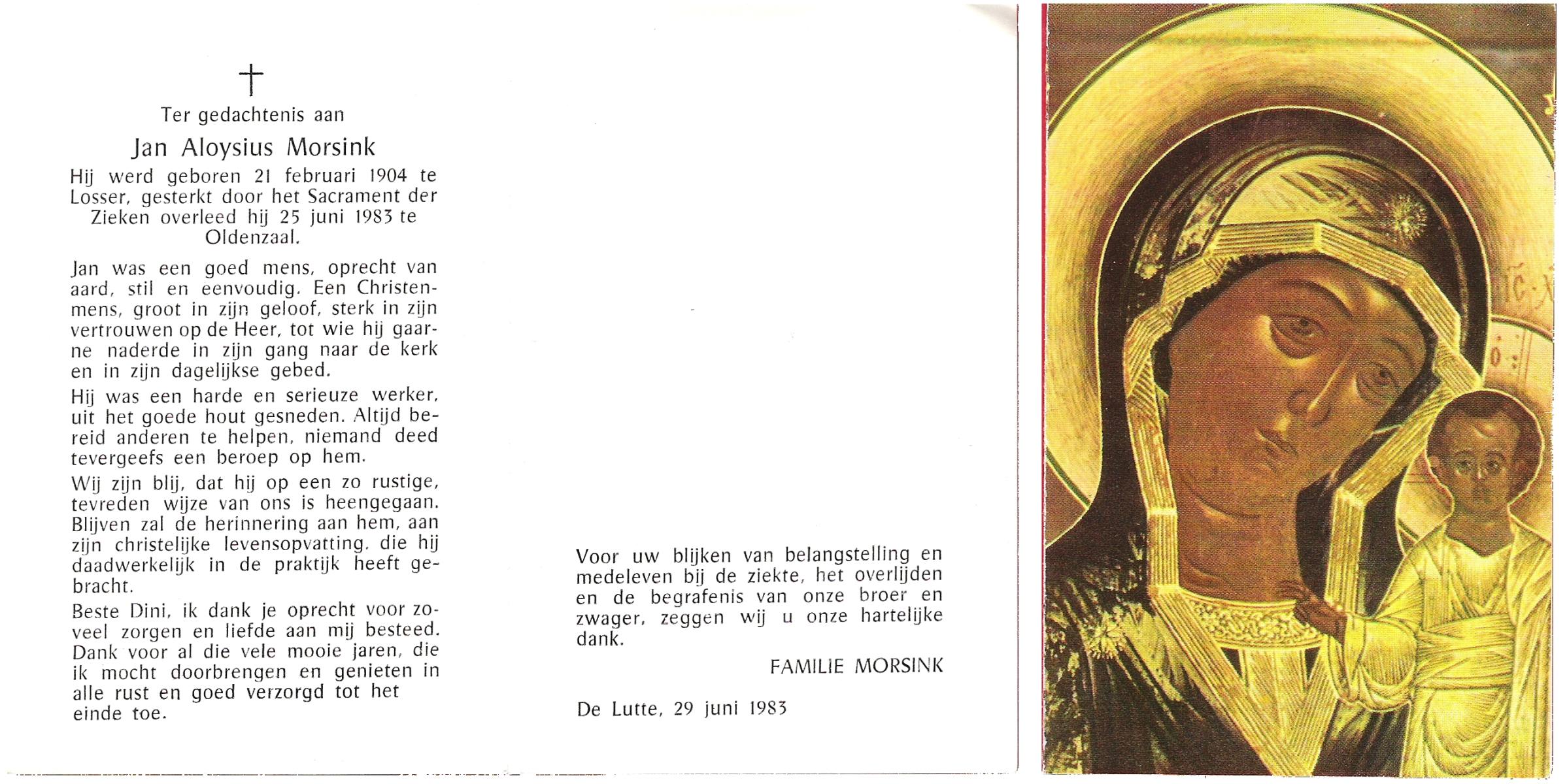 MIDDELHUIS, Johannes Gerardus, geboren op 21-9-1907 te Losser, overleden op 13-10-1986 te Oldenzaal op 79-jarige leeftijd, begraven op 16-10-1986 te Losser.