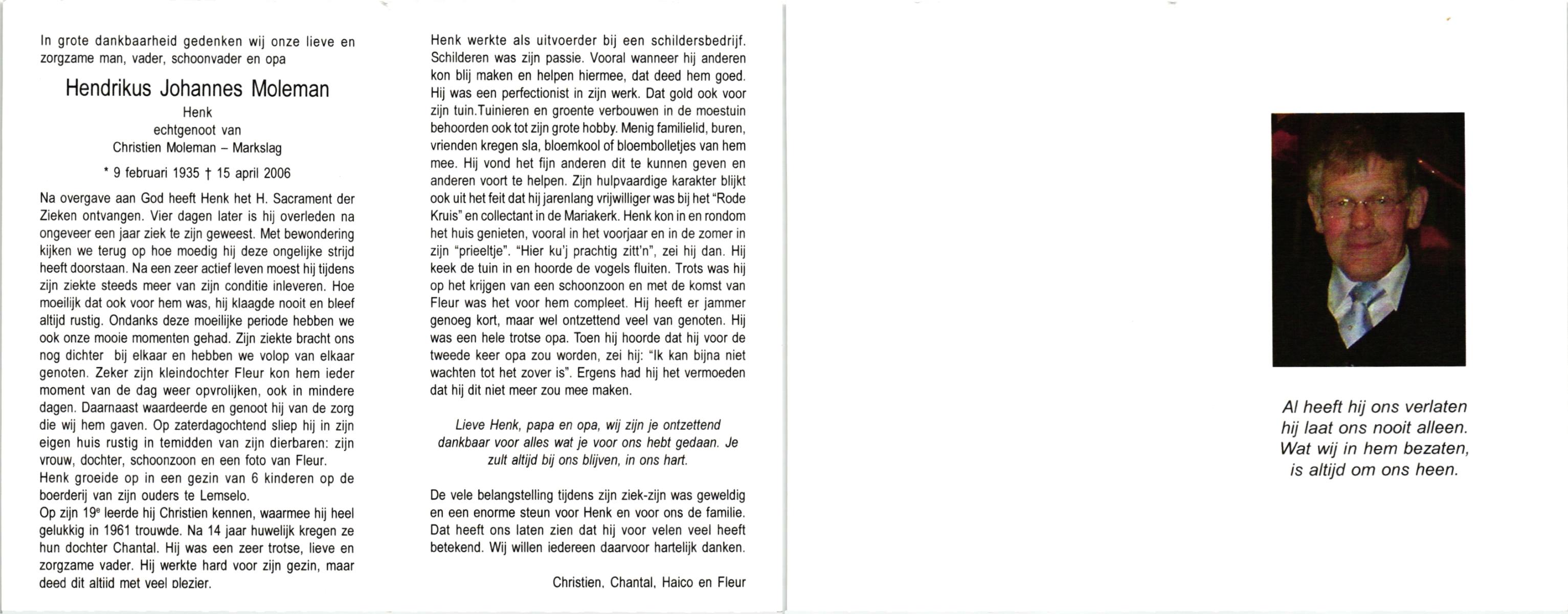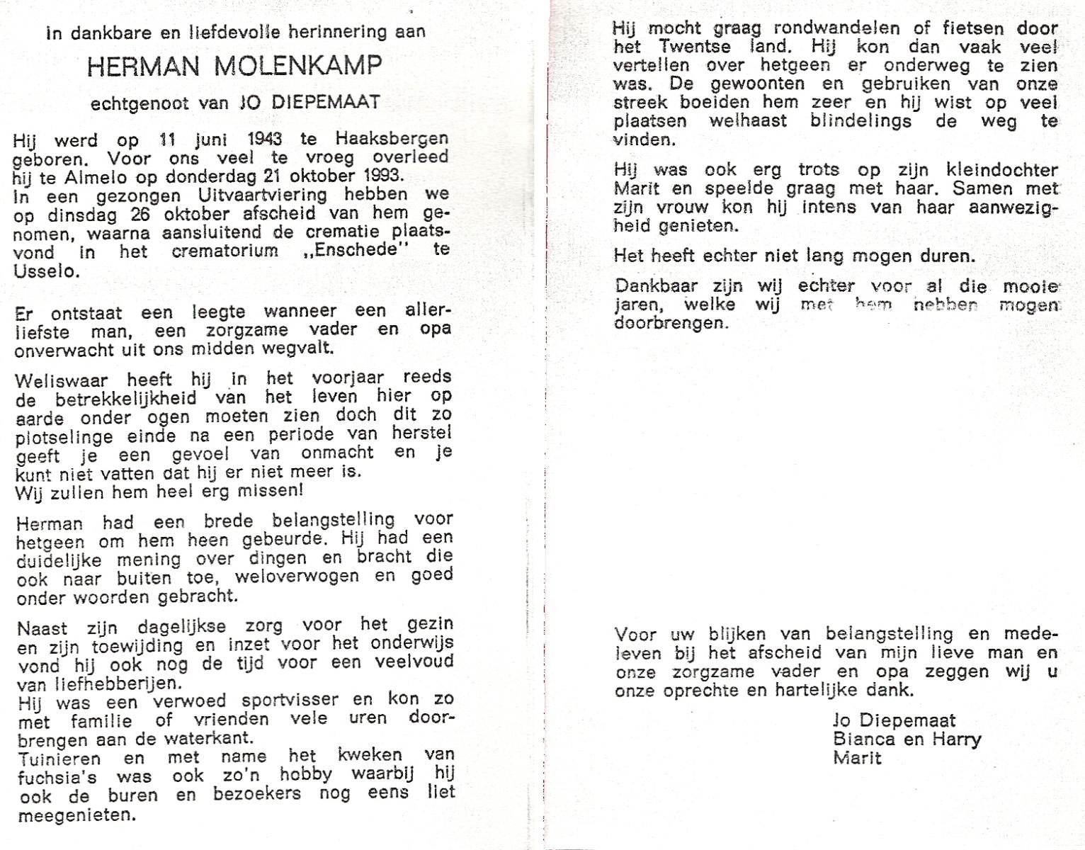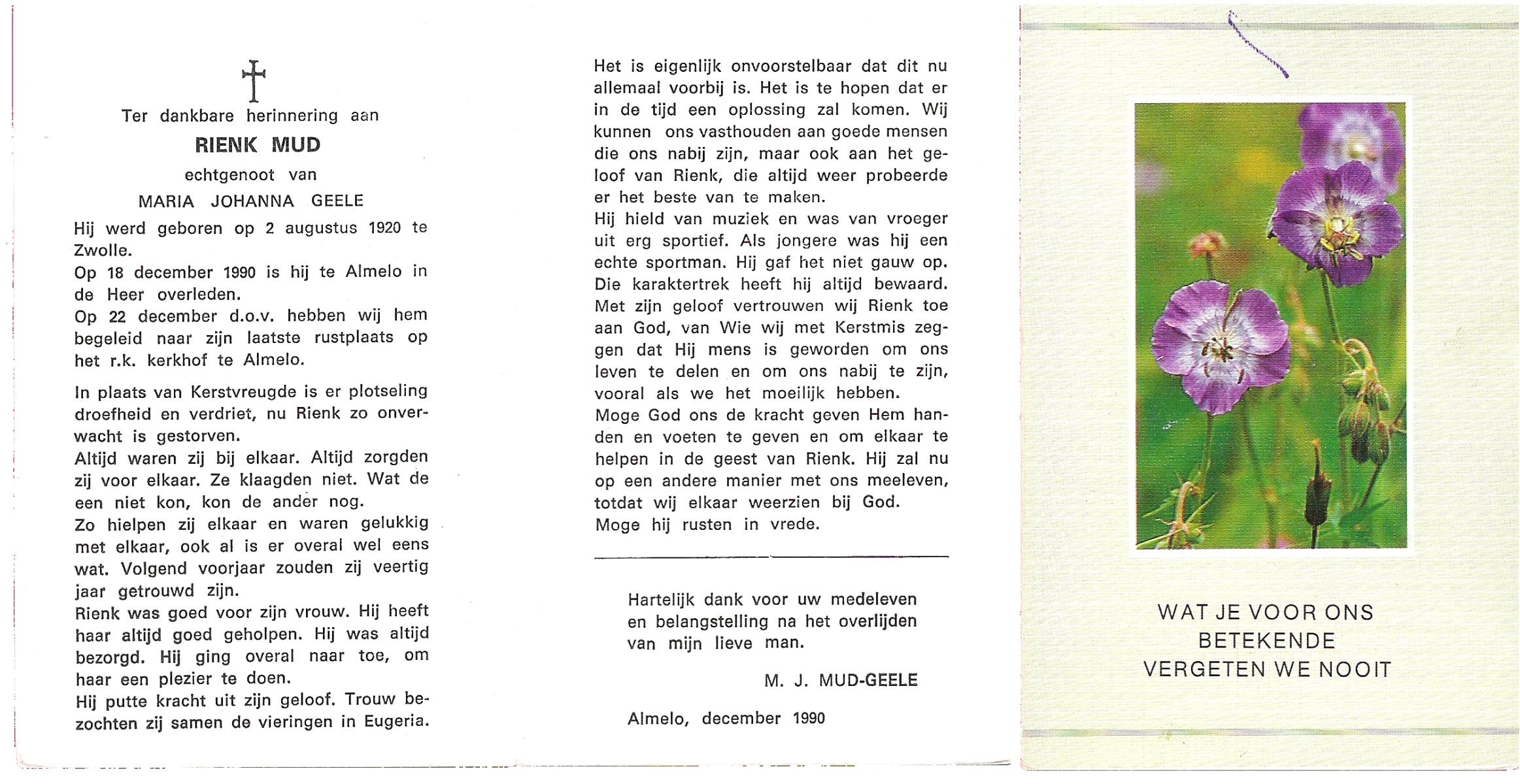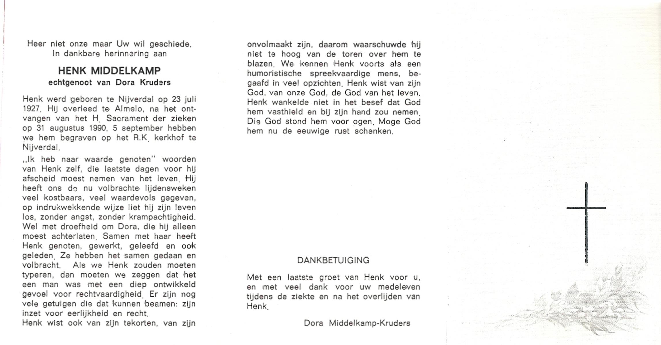 MIDDELKAMP, Henk, geboren op 23-7-1927 te Hellendoorn, Nijverdal, overleden op 31-8-1990 te Almelo op 63-jarige leeftijd, begraven op 5-9-1990 te Hellendoorn, Nijverdal.