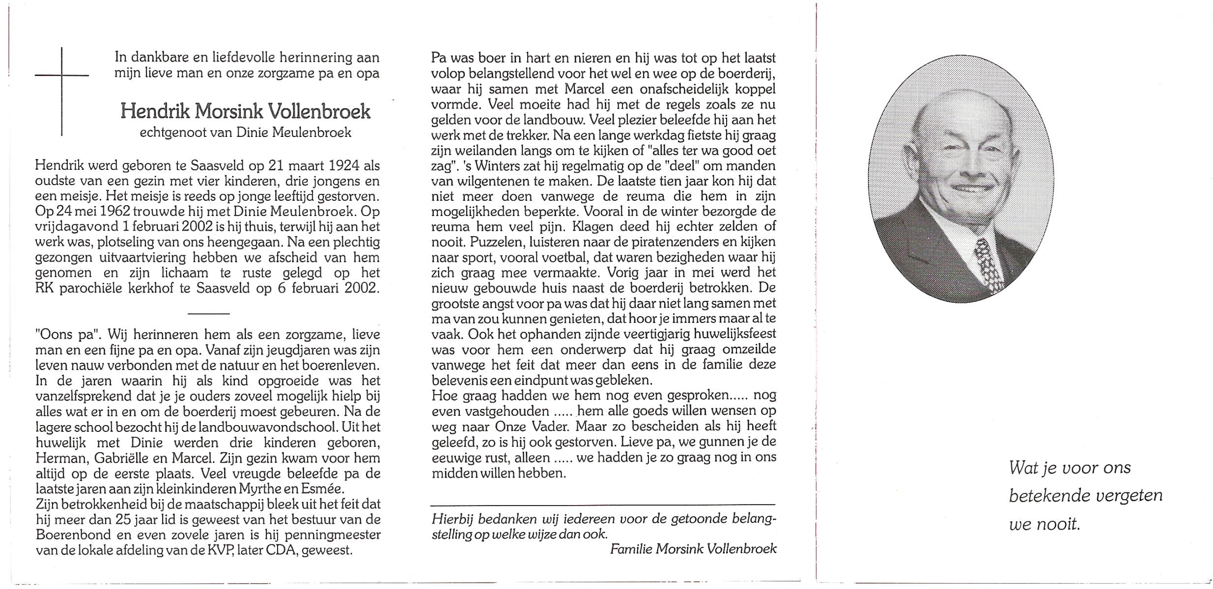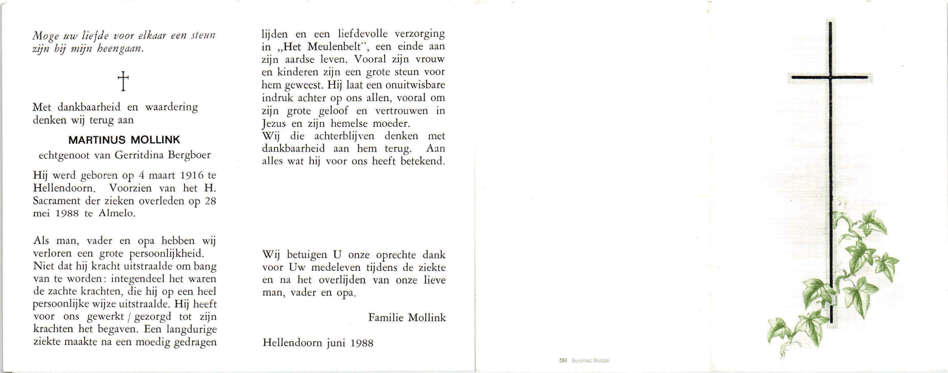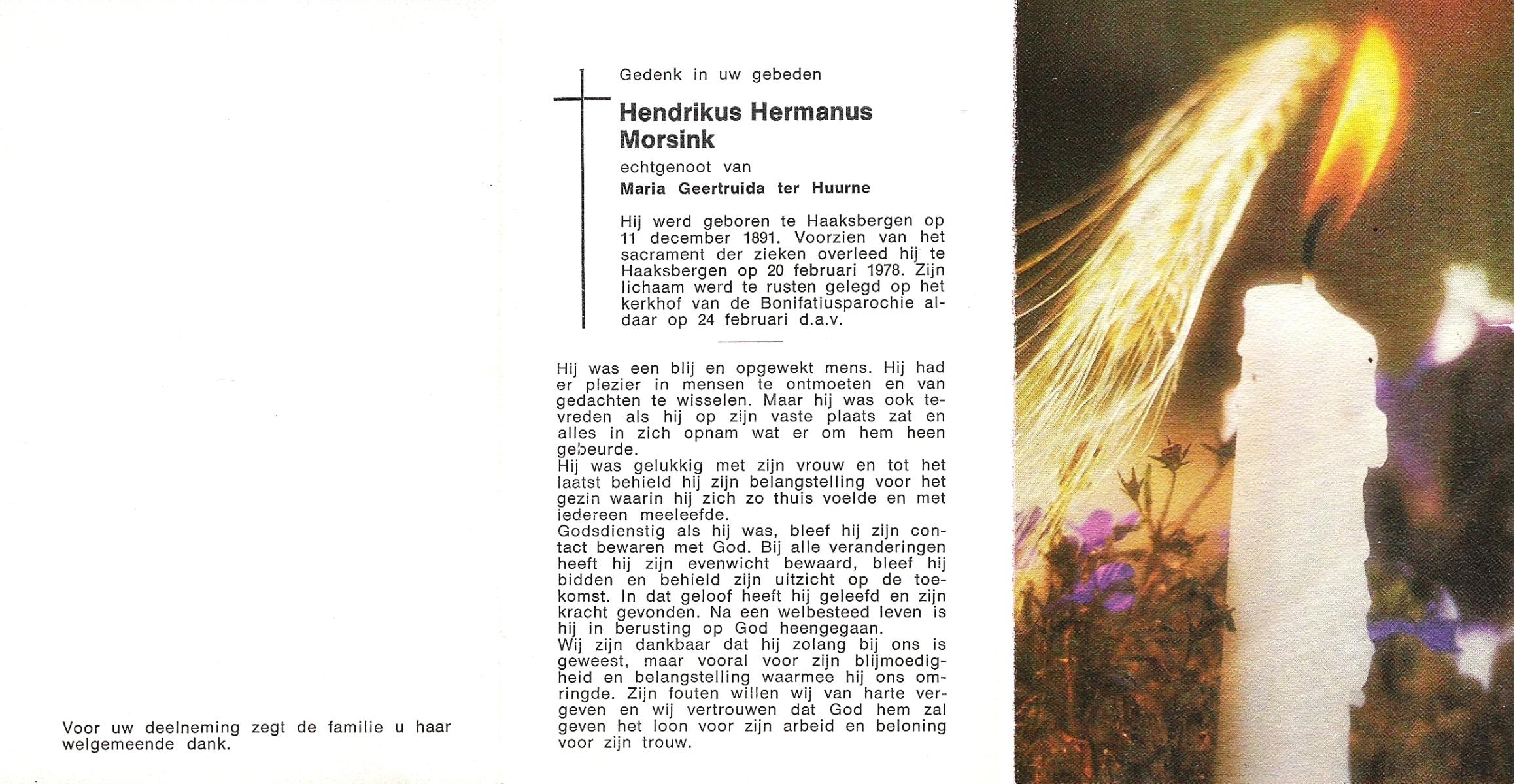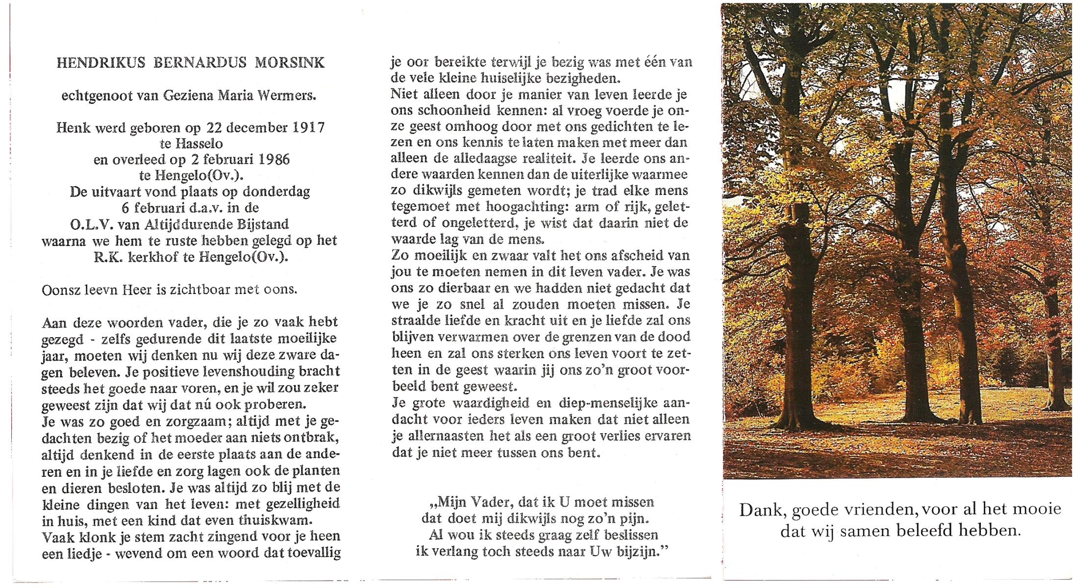 MIDDELKAMP, Henricus Johannes, geboren op 12-07-1885 te Hellendoorn, Nijverdal, overleden op 12-3-1980 te Hellendoorn op 94-jarige leeftijd, begraven op 15-3-1980 te Hellendoorn, Nijverdal.