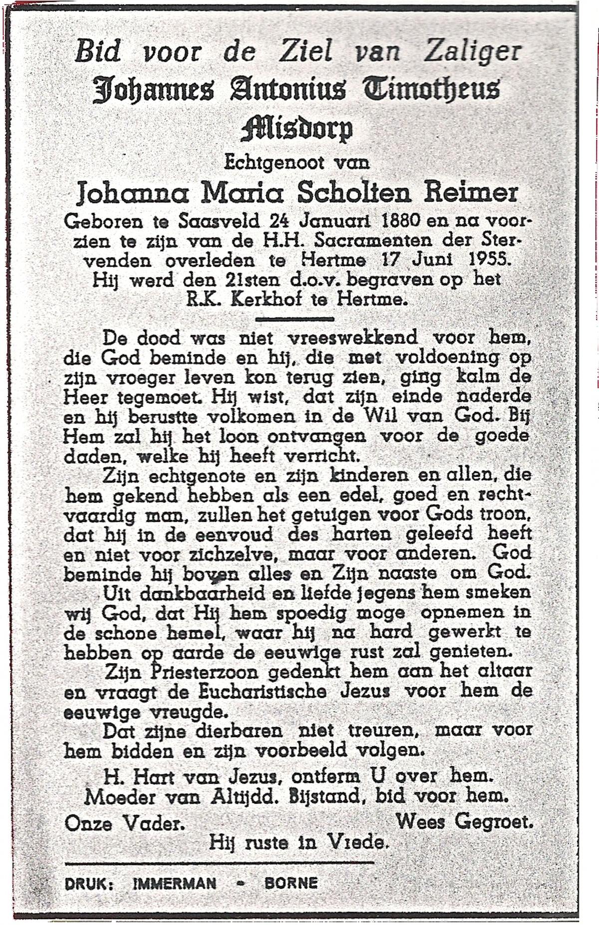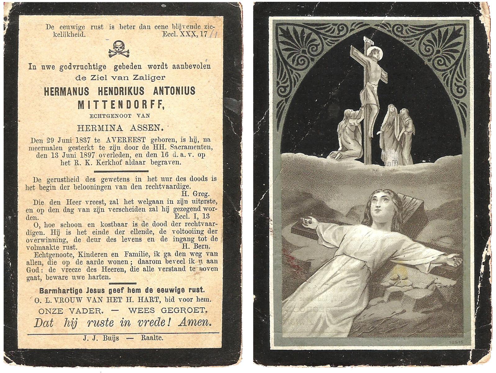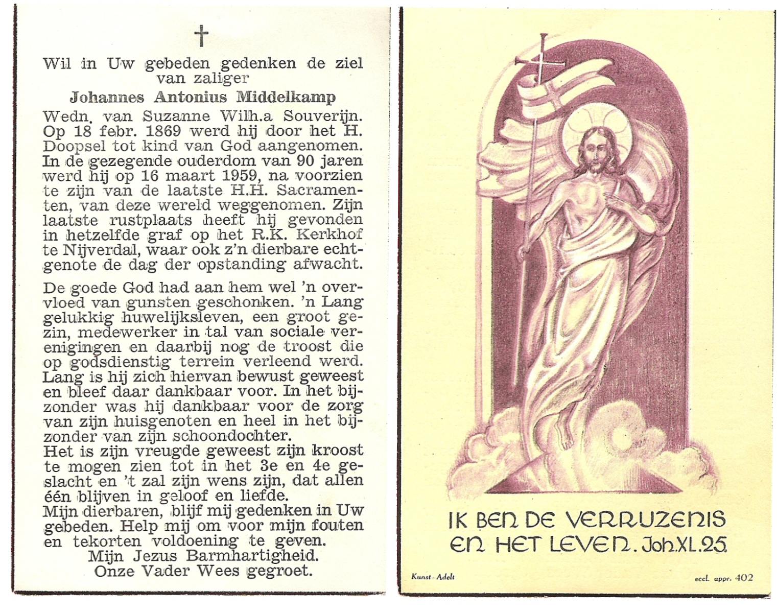 MIDDELKAMP, Johannes Antonius, geboren op 18-02-1869, overleden op 16-3-1959 te Hellendoorn, Nijverdal op 90-jarige leeftijd, begraven te Hellendoorn, Nijverdal.