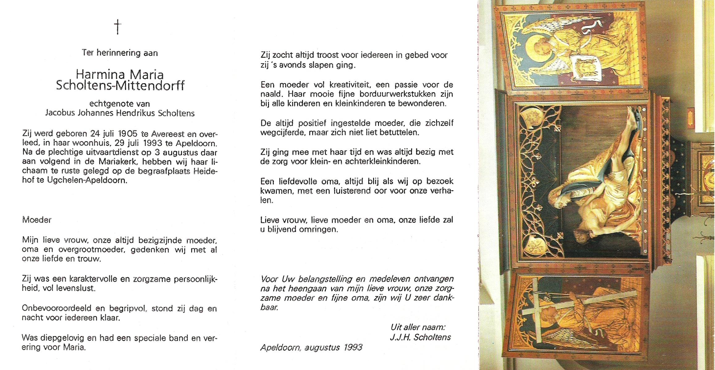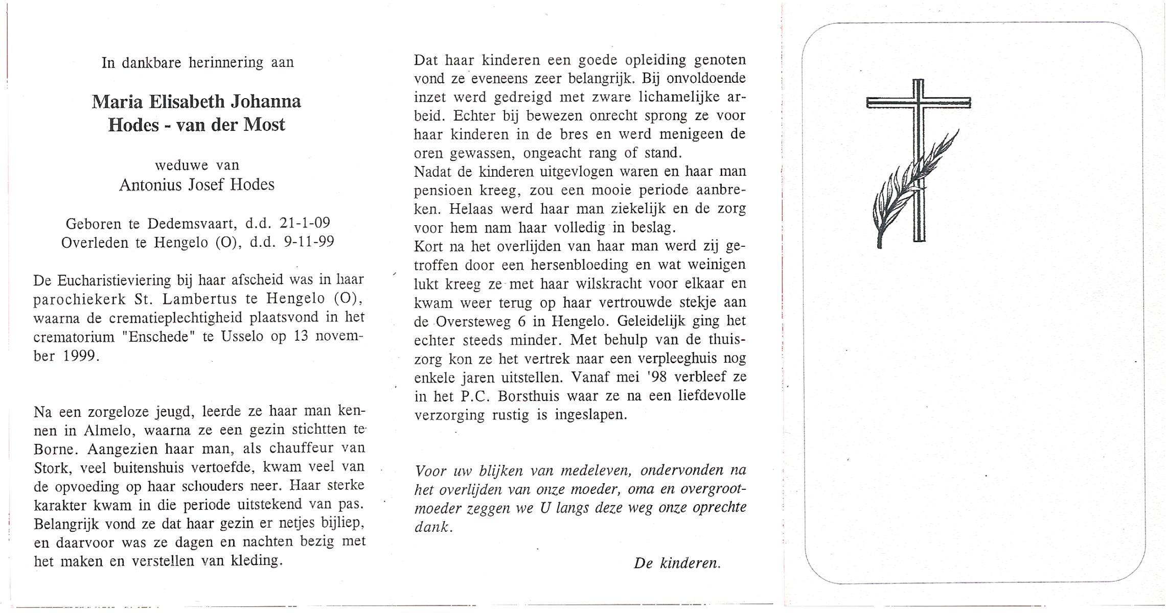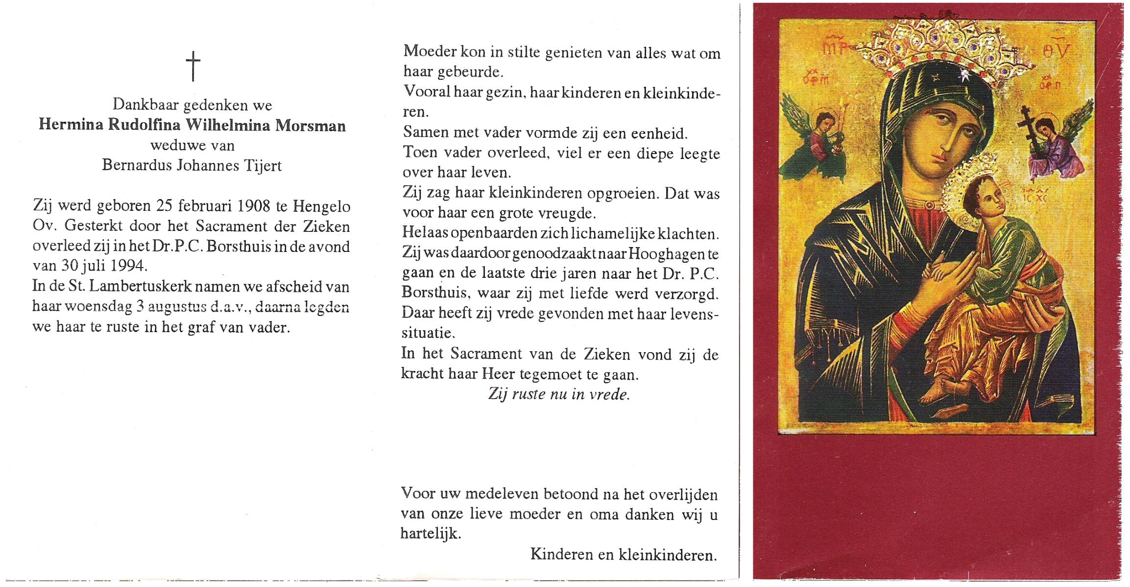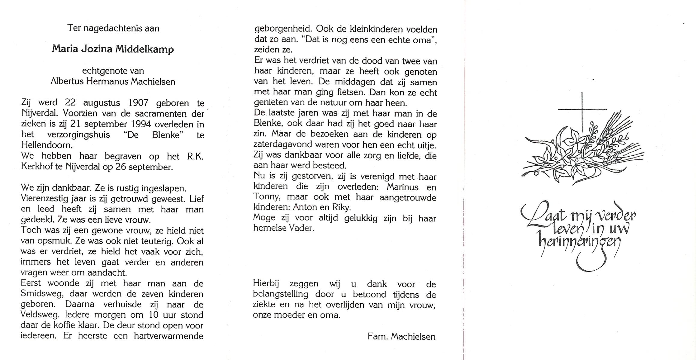 MIDDELKAMP, Maria Josina, geboren op 22-8-1907 te Hellendoorn, Nijverdal, overleden op 21-9-1994 te Hellendoorn op 87-jarige leeftijd, begraven op 26-9-1994 te Hellendoorn, Nijverdal.