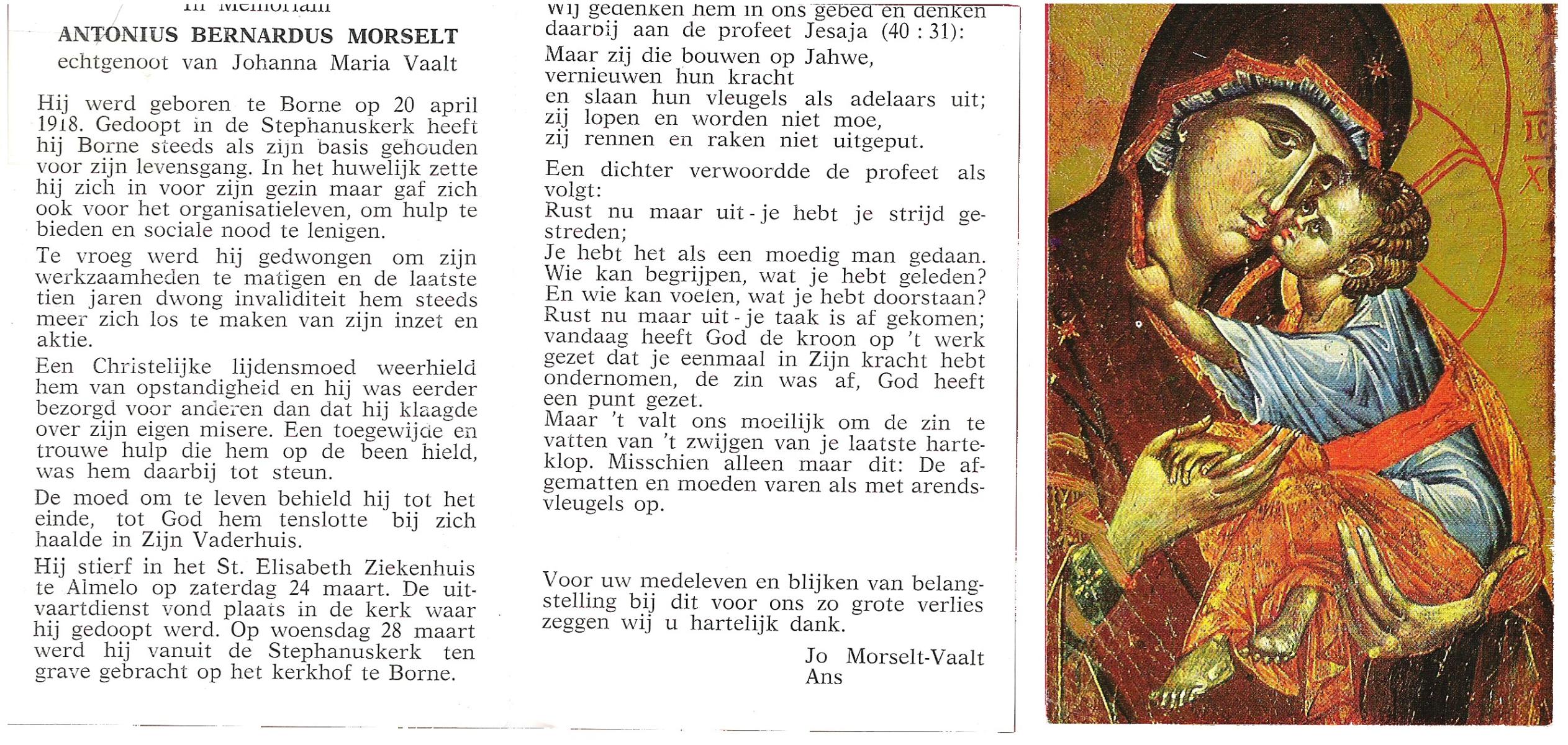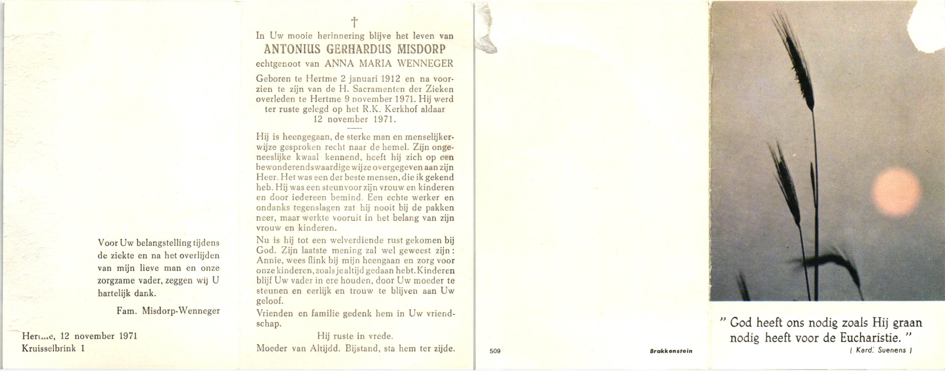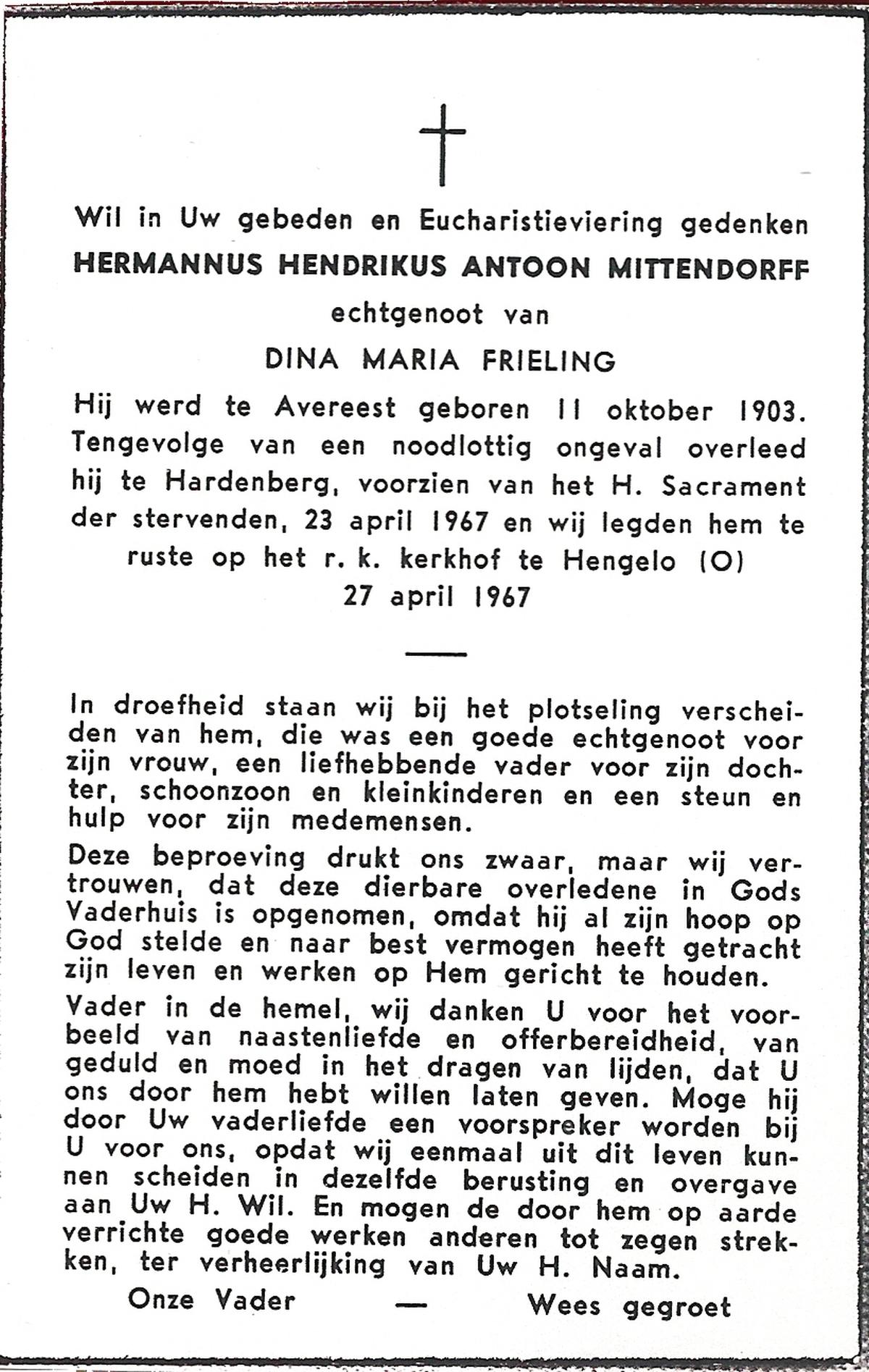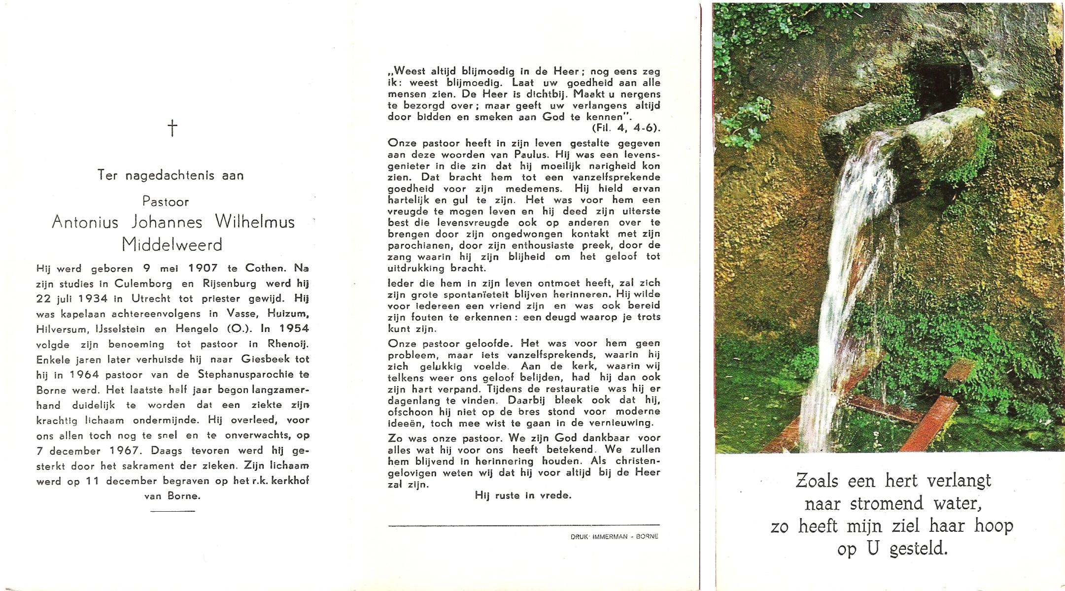 MIDDELWEERD, Antonius Johannes Wilhelmus, geboren op 9-5-1907 te Cothen, overleden op 7-12-1967 te Borne op 60-jarige leeftijd, begraven op 11-12-1967 te Borne.