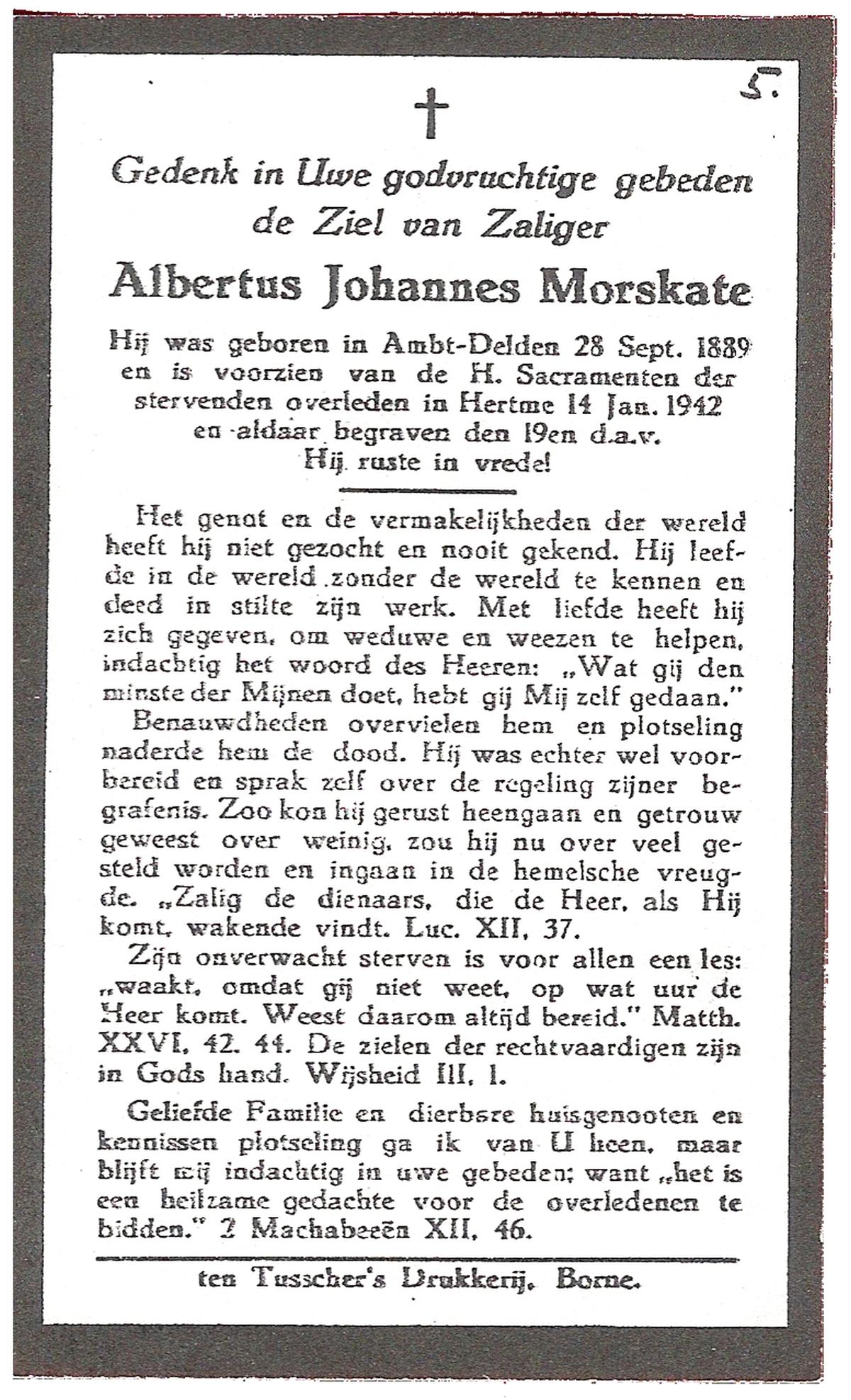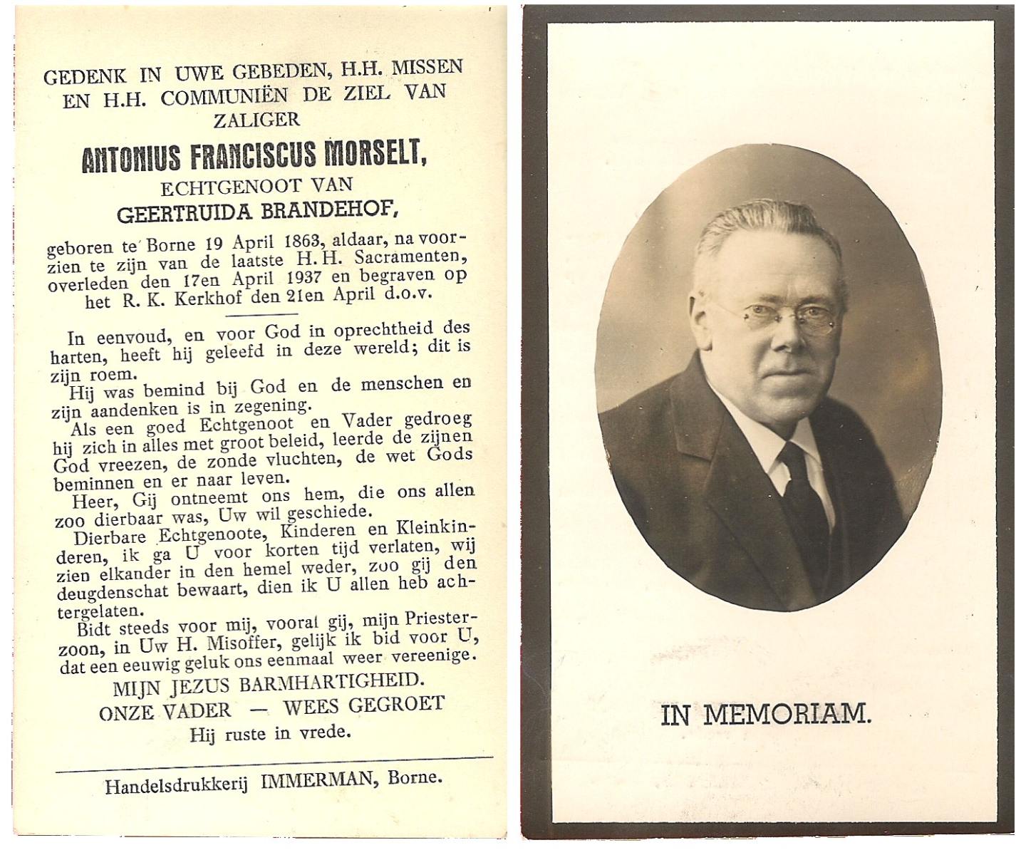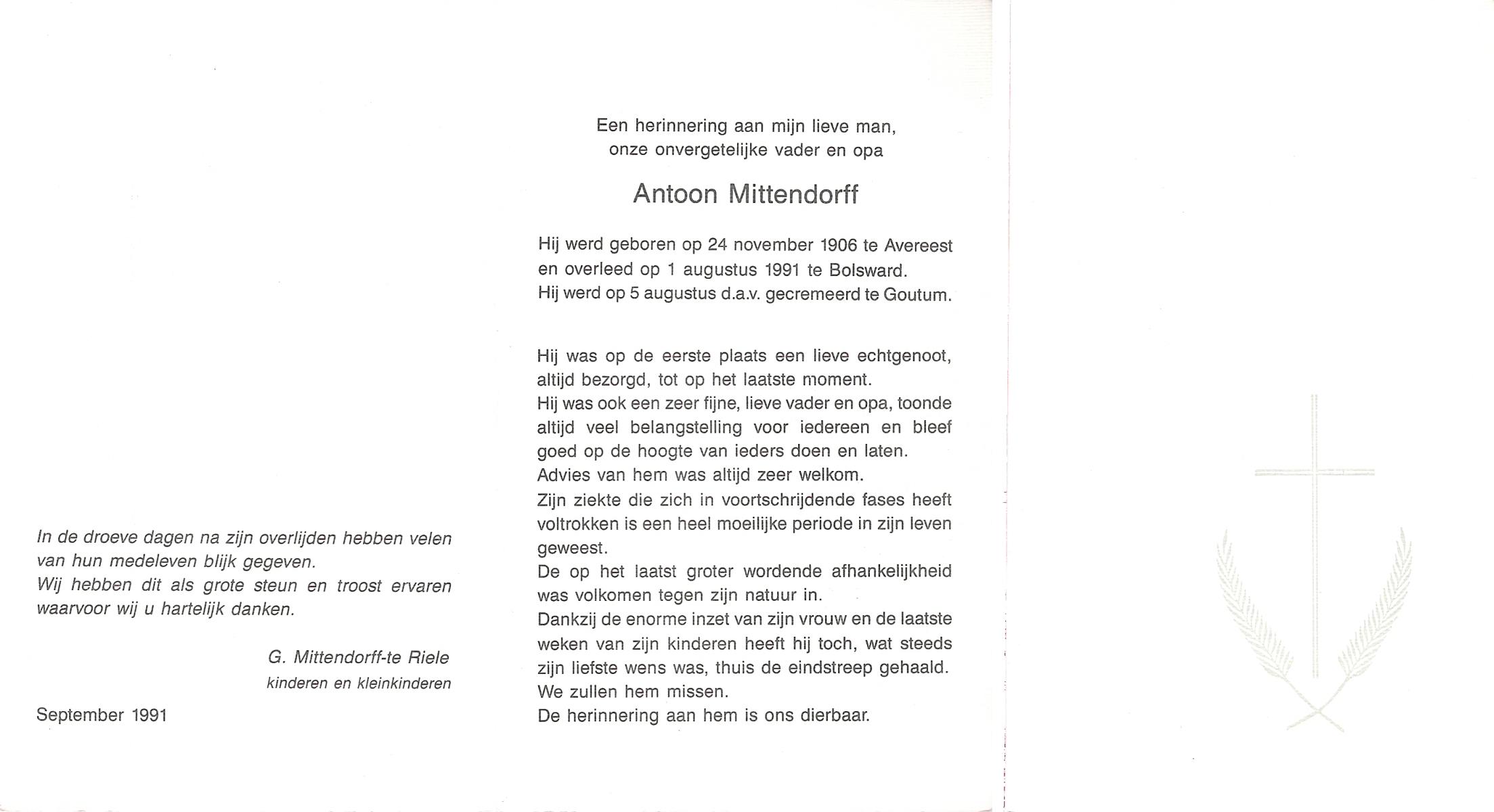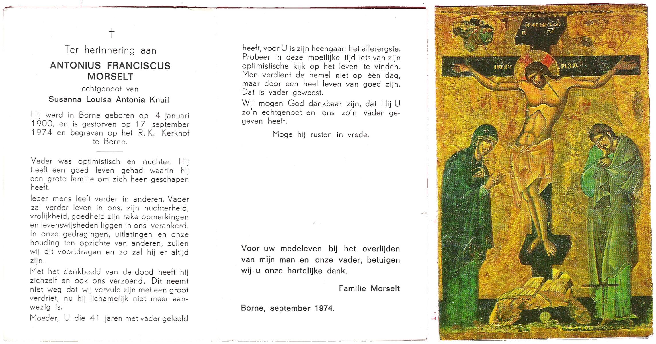 MIDDELWEERD, Antonius Johannes Wilhelmus, geboren op 9-5-1907 te Cothen, overleden op 7-12-1967 te Borne op 60-jarige leeftijd, begraven op 11-12-1967 te Borne.