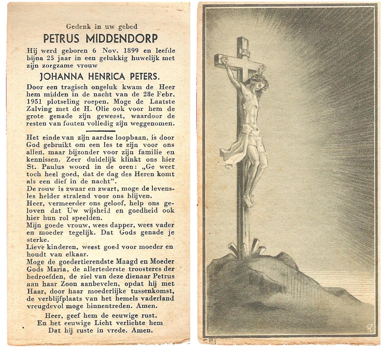 MIDDENDORP, Petrus, geboren op 06-11-1899, overleden op 28-2-1951 op 51-jarige leeftijd.