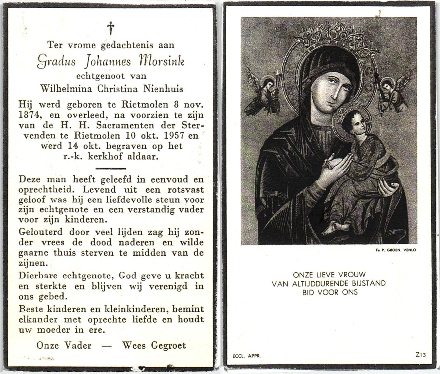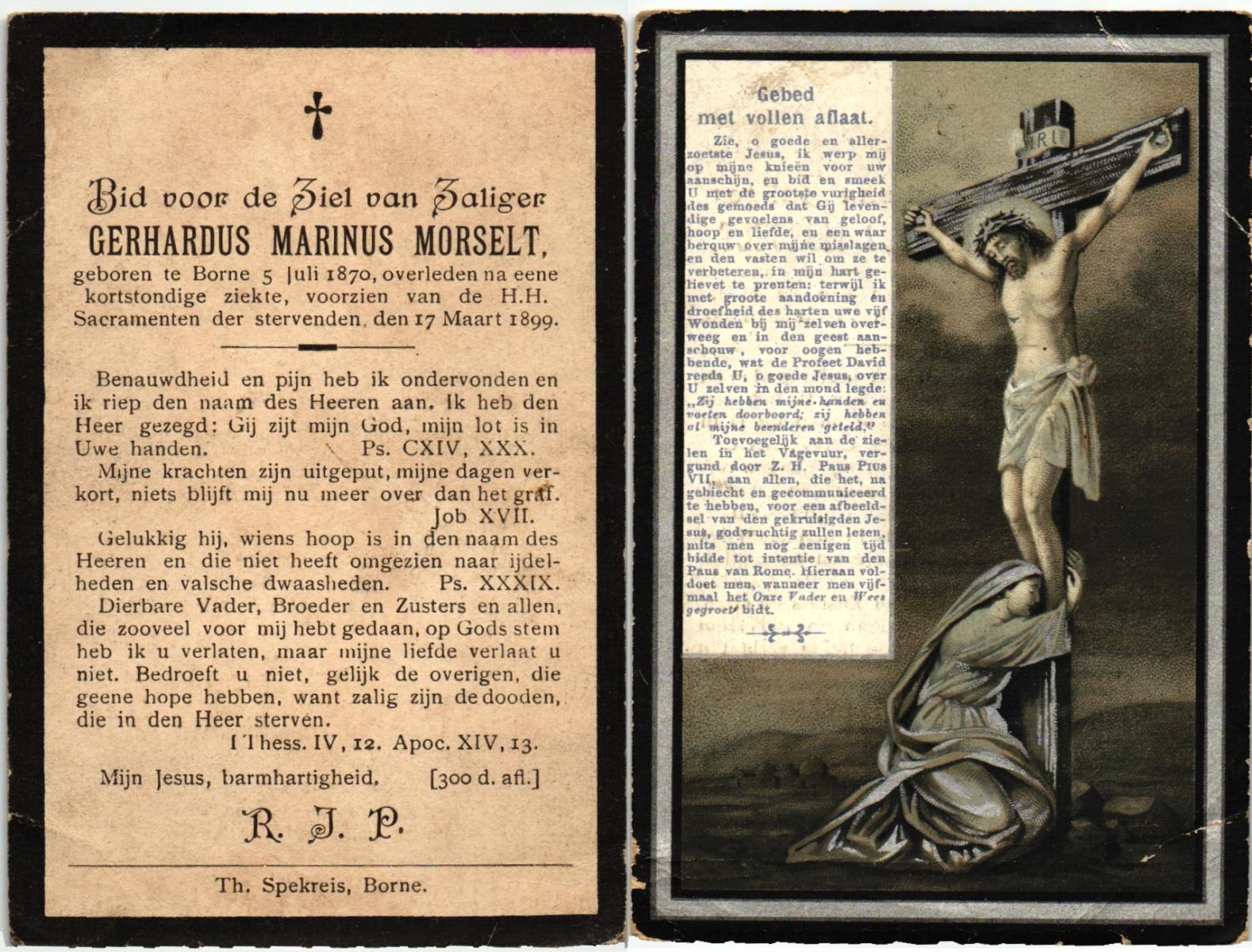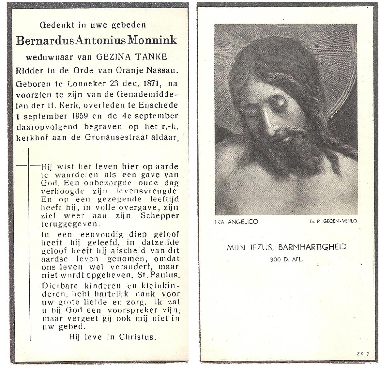 MIELING, Gerhardus Wilhelmus, geboren op 09-04-1877 te Lonneker, overleden op 29-12-1968 te Ootmarsum op 91-jarige leeftijd, begraven op 2-1-1969 te Ootmarsum.