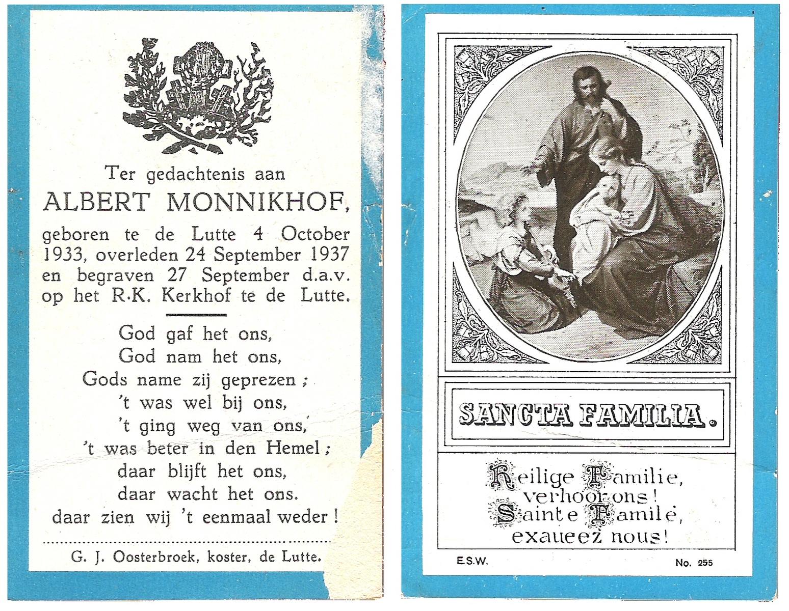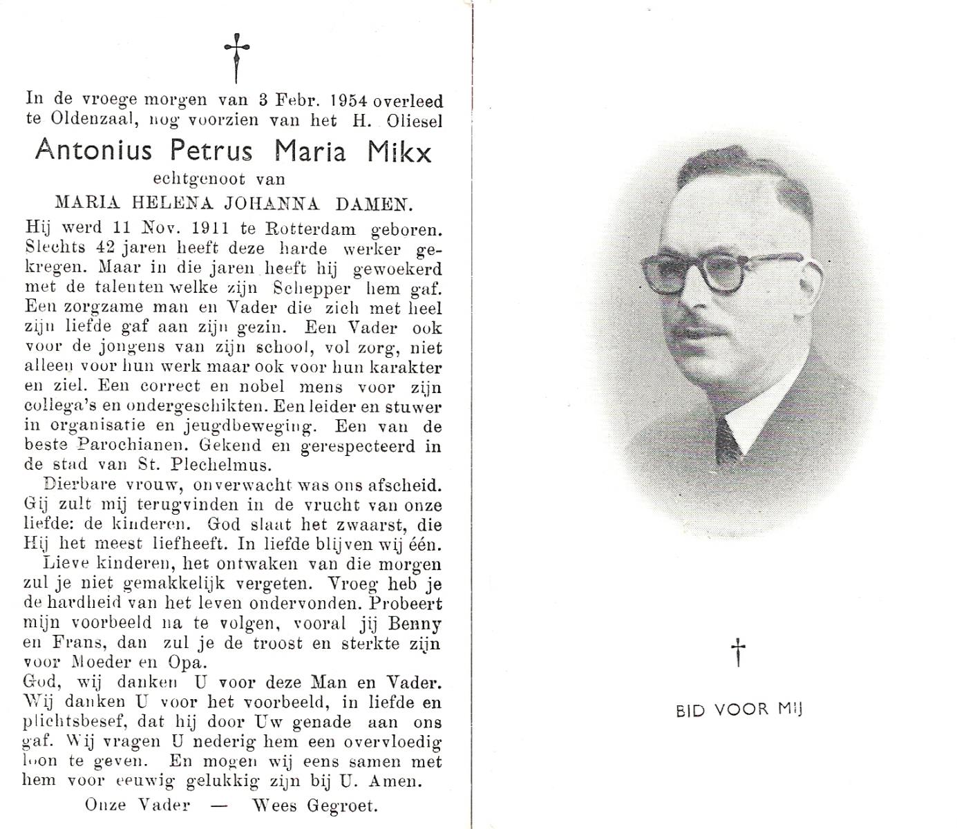 MIKX, Antonius Petrus Maria, geboren op 11-11-1911 te Rotterdam, overleden op 3-2-1954 te Oldenzaal op 42-jarige leeftijd.