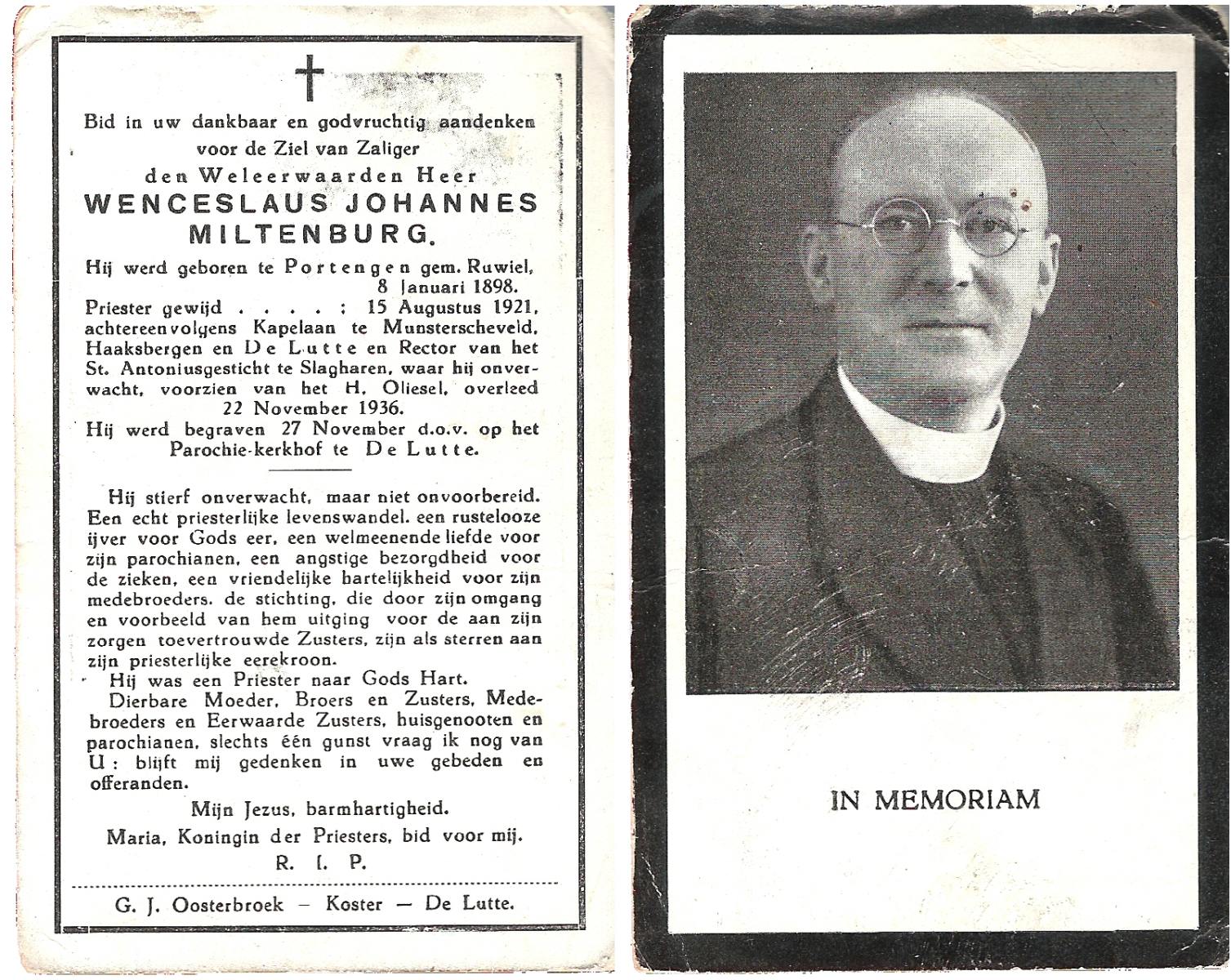 MILTENBURG, Wenceslaus Johannes, geboren op 08-01-1898 te Portengen, overleden op 22-11-1936 te Slagharen op 38-jarige leeftijd, begraven op 27-11-1936 te De Lutte.