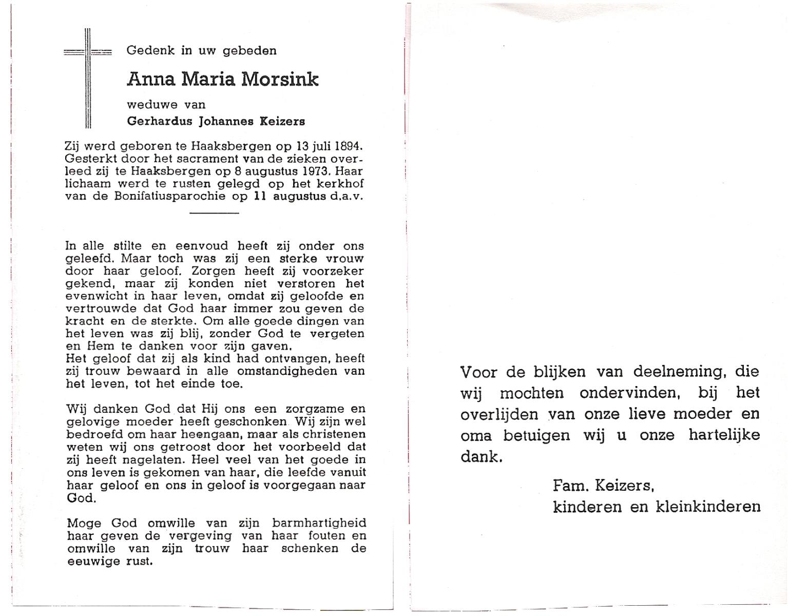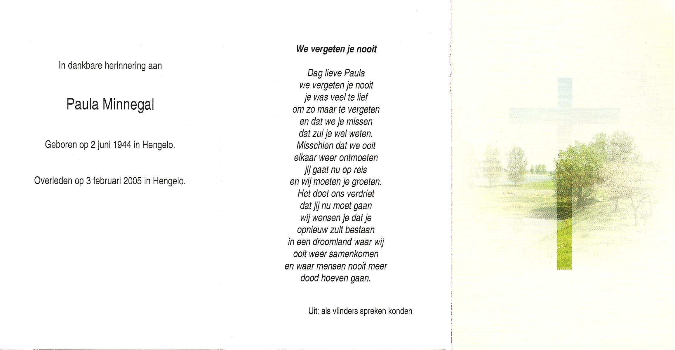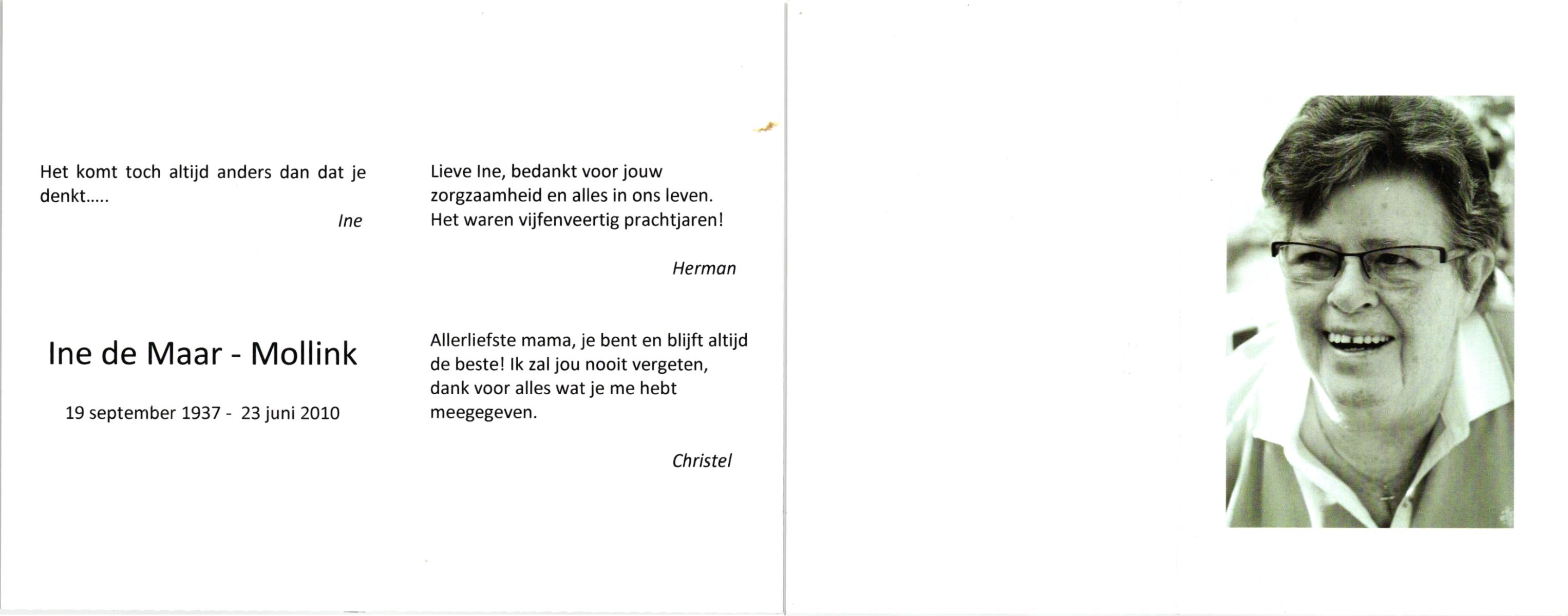 MINKE, Anna Hendrika Maria, geboren op 6-6-1926 te Dedemsvaart, overleden op 6-2-2000 te Zwolle op 73-jarige leeftijd.