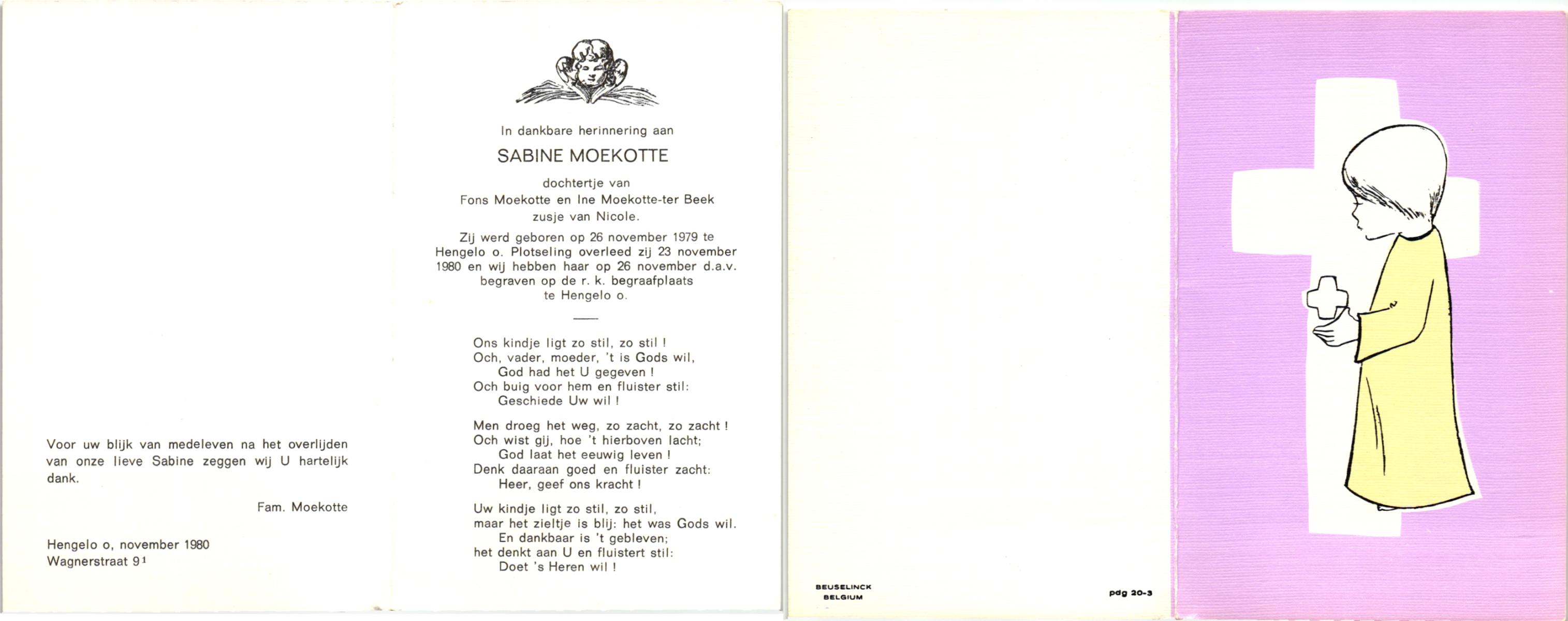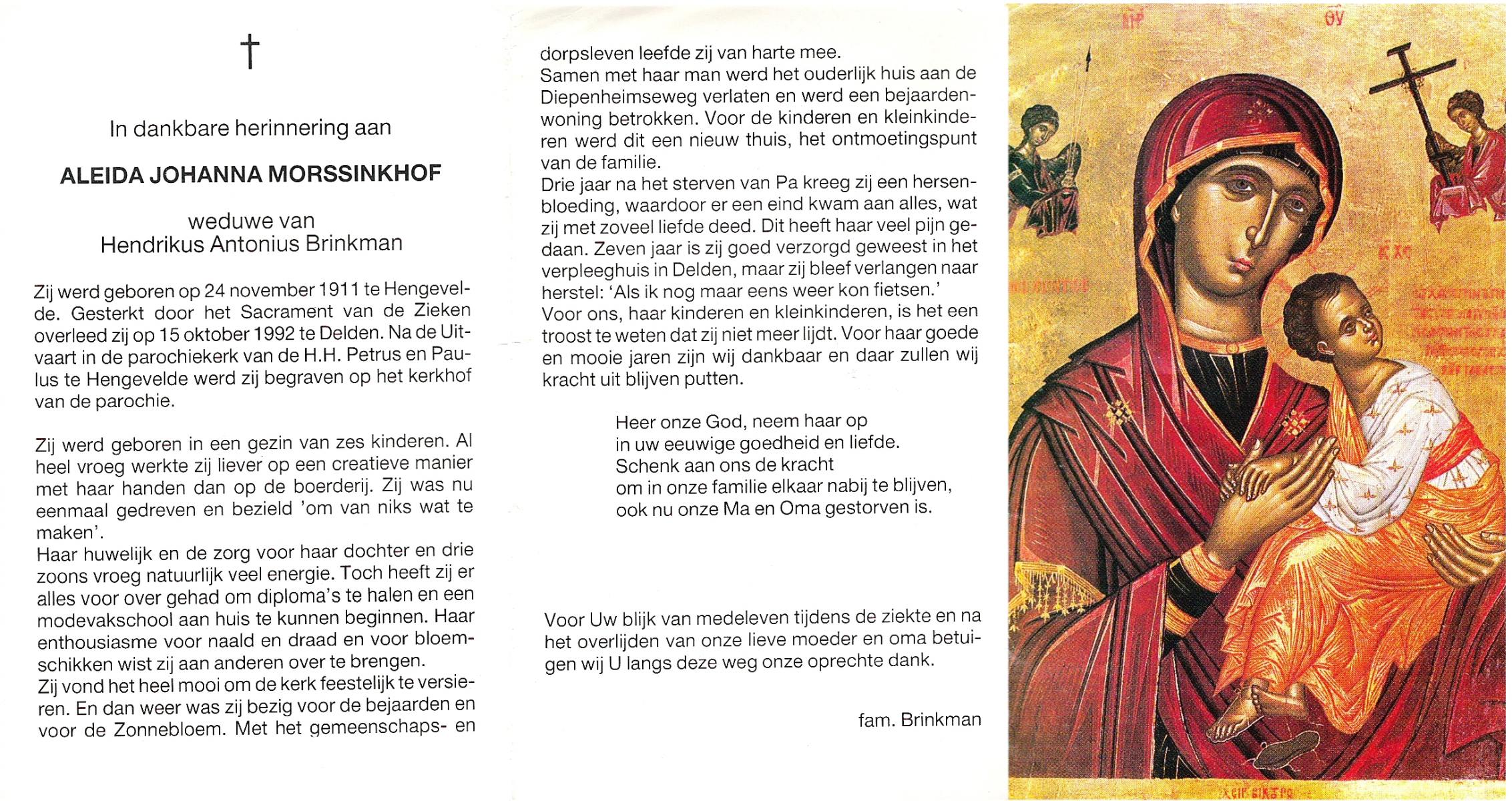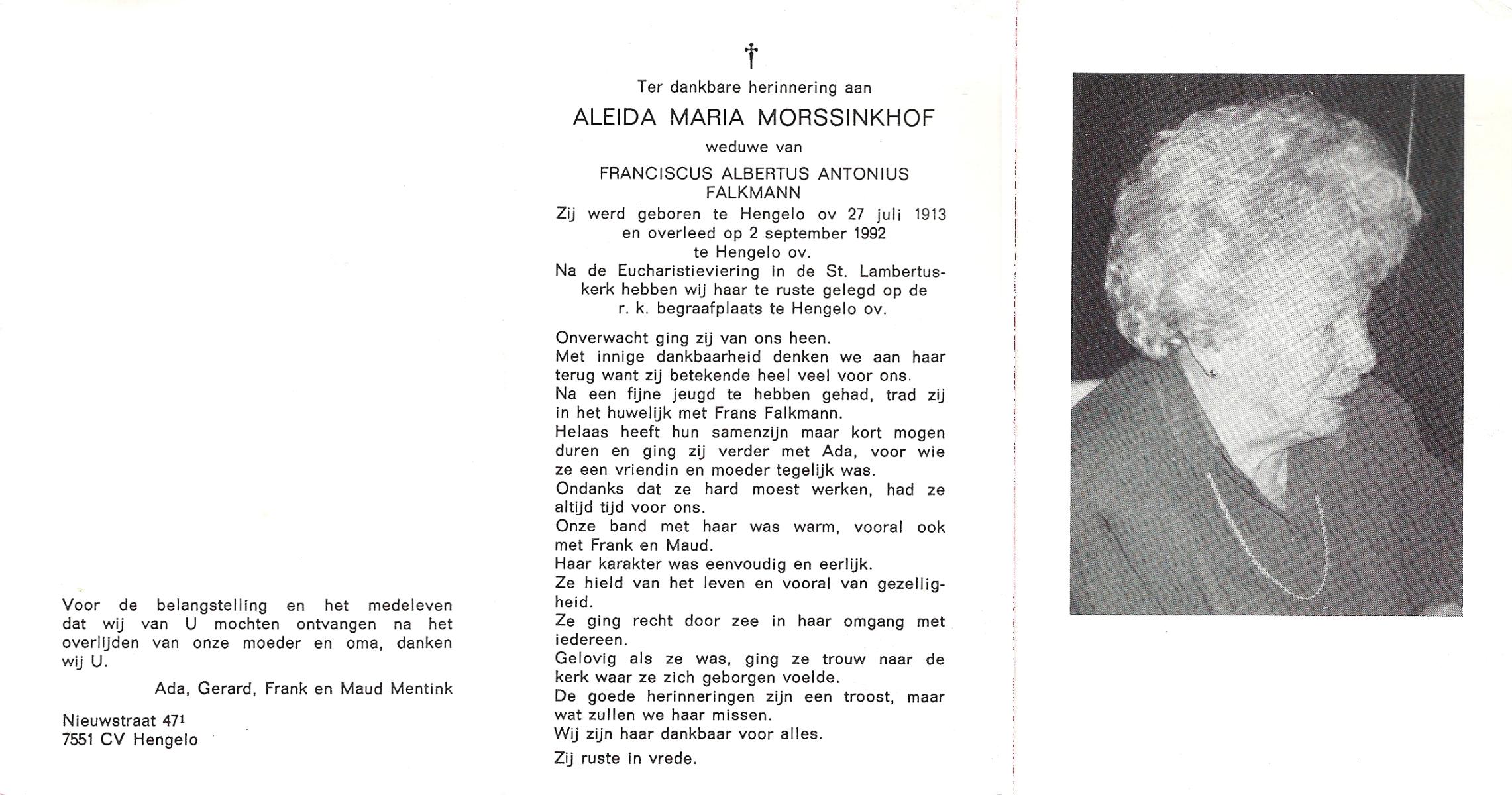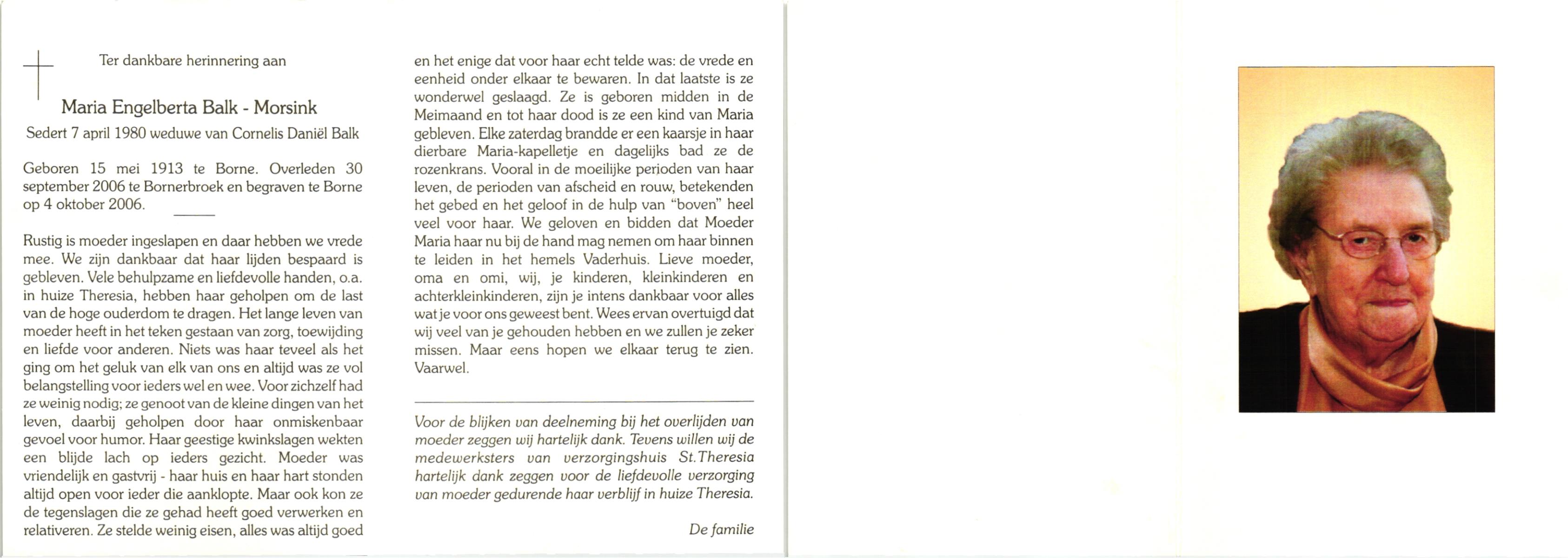 MEURIS, Engelina Johanna, geboren op 5-10-1929 te Borne, overleden op 17-9-1992 op 62-jarige leeftijd, begraven op 21-9-1992 te Hengelo (Ov.).