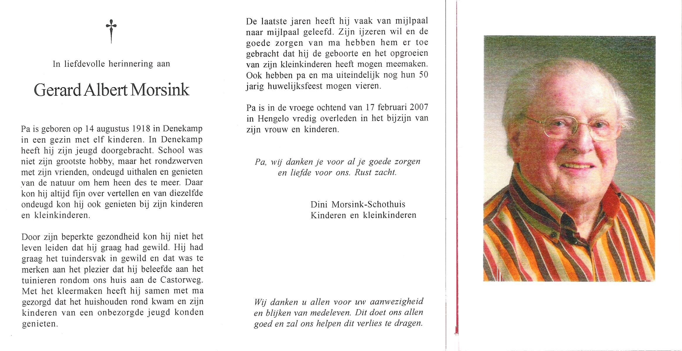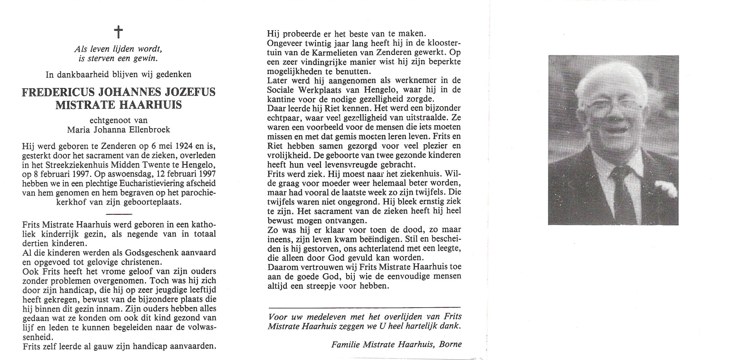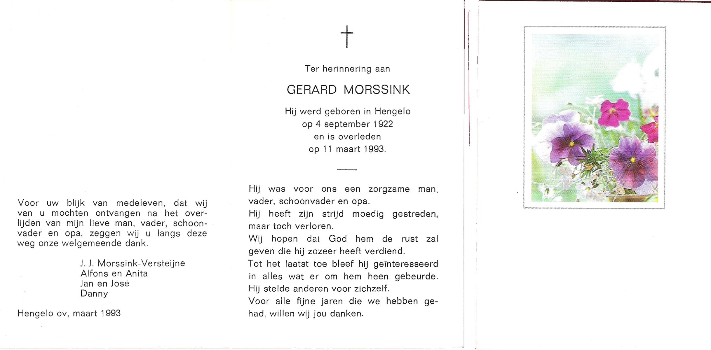 MULHOF, Gerhardus, geboren op 5-9-1910 te Wierden, Notter, overleden op 25-4-1993 te Hellendoorn, Nijverdal op 82-jarige leeftijd, begraven op 29-4-1993 te Hellendoorn, Nijverdal, rk.