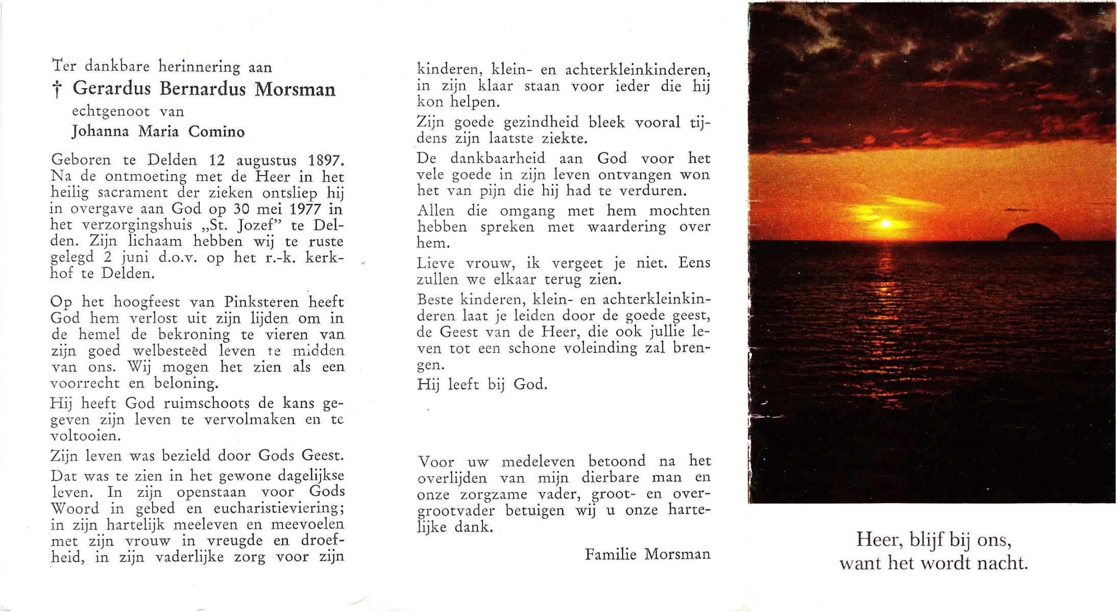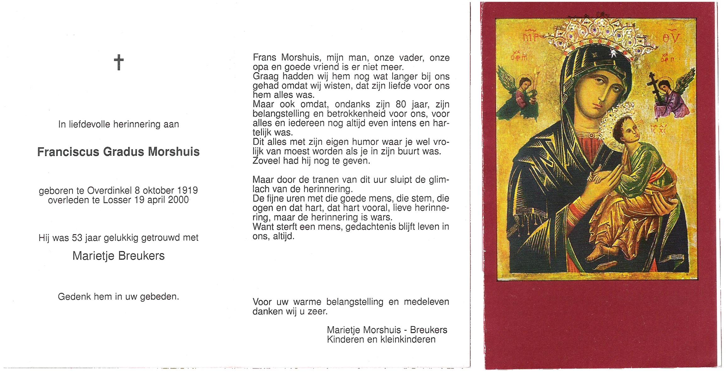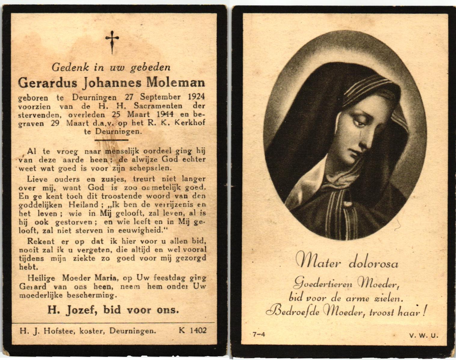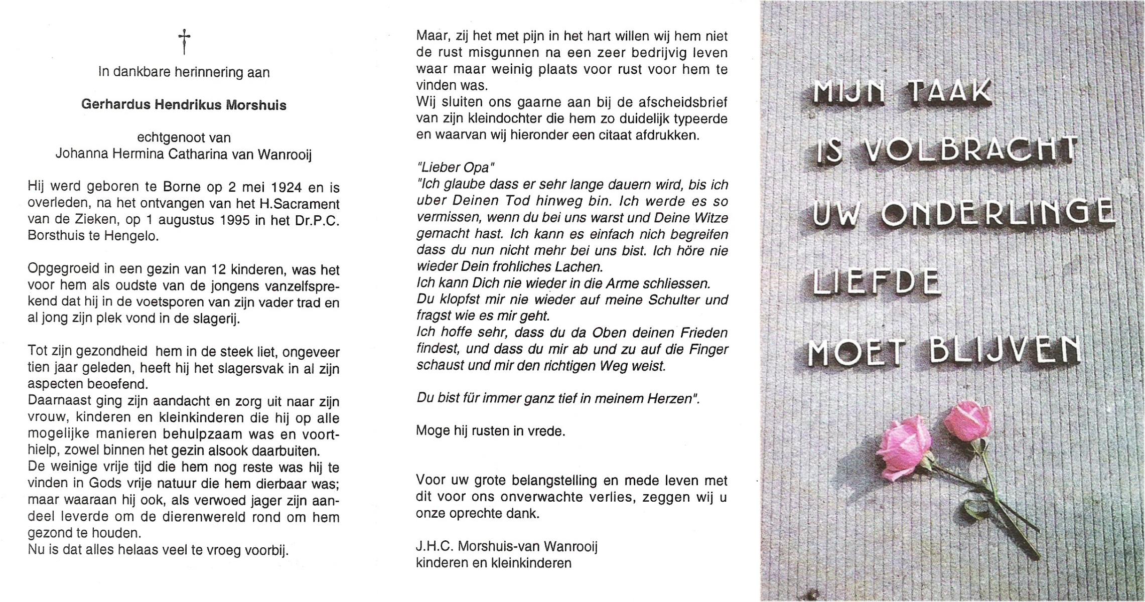 MULHOF, Gerhardus, geboren op 5-9-1910 te Wierden, Notter, overleden op 25-4-1993 te Hellendoorn, Nijverdal op 82-jarige leeftijd, begraven op 29-4-1993 te Hellendoorn, Nijverdal, rk.