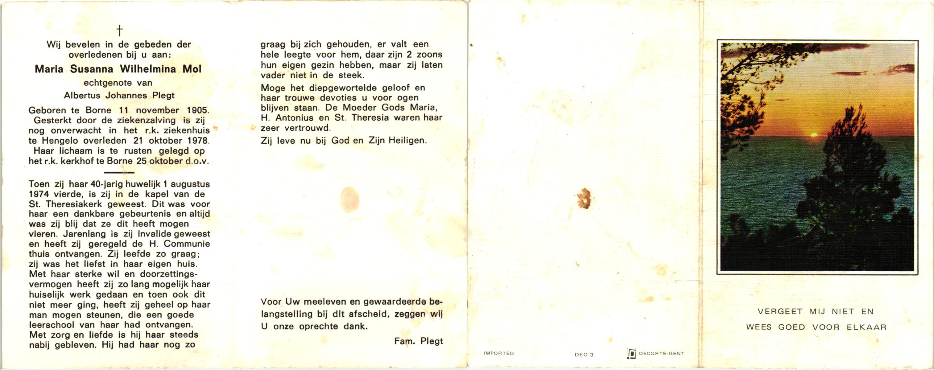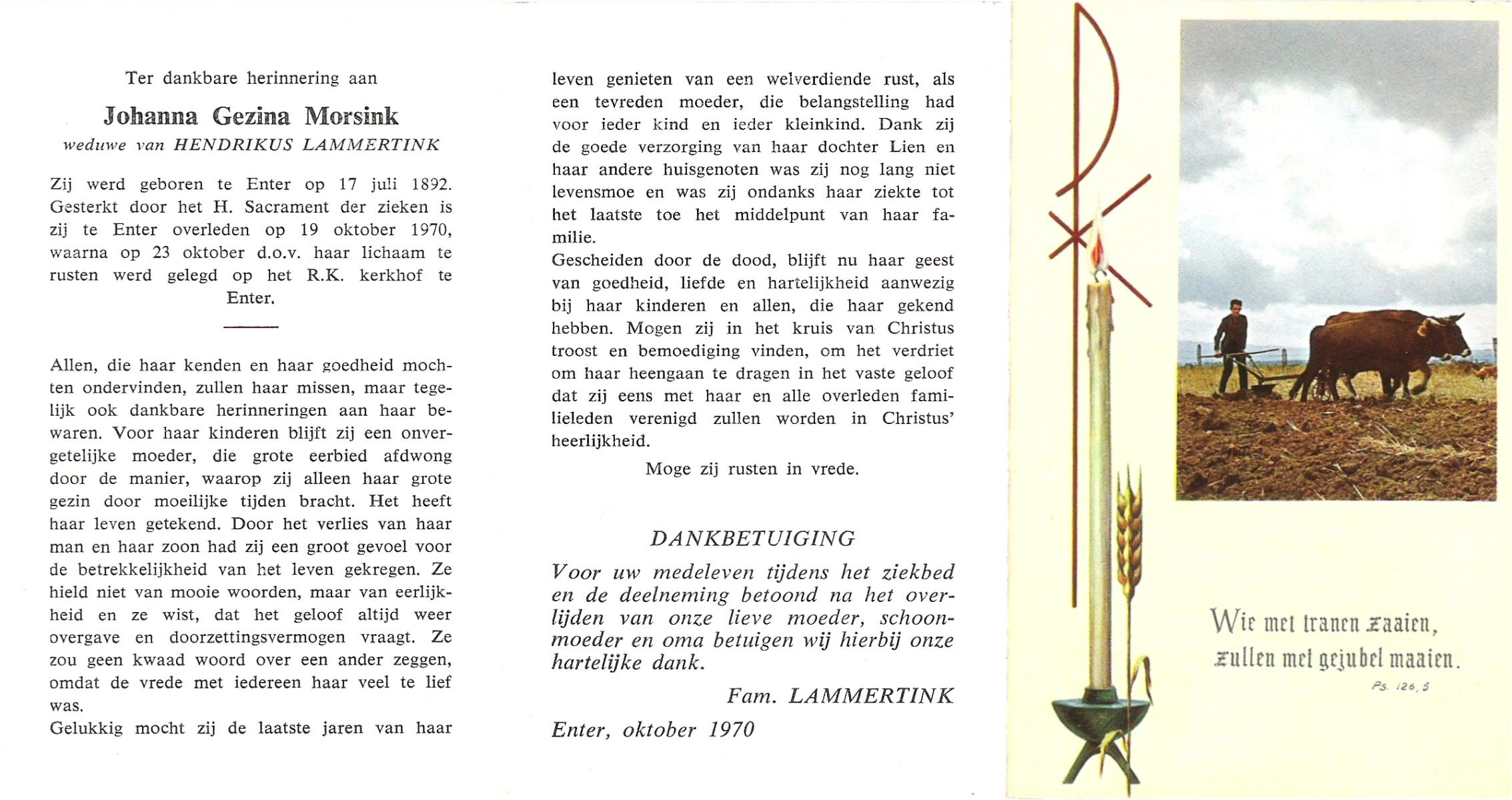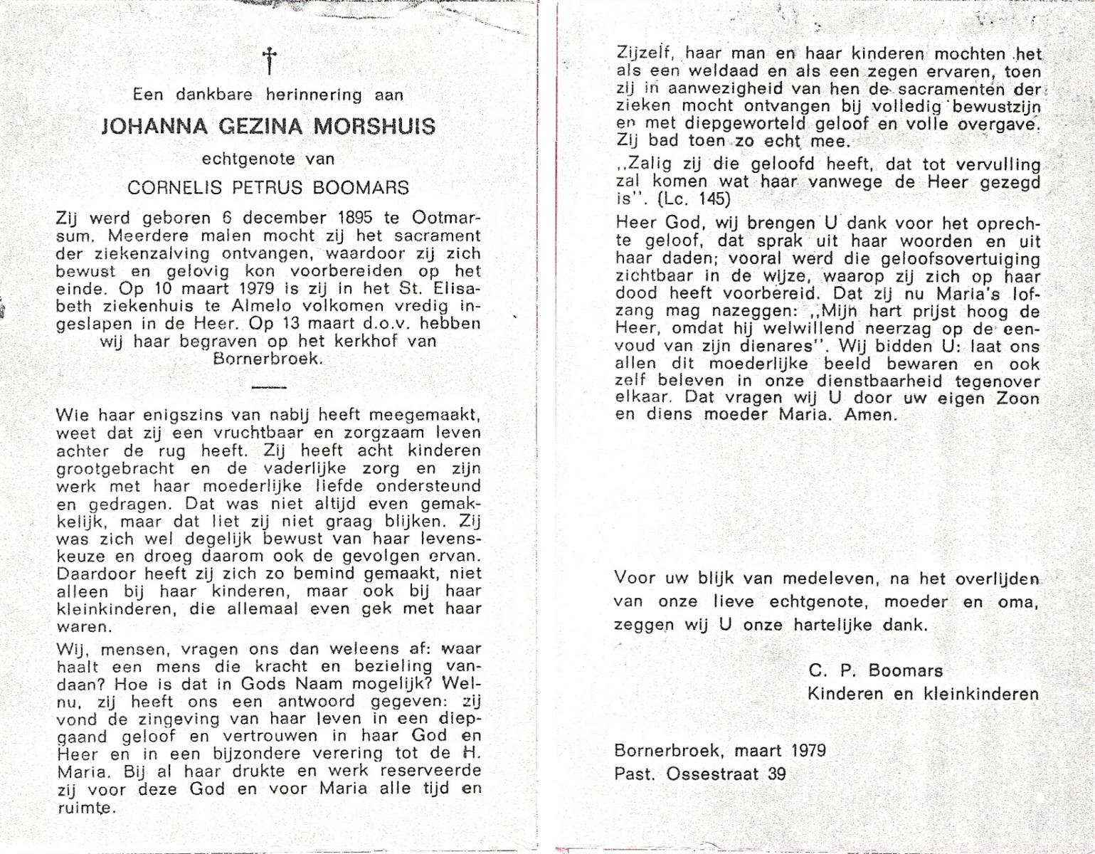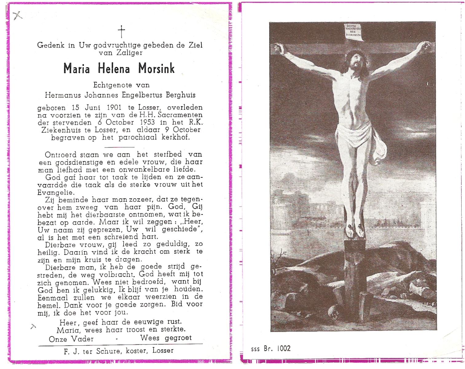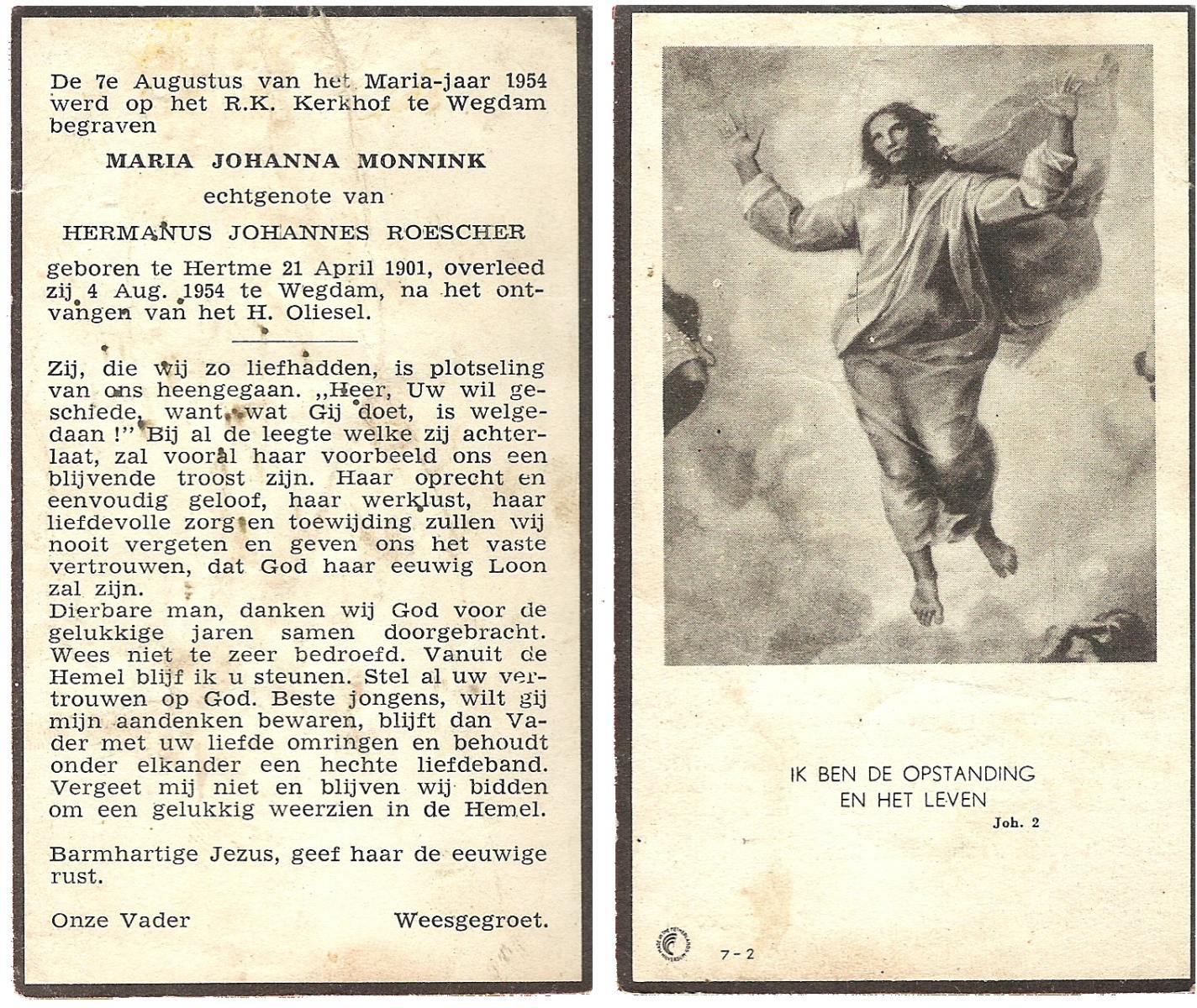 MULDER, Maria Johanna, geboren op 24-8-1911 te Borne, overleden op 11-12-1972 te Hengelo (Ov.) op 61-jarige leeftijd, begraven op 15-12-1972 te Borne.