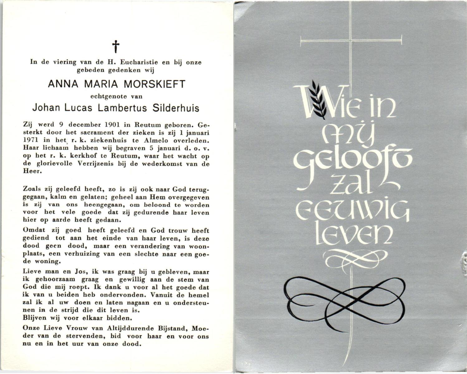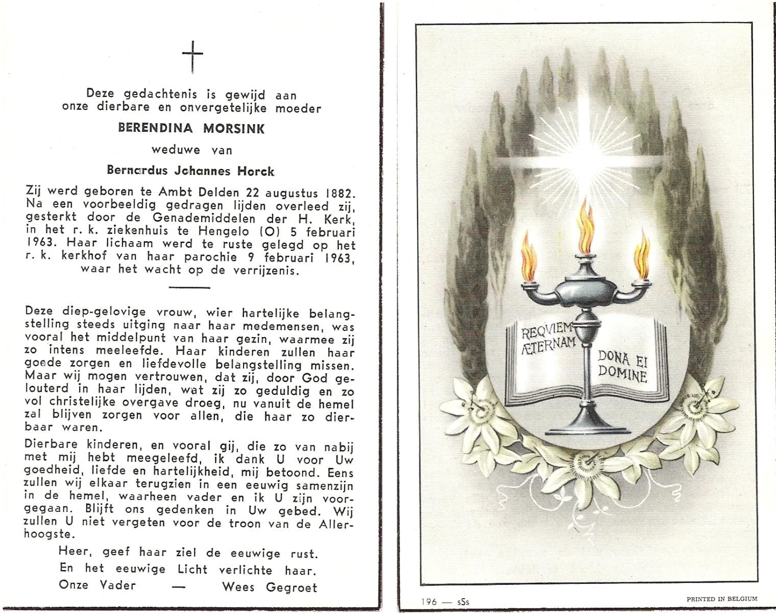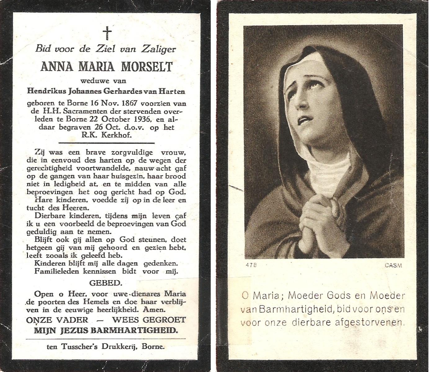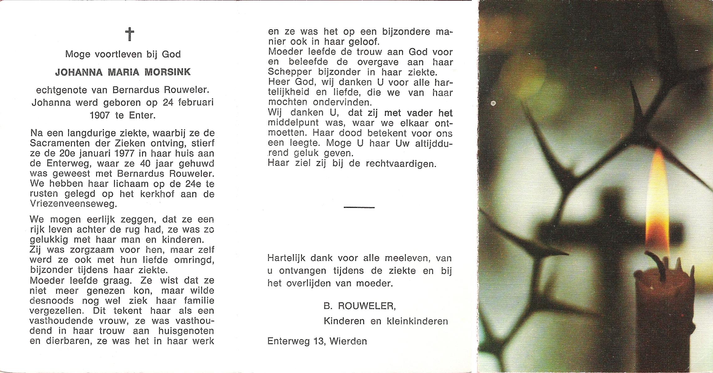 MULDER, Maria Johanna, geboren op 24-8-1911 te Borne, overleden op 11-12-1972 te Hengelo (Ov.) op 61-jarige leeftijd, begraven op 15-12-1972 te Borne.