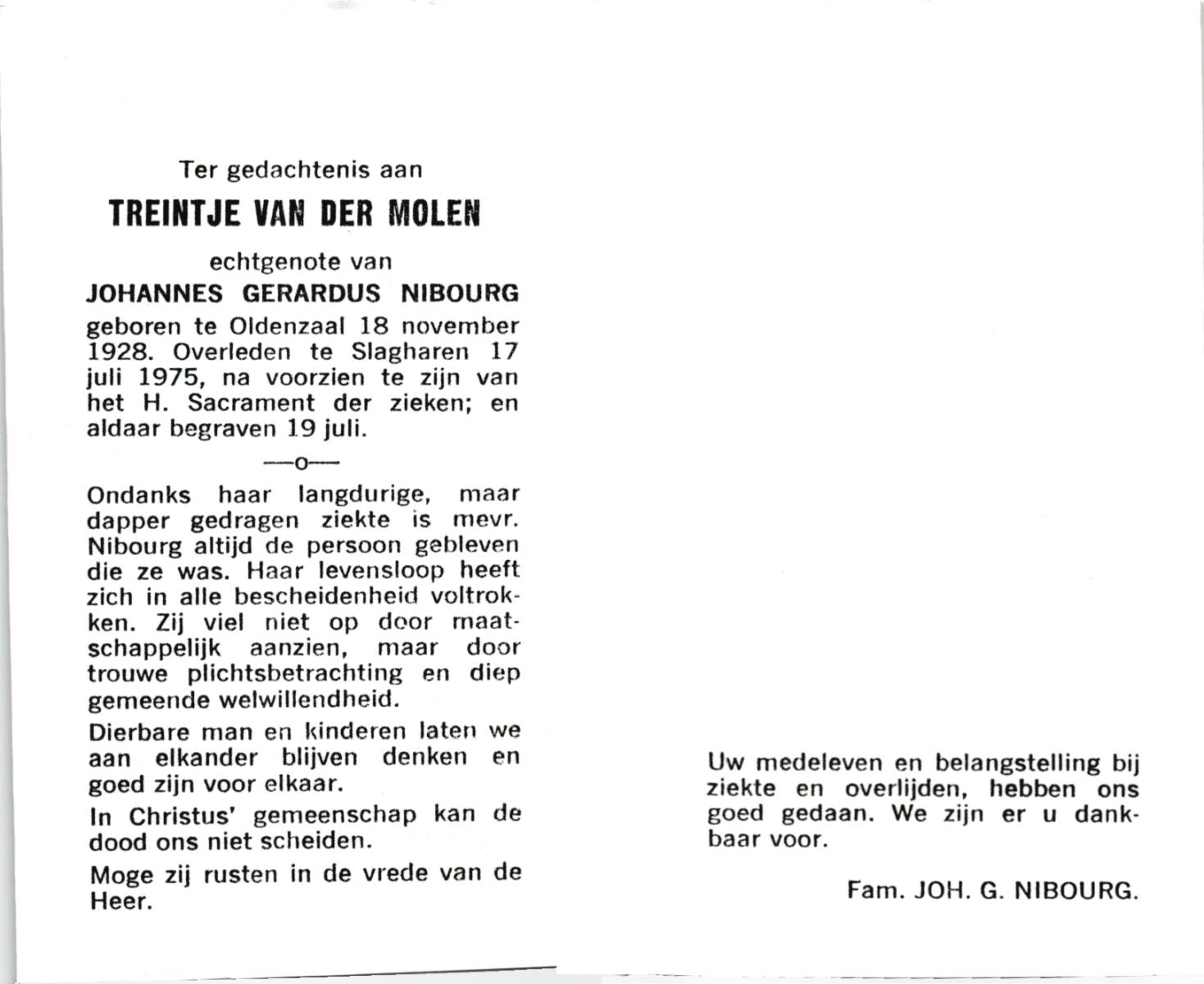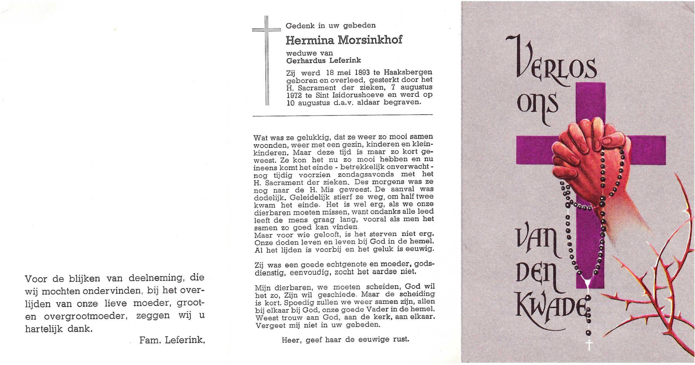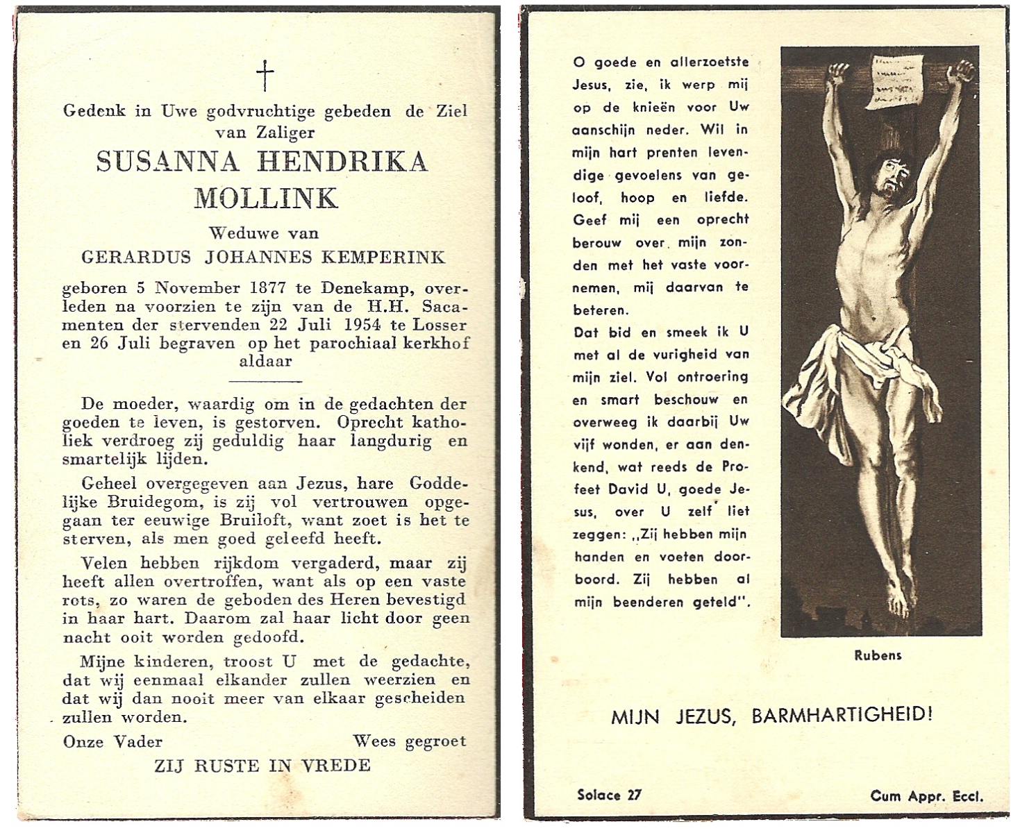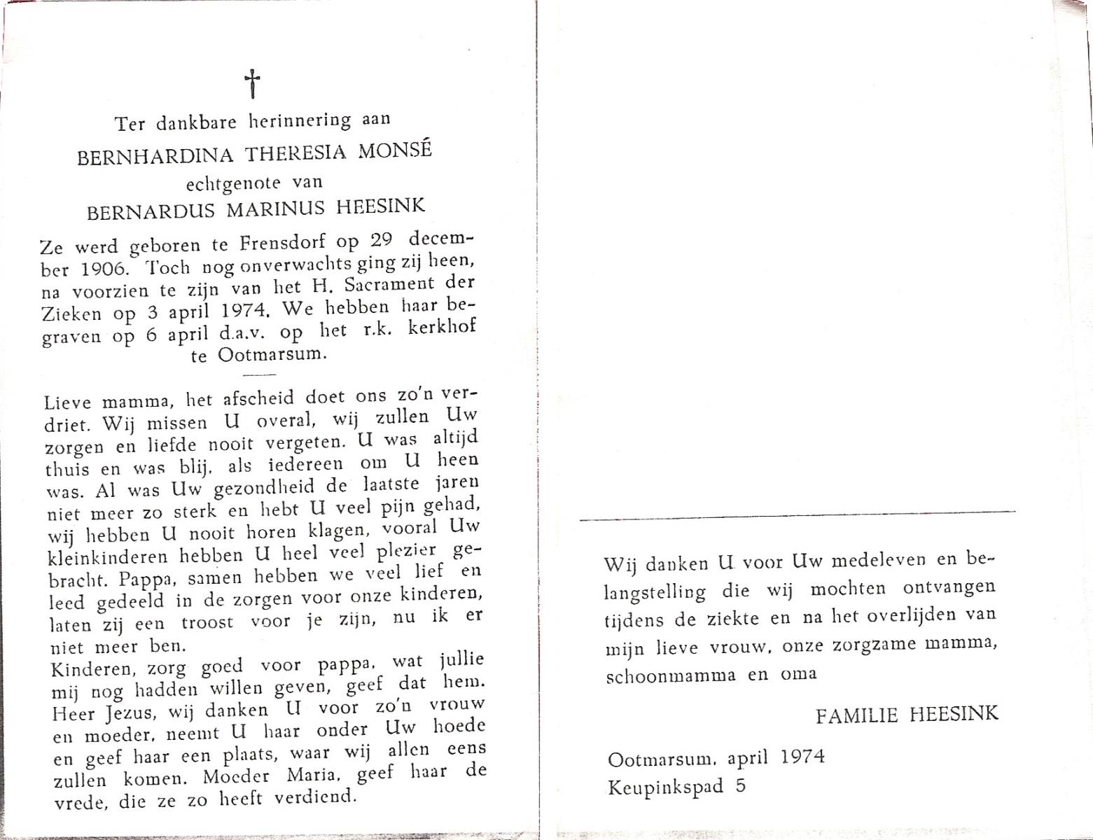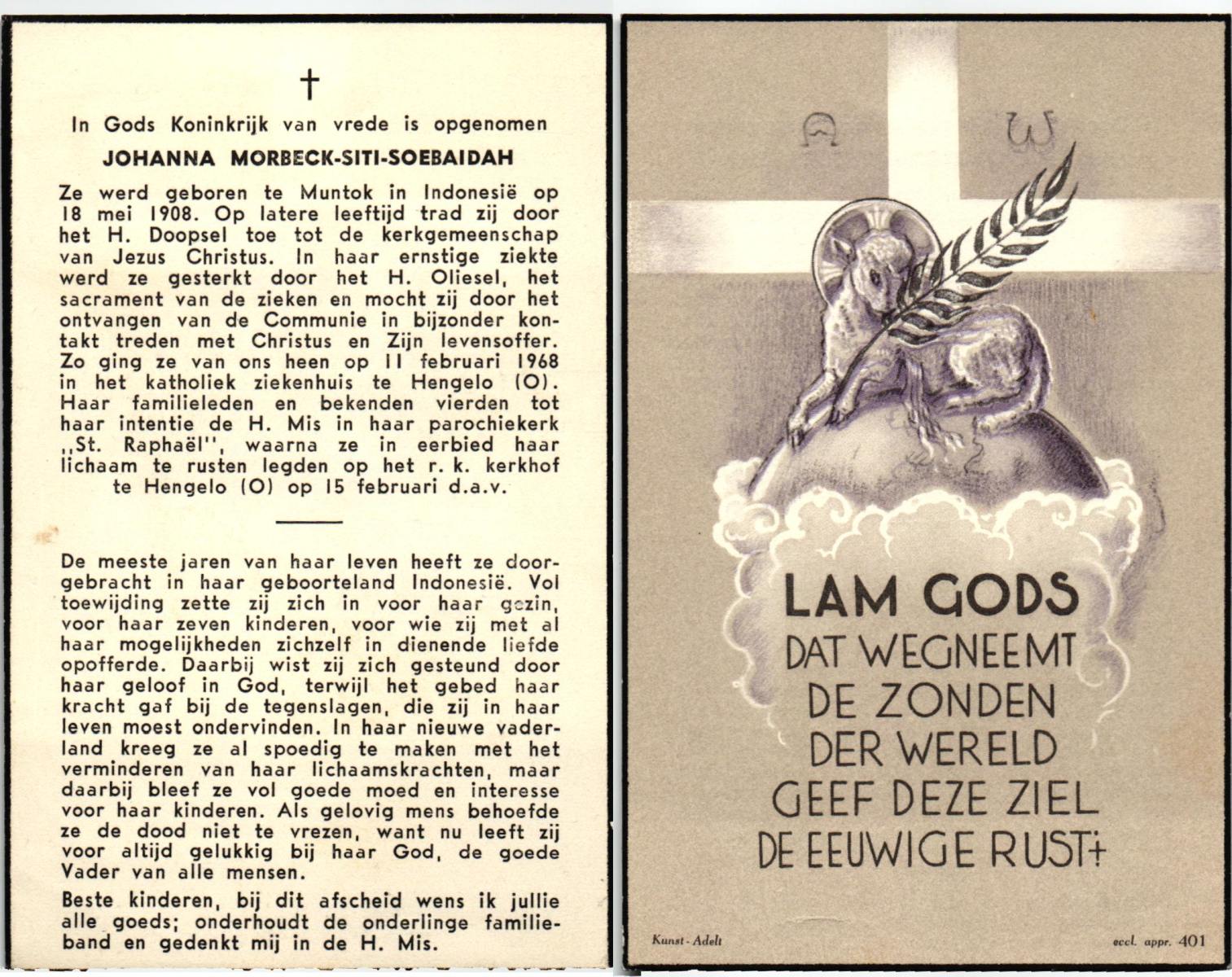 MULDER, Maria Johanna, geboren op 24-8-1911 te Borne, overleden op 11-12-1972 te Hengelo (Ov.) op 61-jarige leeftijd, begraven op 15-12-1972 te Borne.