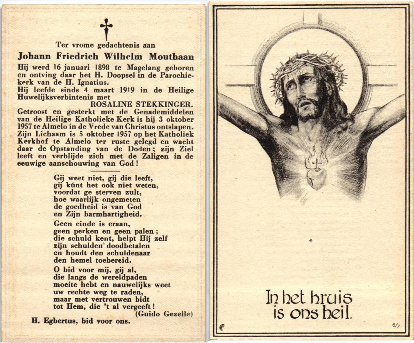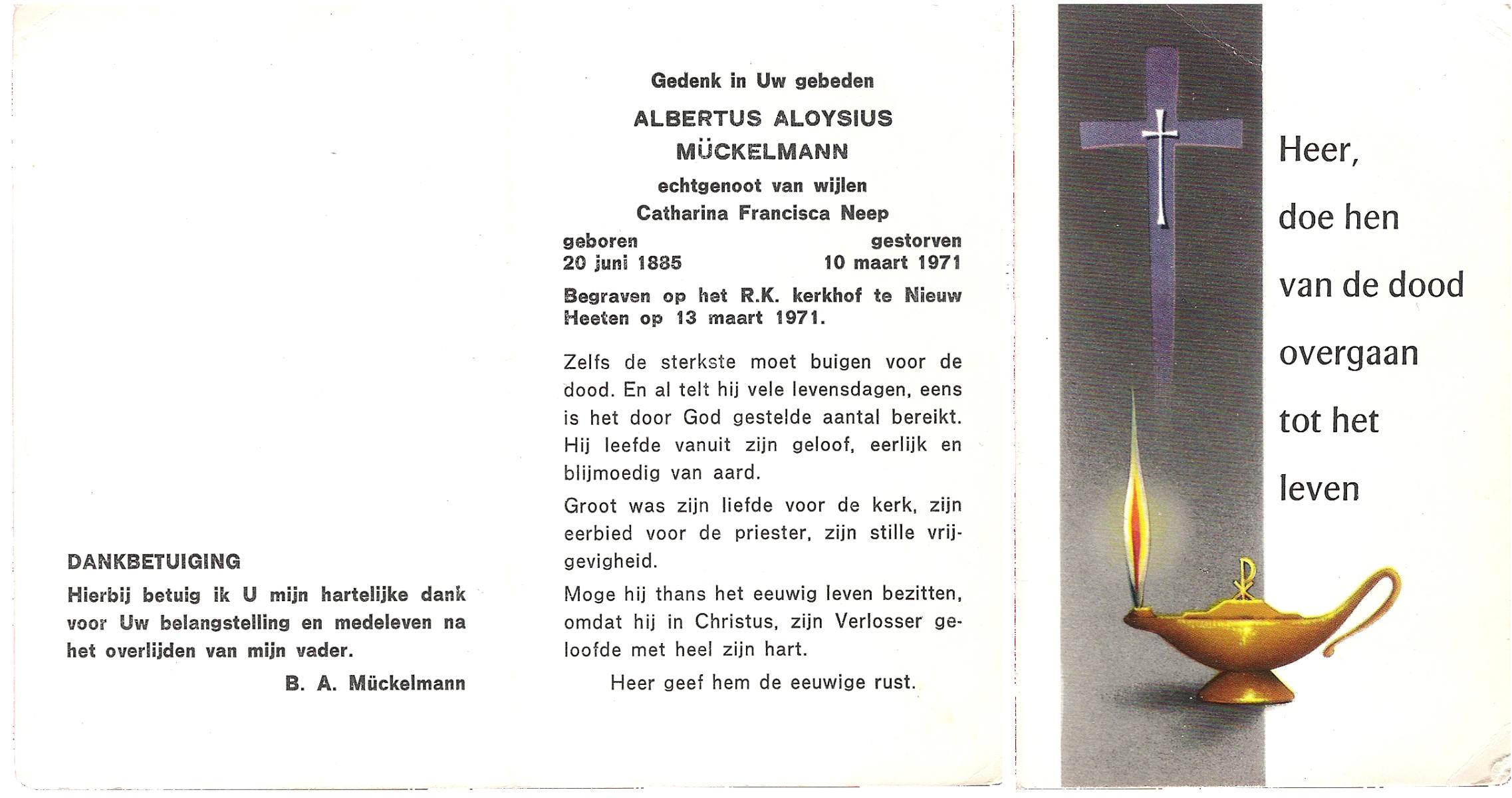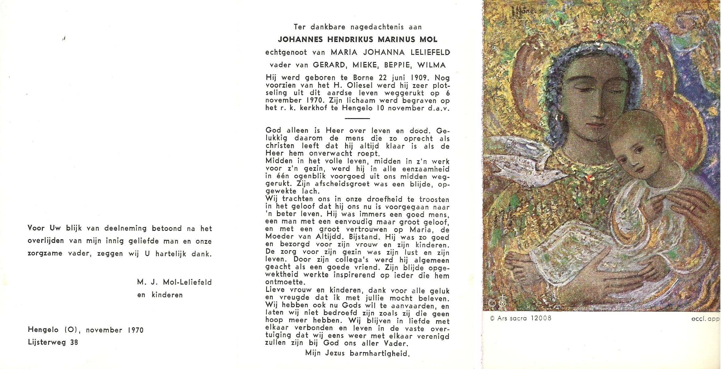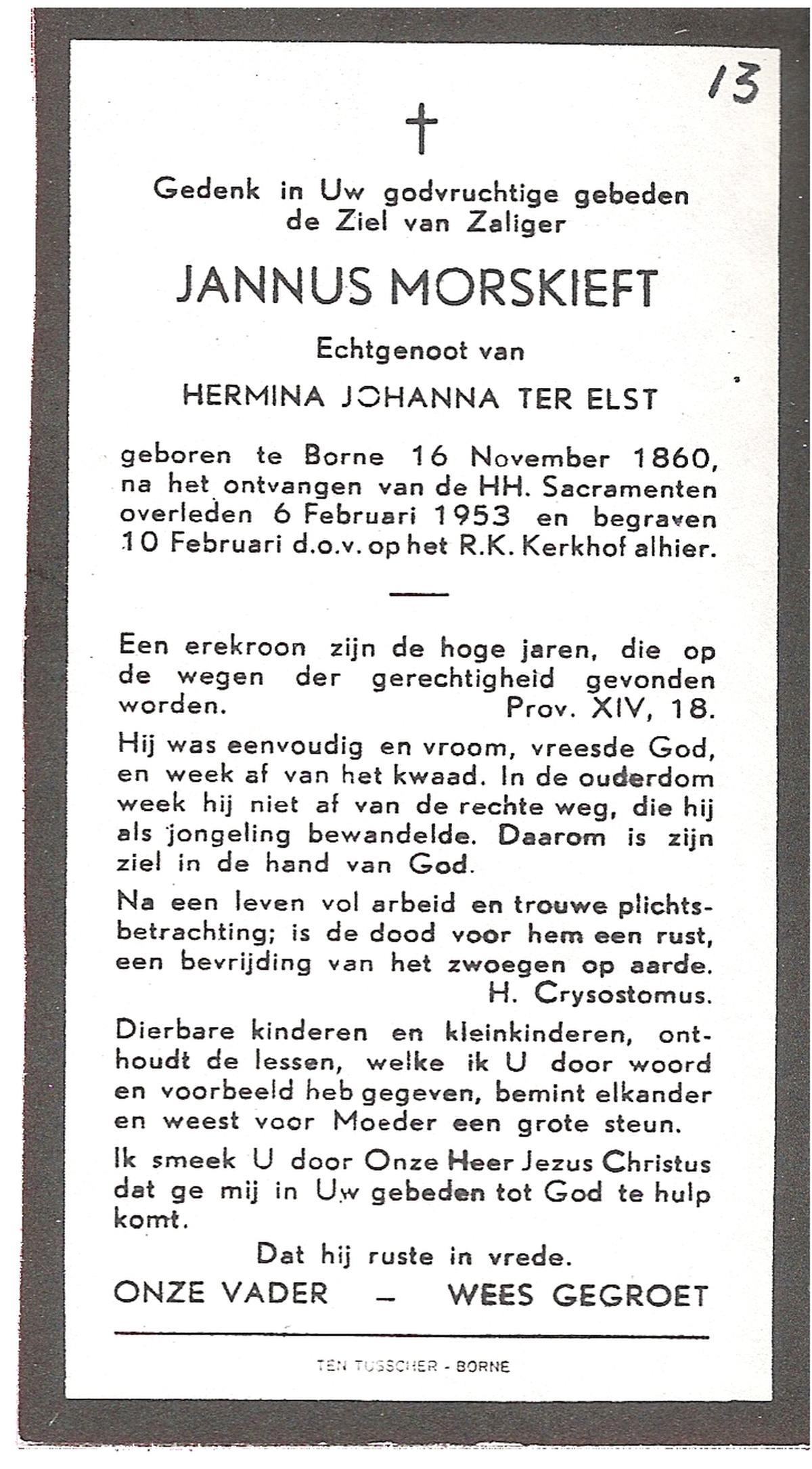 MULDER, Johannes, geboren op 5-10-1913 te Borne, overleden op 13-7-1971 te Hengelo, ziekenhuis op 57-jarige leeftijd, begraven op 16-7-1971 te Borne.