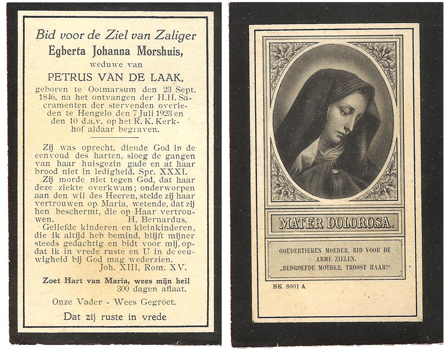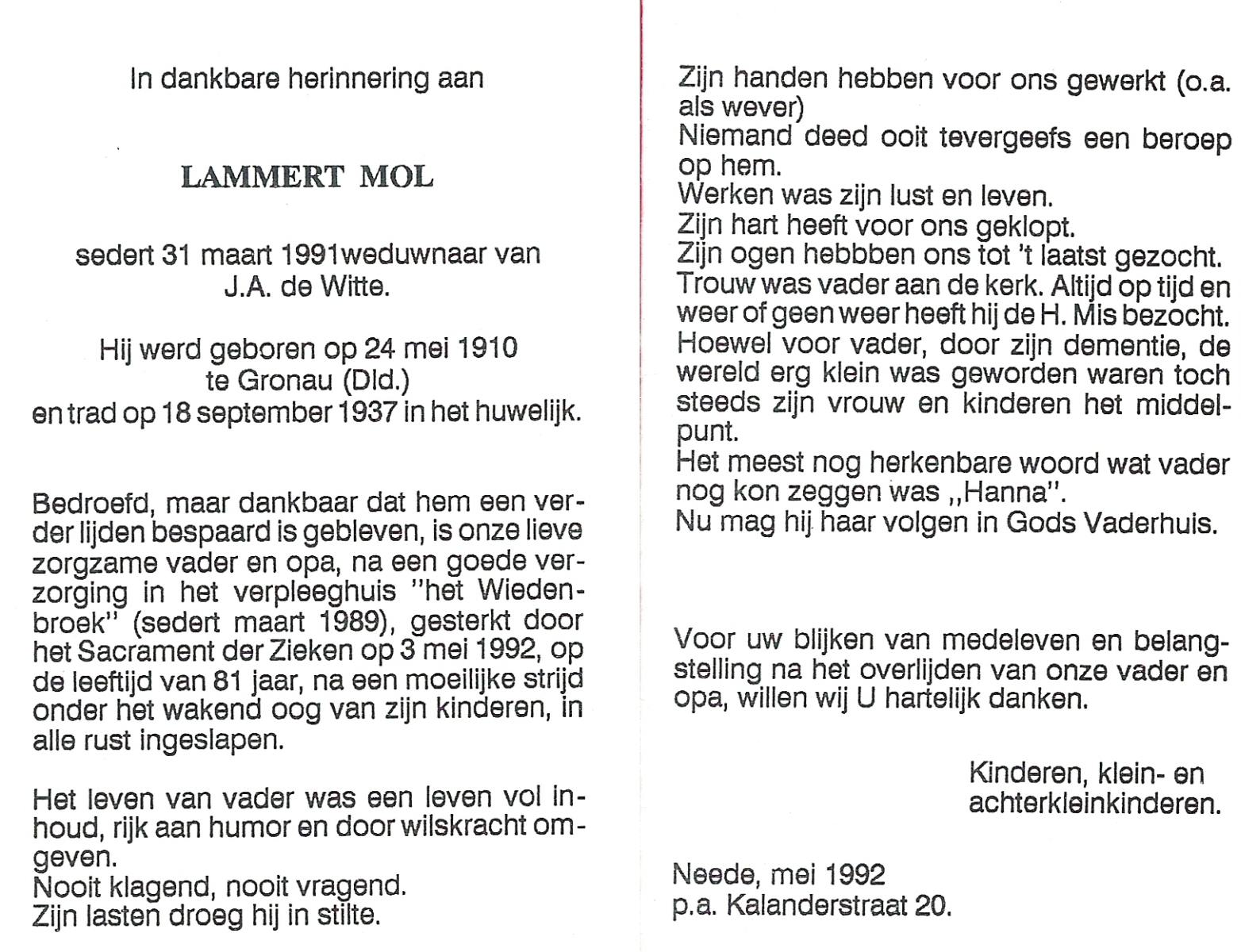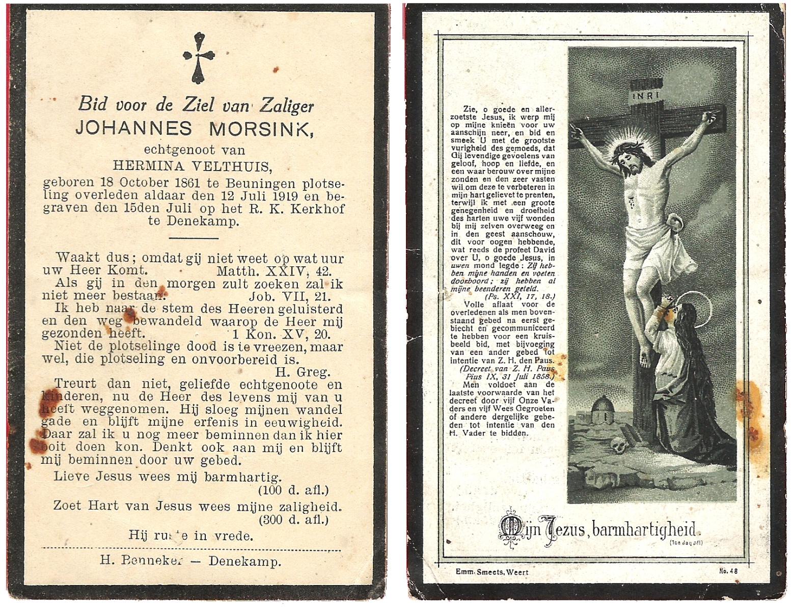MULDERS, Lambertus Lebuinis, geboren op 12-11-1866 te Weerselo, overleden op 4-7-1954 te Denekamp op 87-jarige leeftijd, begraven op 7-7-1954 te Denekamp.