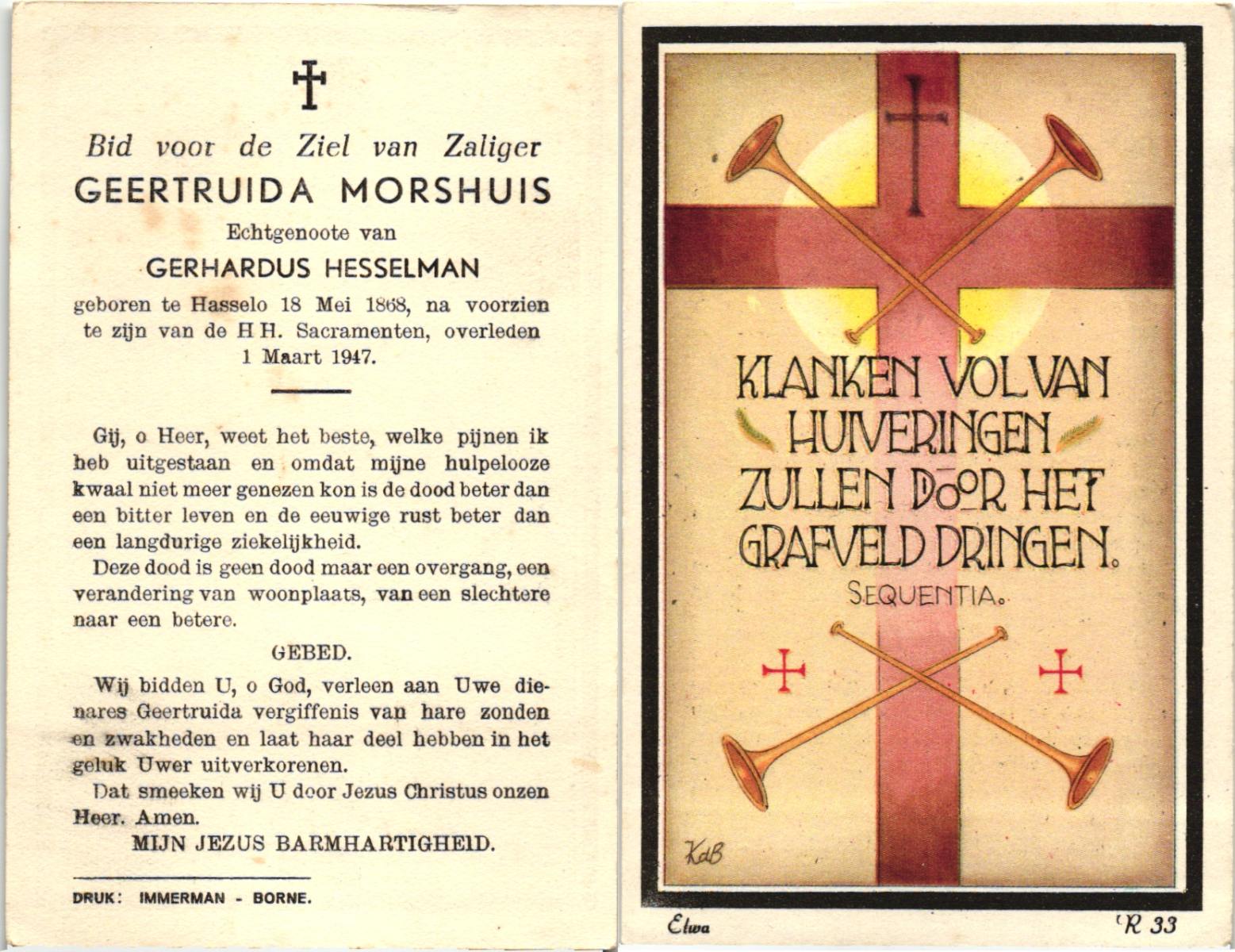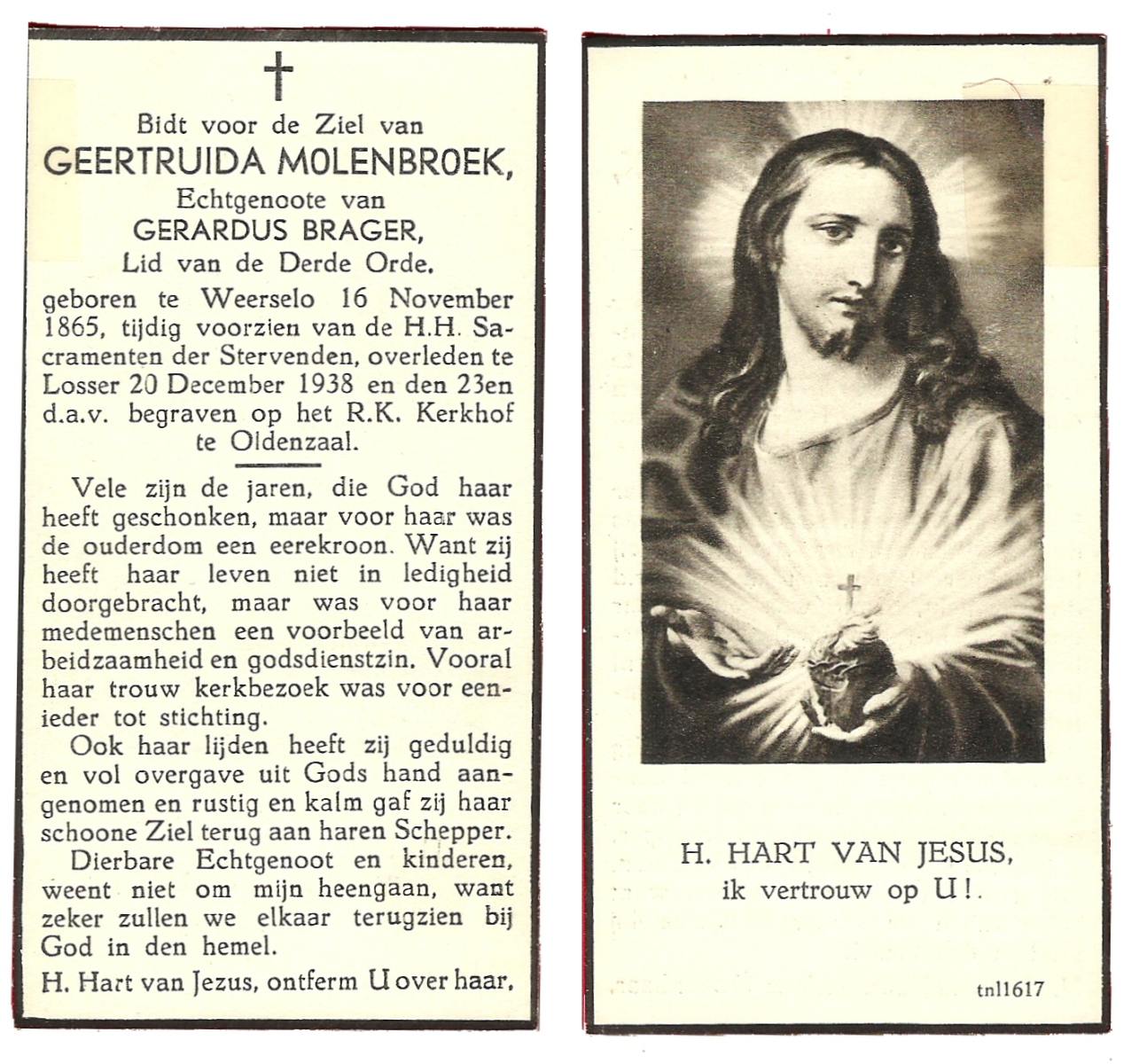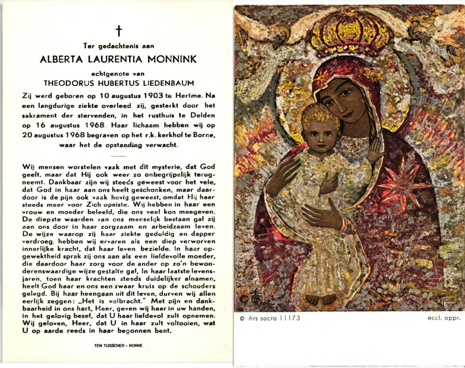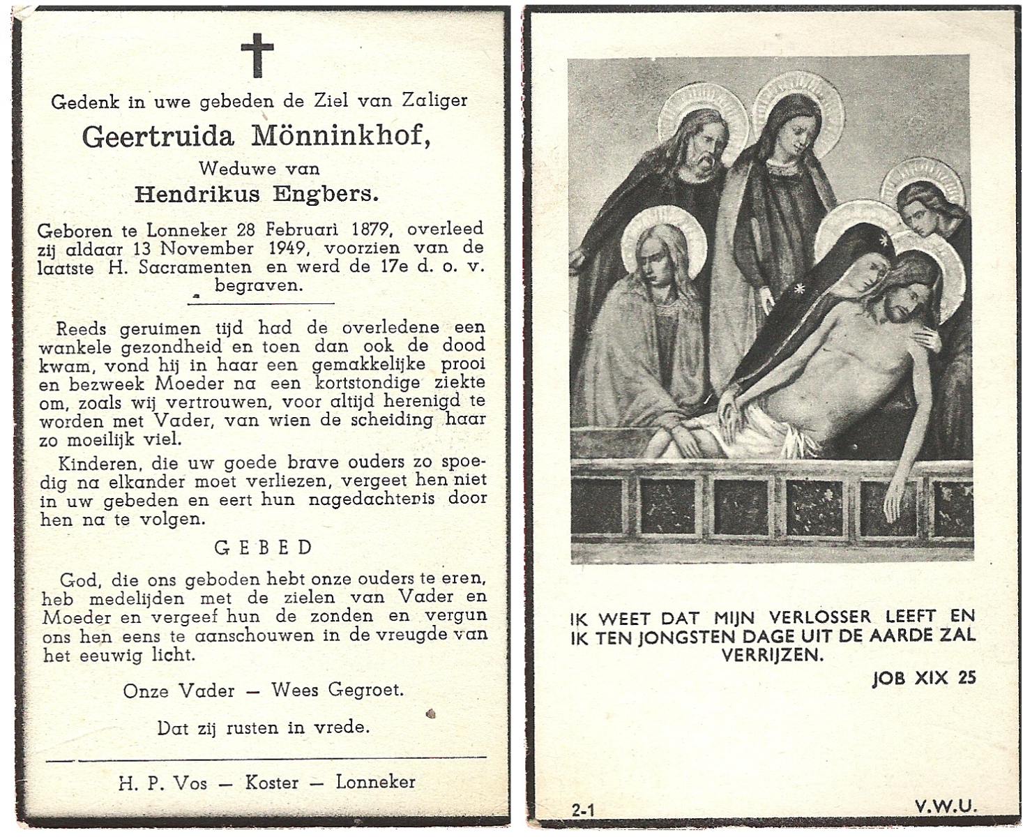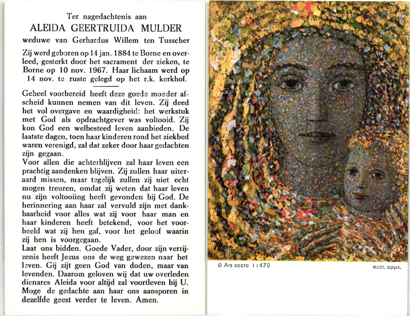 MULDER, , Aleida Geertruida, geboren op 14-01-1884 te Borne, overleden op 10-11-1967 te Borne op 83-jarige leeftijd, begraven op 14-11-1967 te Borne, rk.
