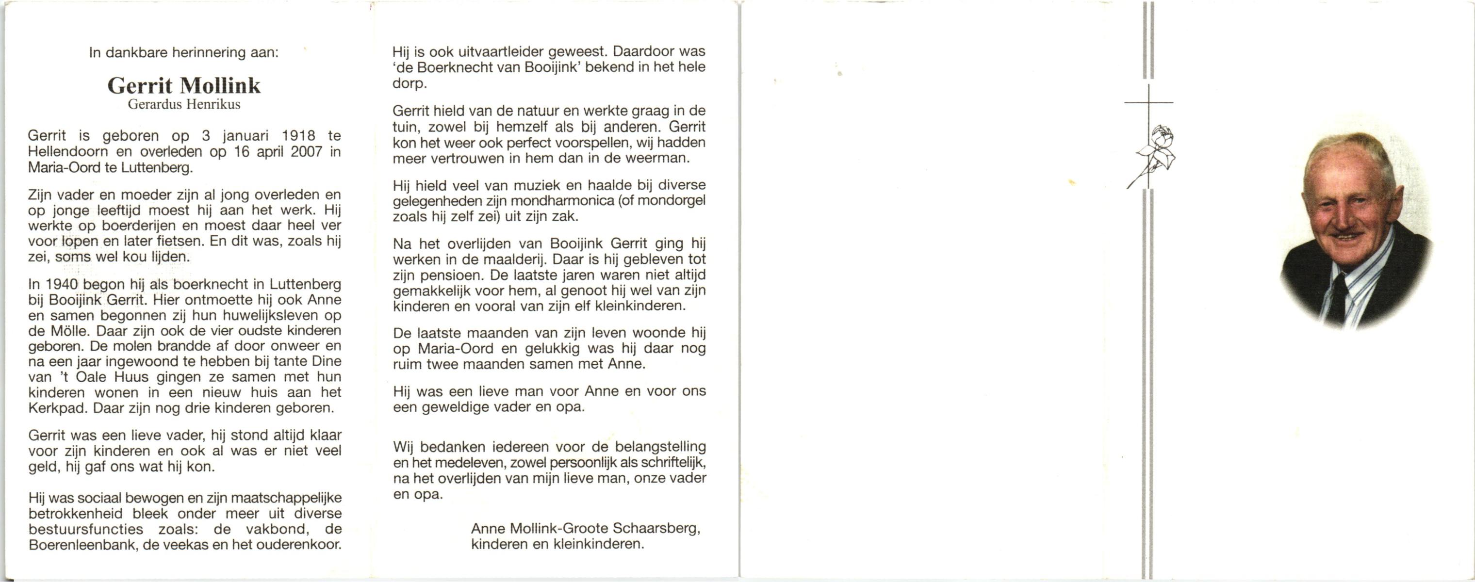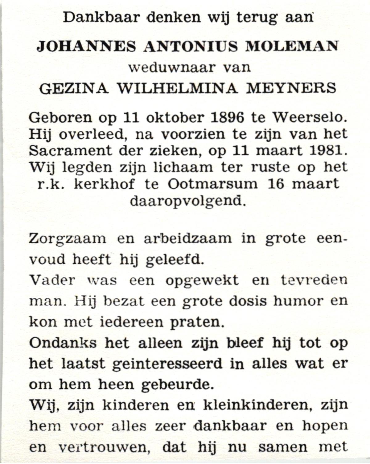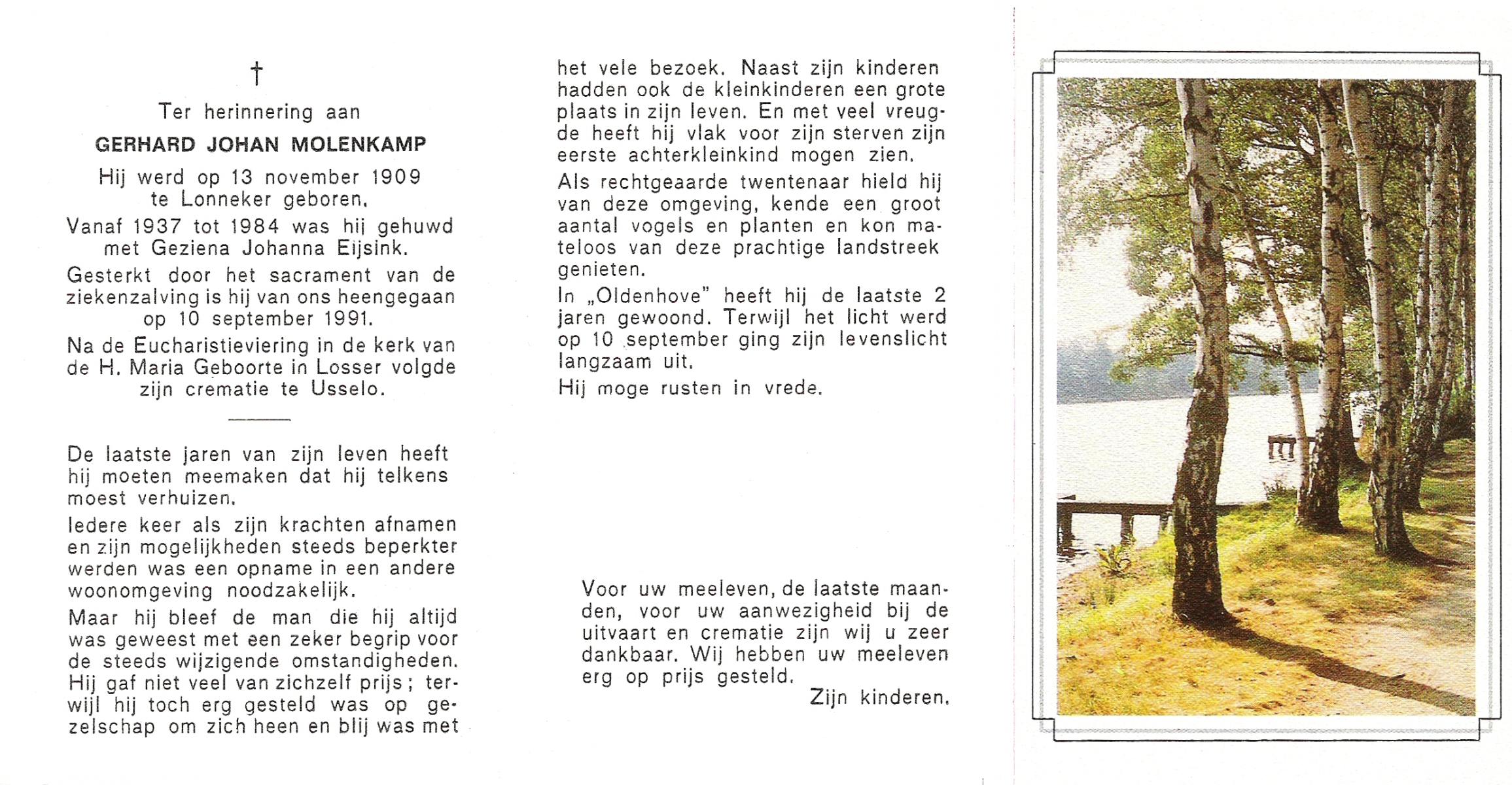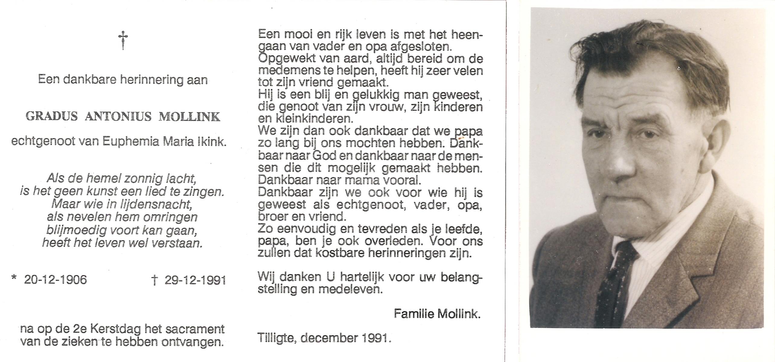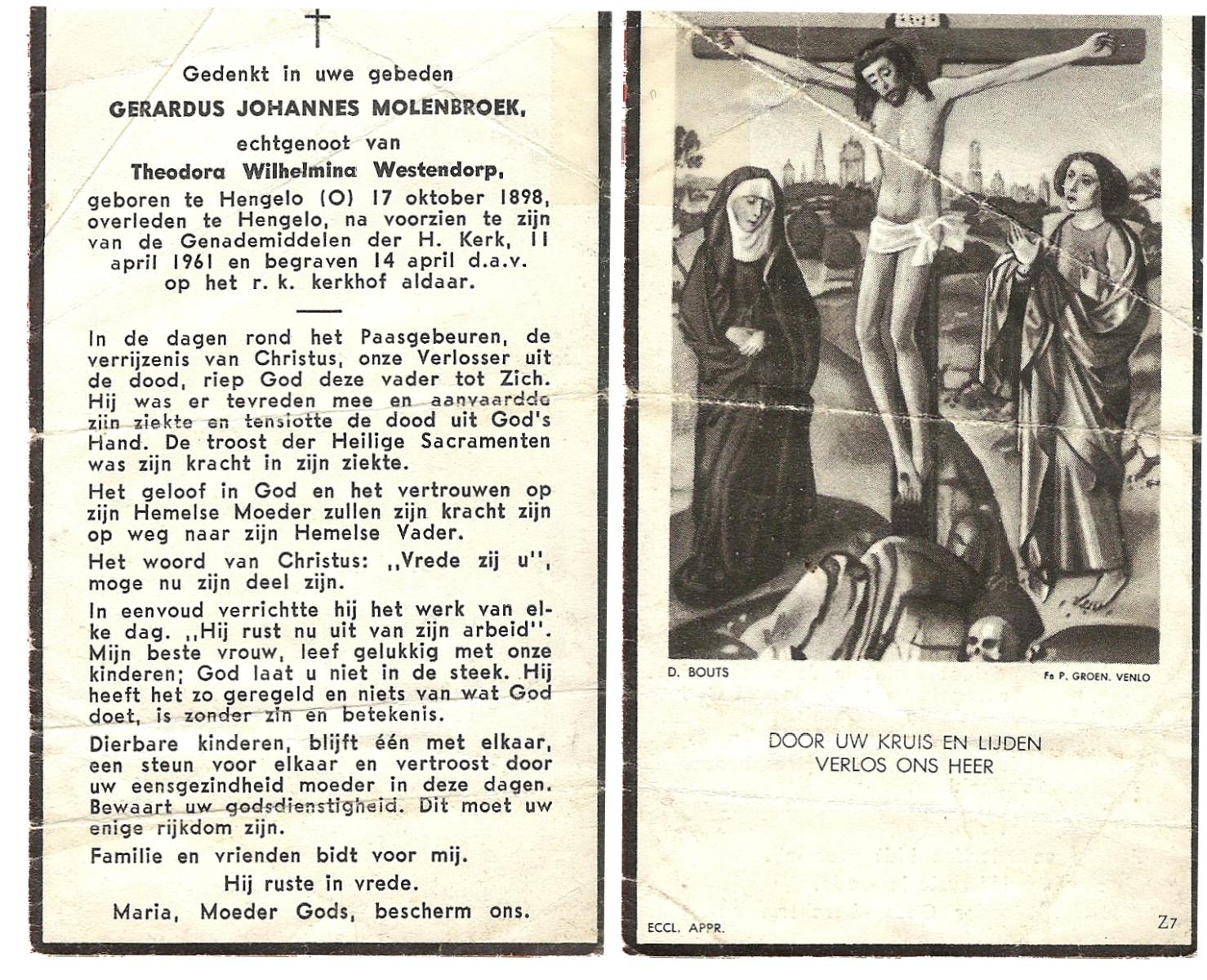 MULDERS, Gerardus Johannes, geboren op 11-11-1895 te Weerselo, overleden op 1-4-1991 op 95-jarige leeftijd, begraven op 5-4-1991 te Weerselo.