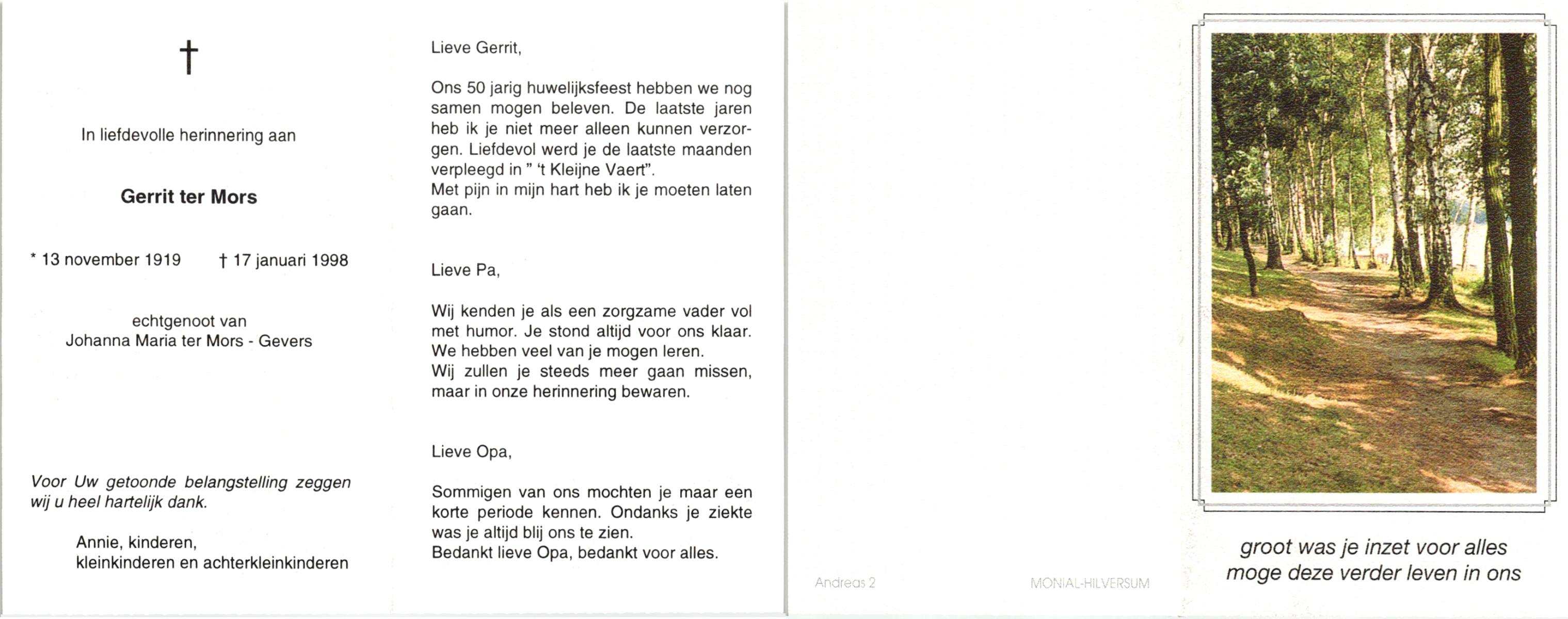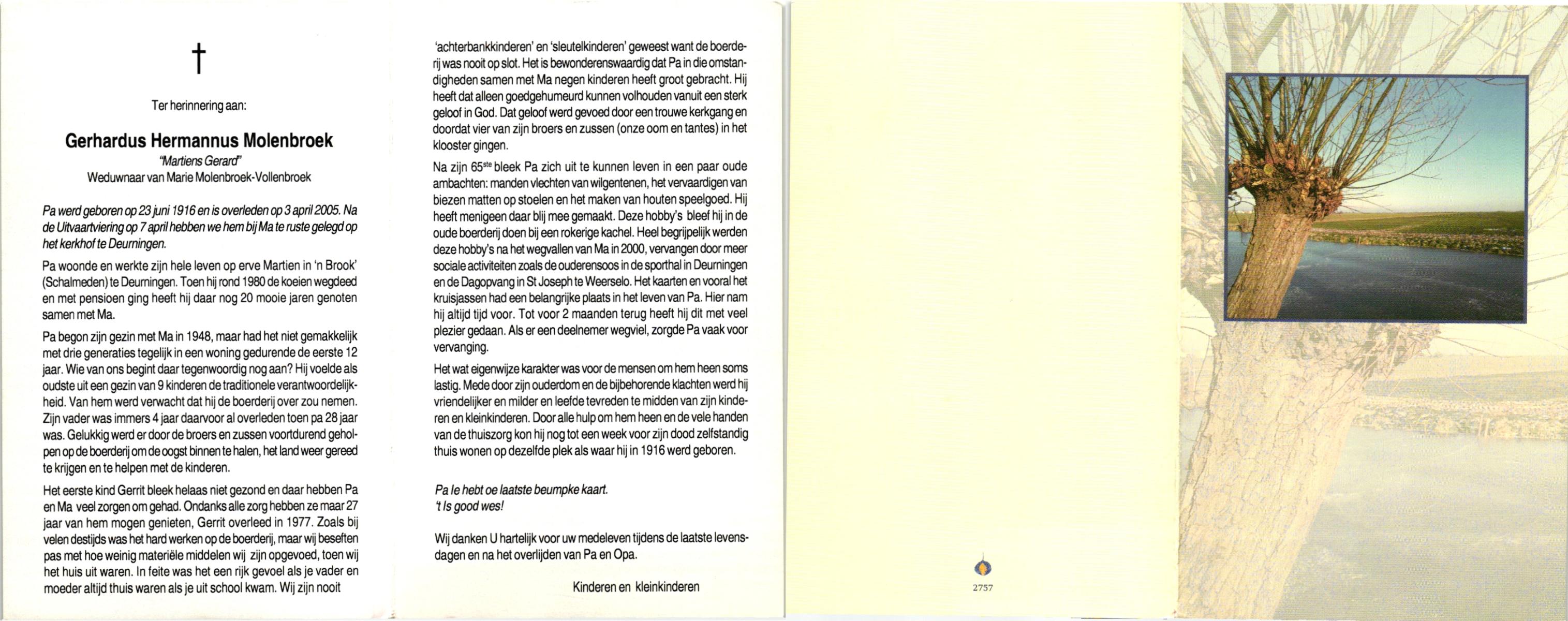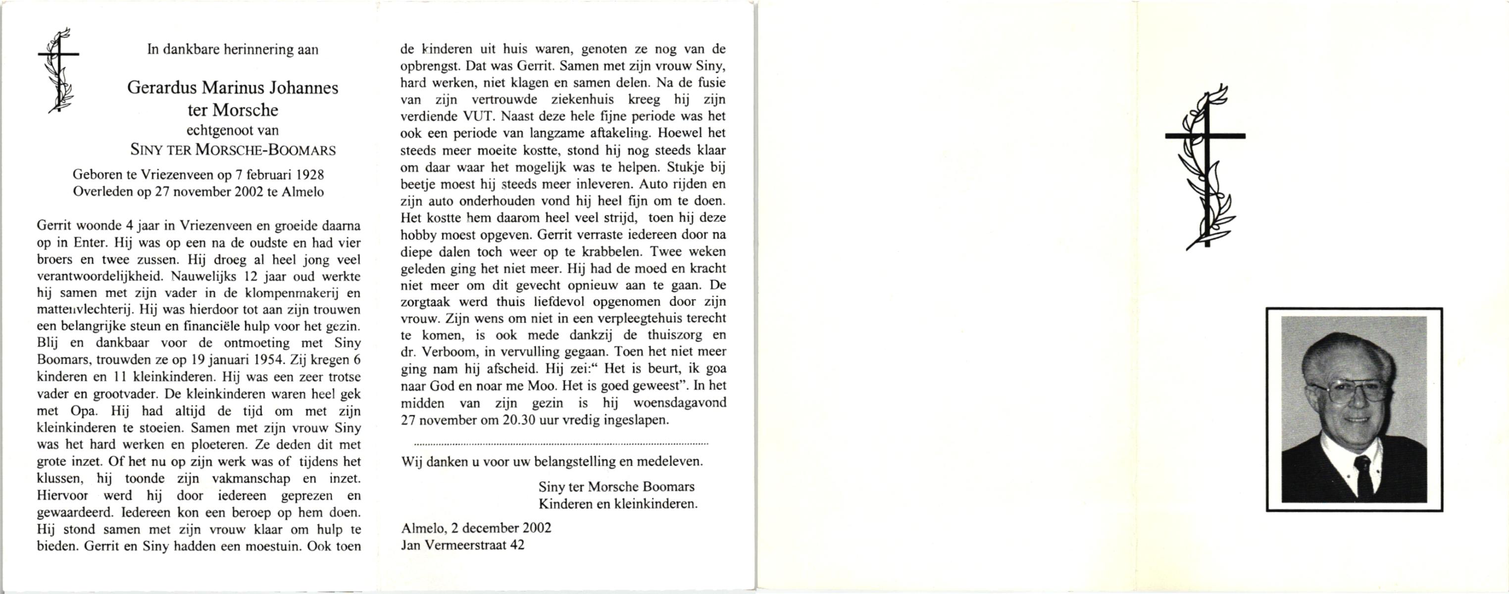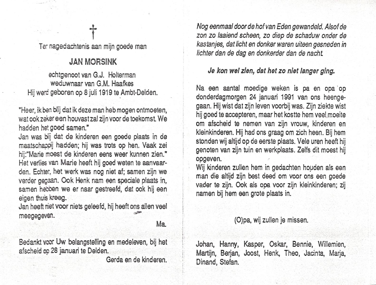 MULDERS, Gerardus Johannes, geboren op 11-11-1895 te Weerselo, overleden op 1-4-1991 op 95-jarige leeftijd, begraven op 5-4-1991 te Weerselo.