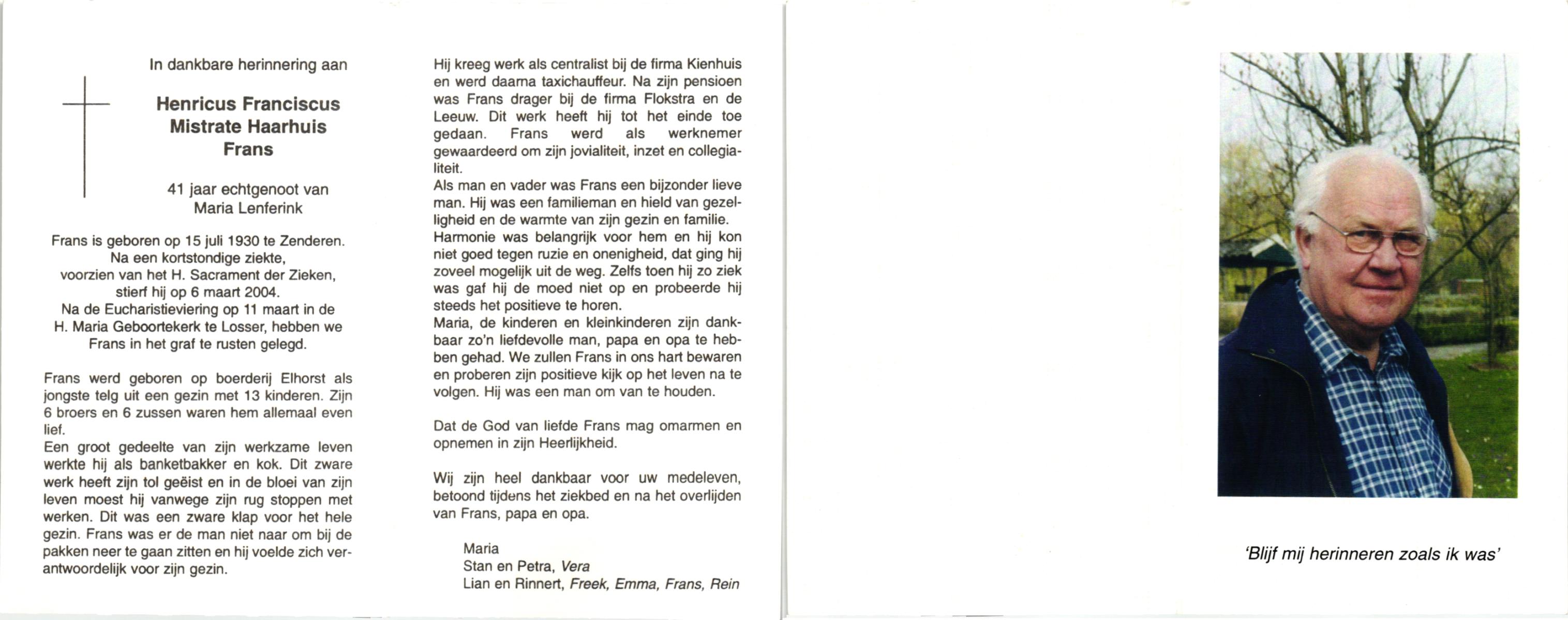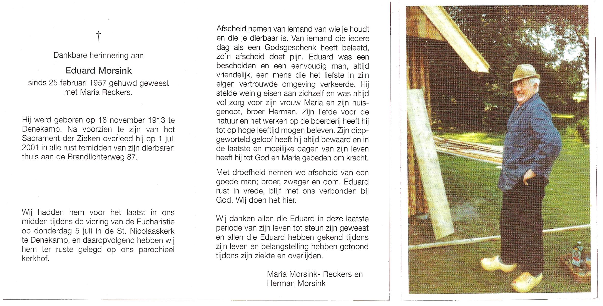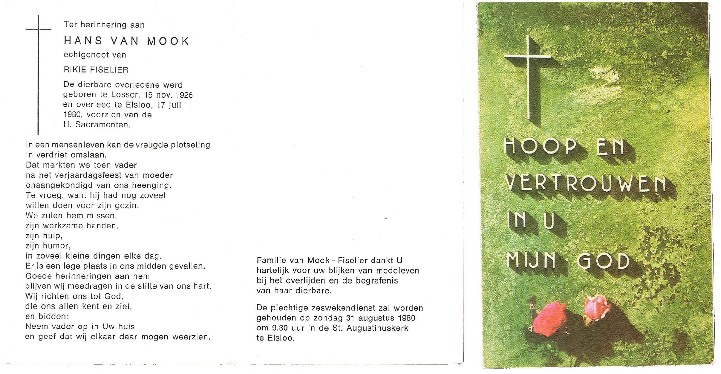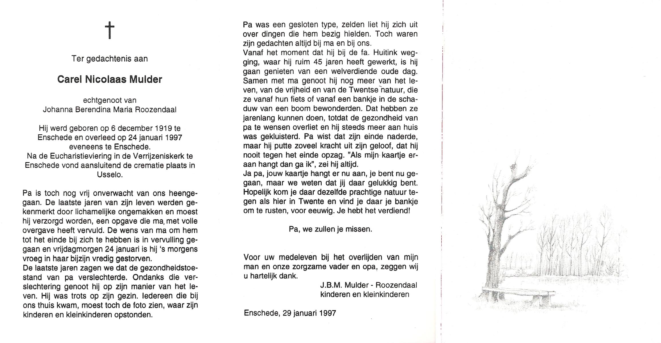 MULDER, , Hermannus Bernardus (Herman), geboren op 6-4-1921 te Deurningen, overleden op 23-1-2001 te Hengelo (O) op 79-jarige leeftijd, begraven op 27-1-2001 te Deurningen.