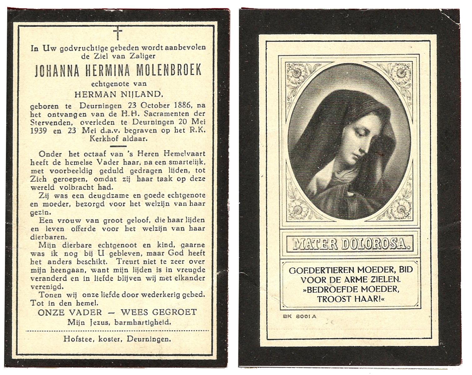 MULDER, Johanna, geboren op 04-11-1894, overleden op 11-11-1961 op 67-jarige leeftijd, begraven op 15-11-1961 te Hellendoorn, Nijverdal.