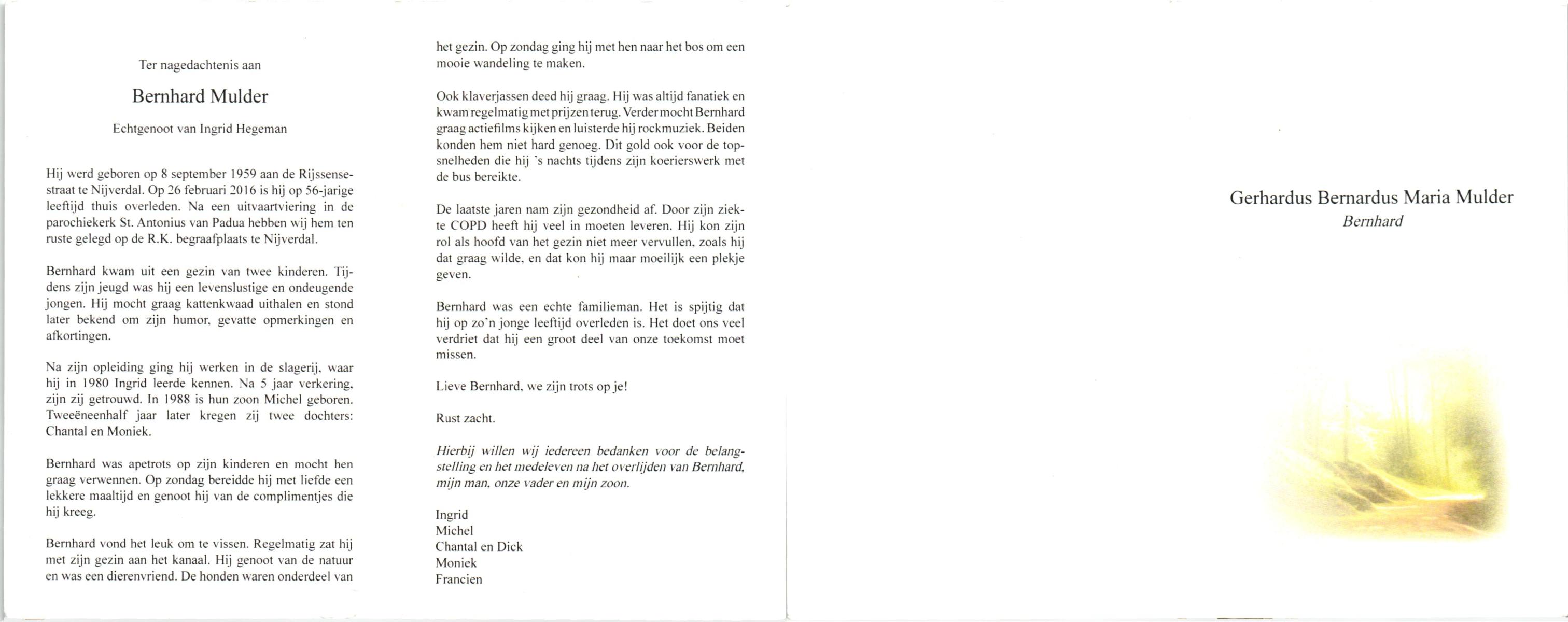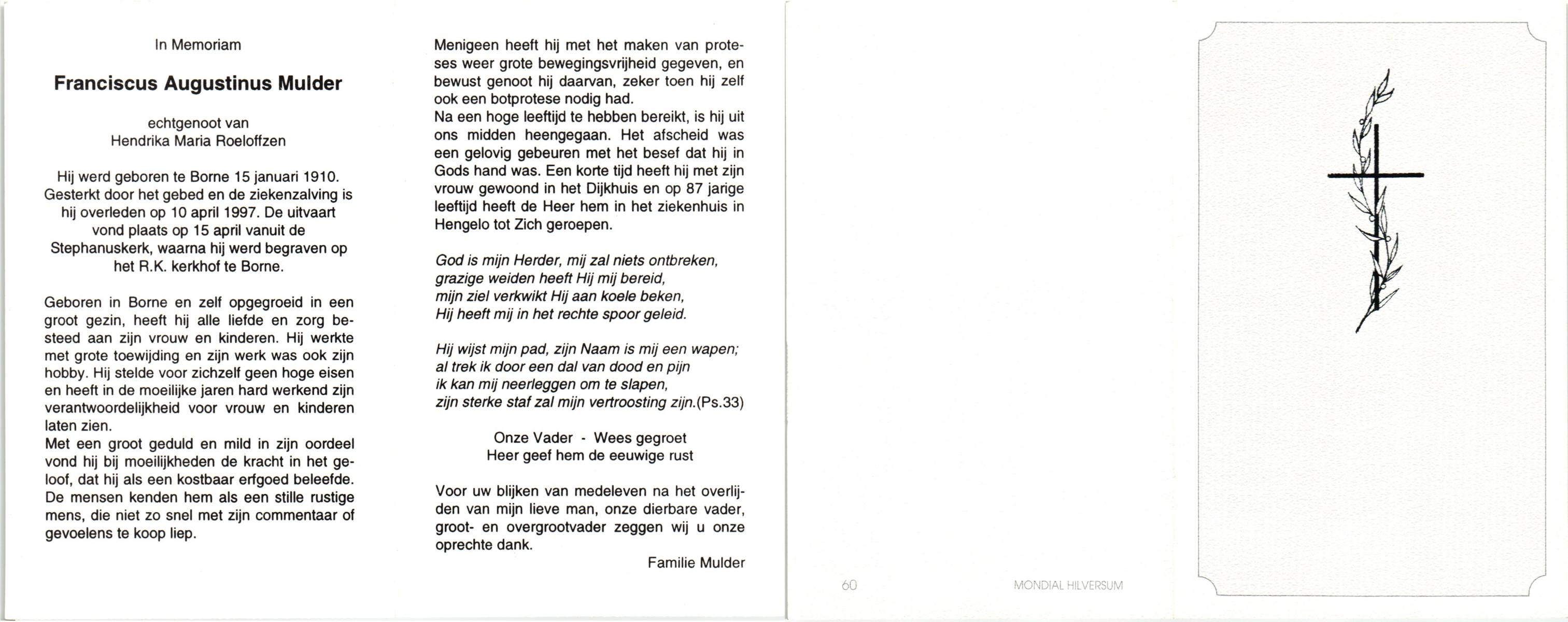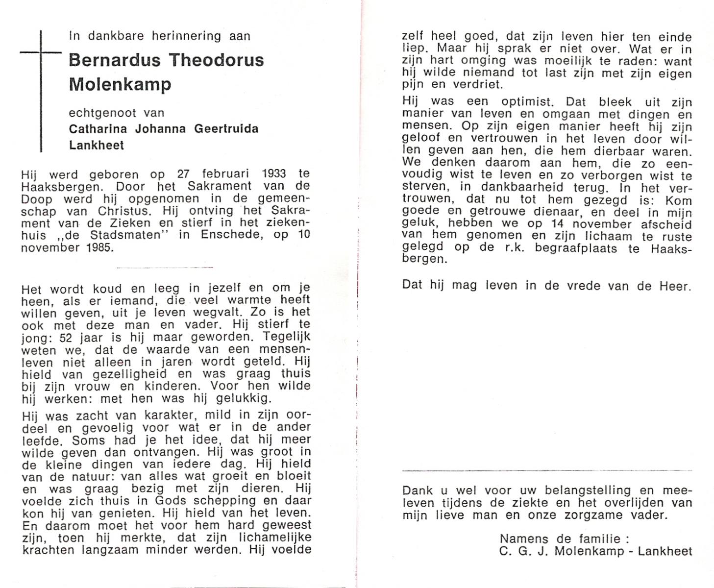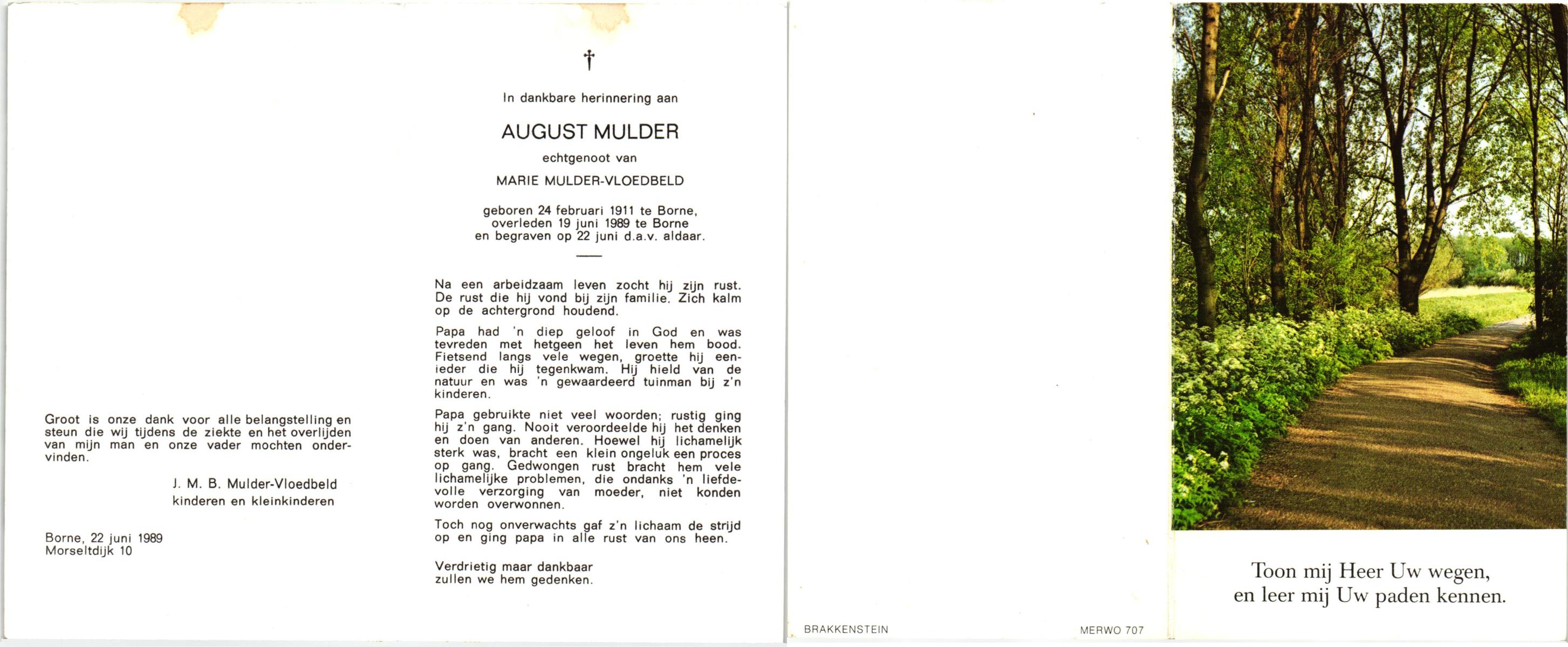 MULDER, , Bernardus Hermannus, geboren op 15-8-1916 te Borne, overleden op 12-9-1997 te Borne op 80-jarige leeftijd.