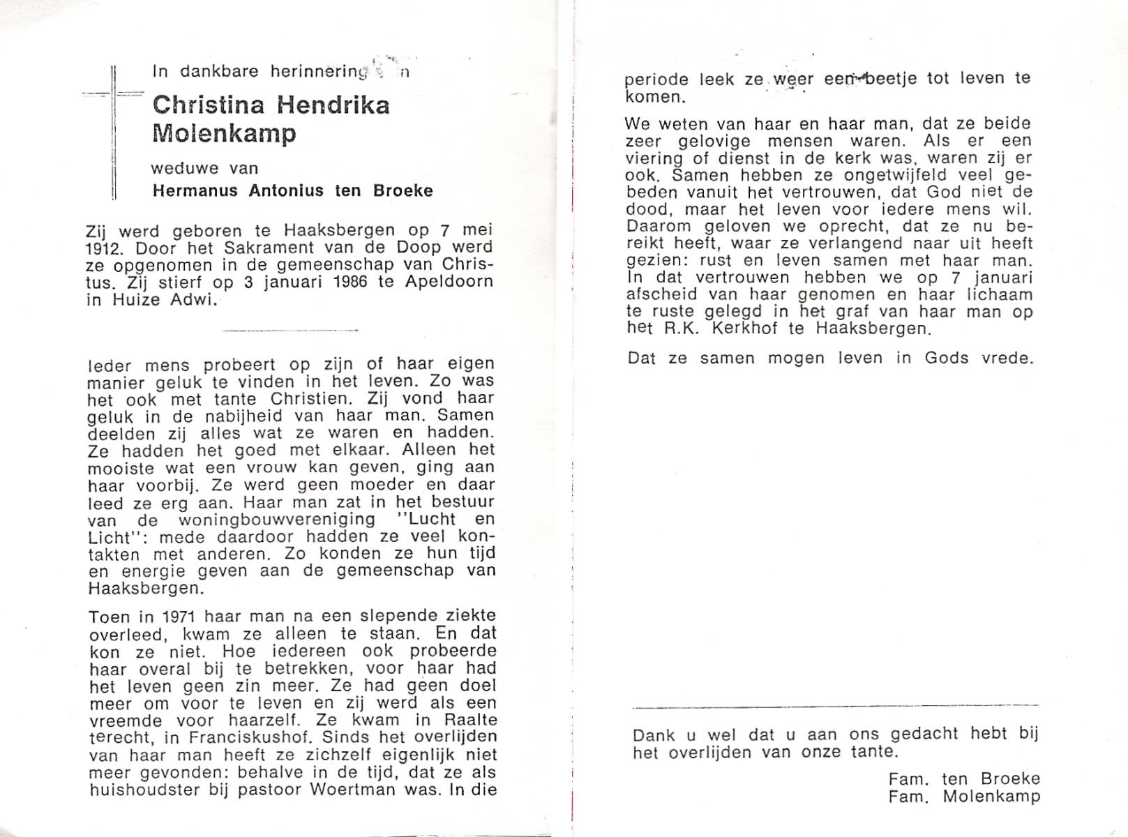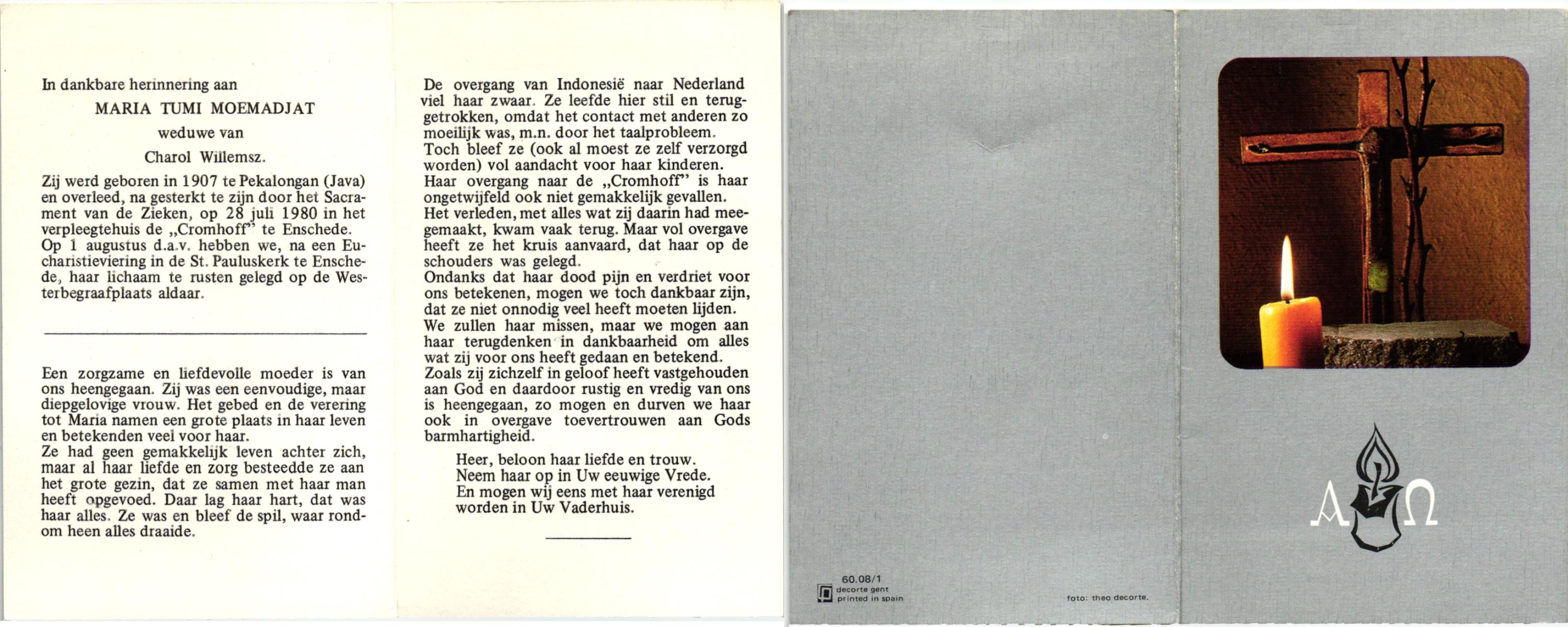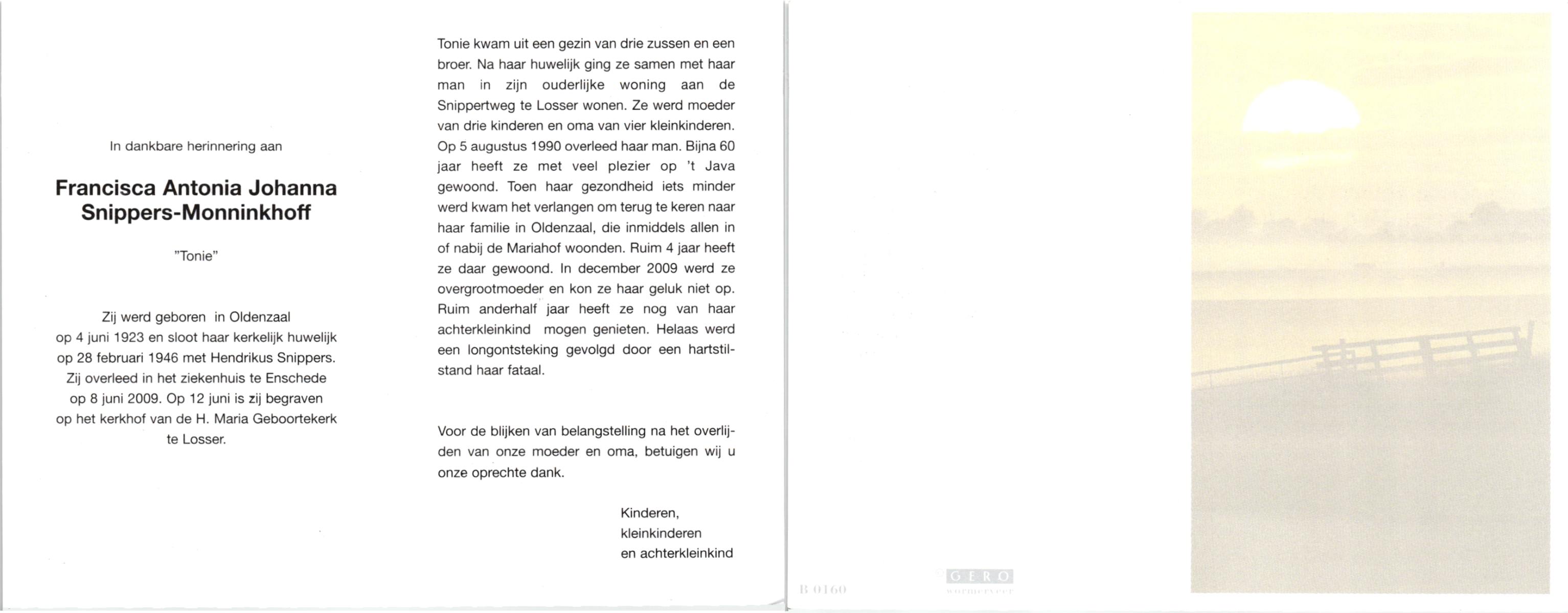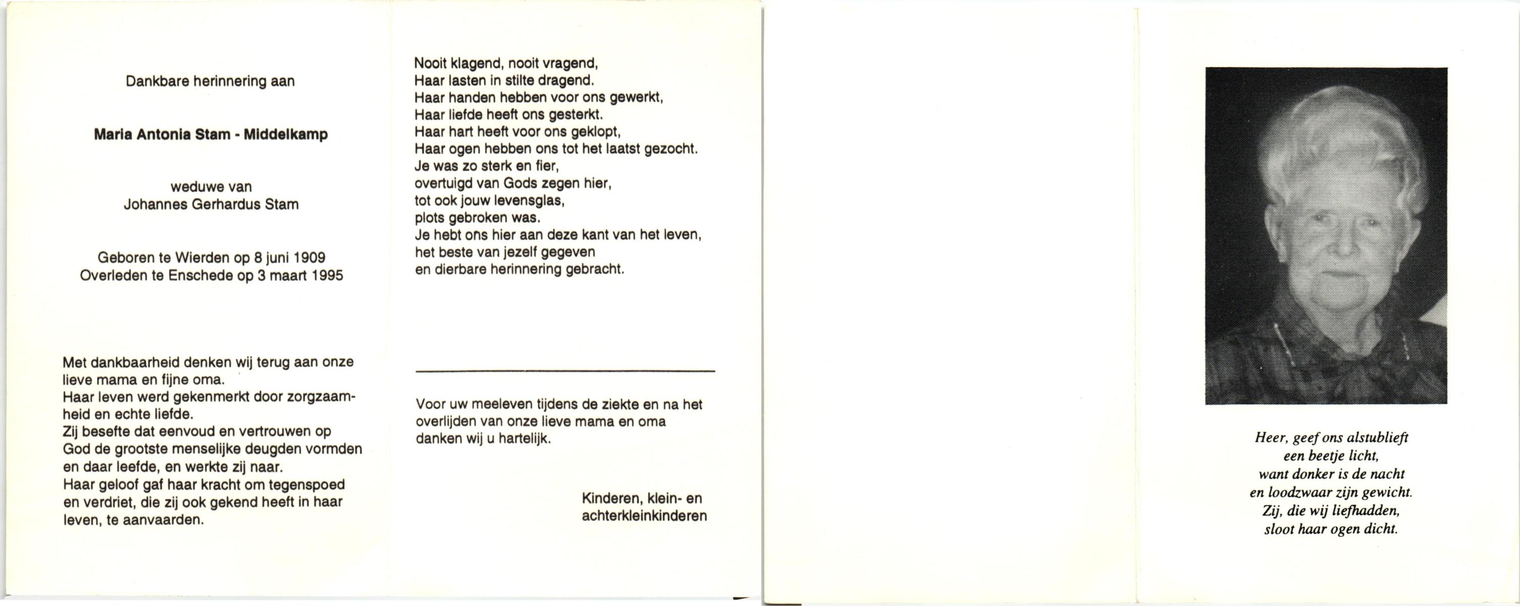 MIDDELKAMP, Maria Antonia, geboren op 8-6-1909 te Wierden, overleden op 3-3-1995 te Enschede op 85-jarige leeftijd.