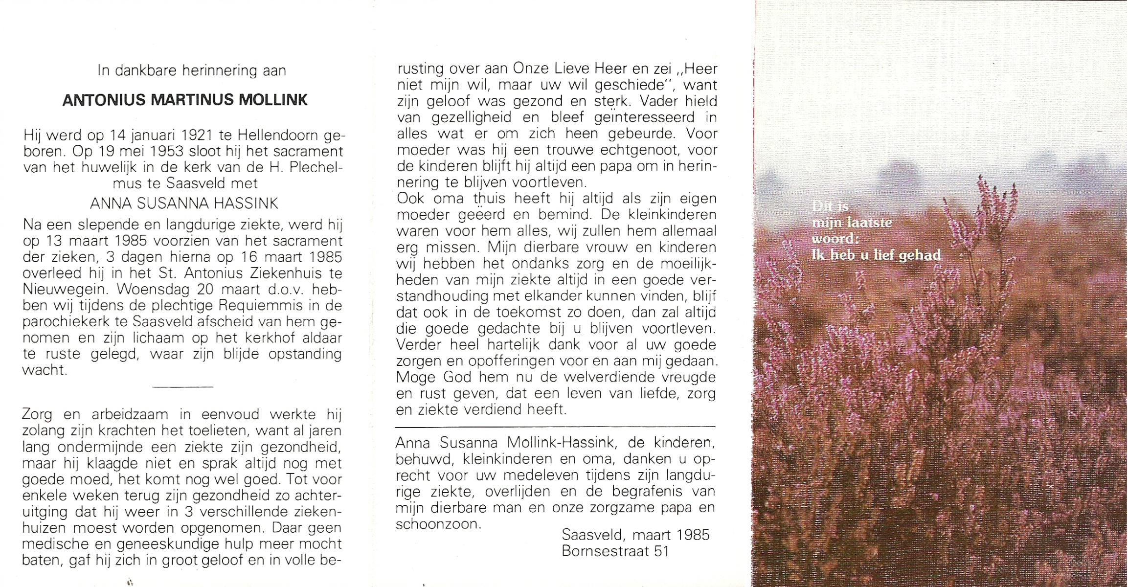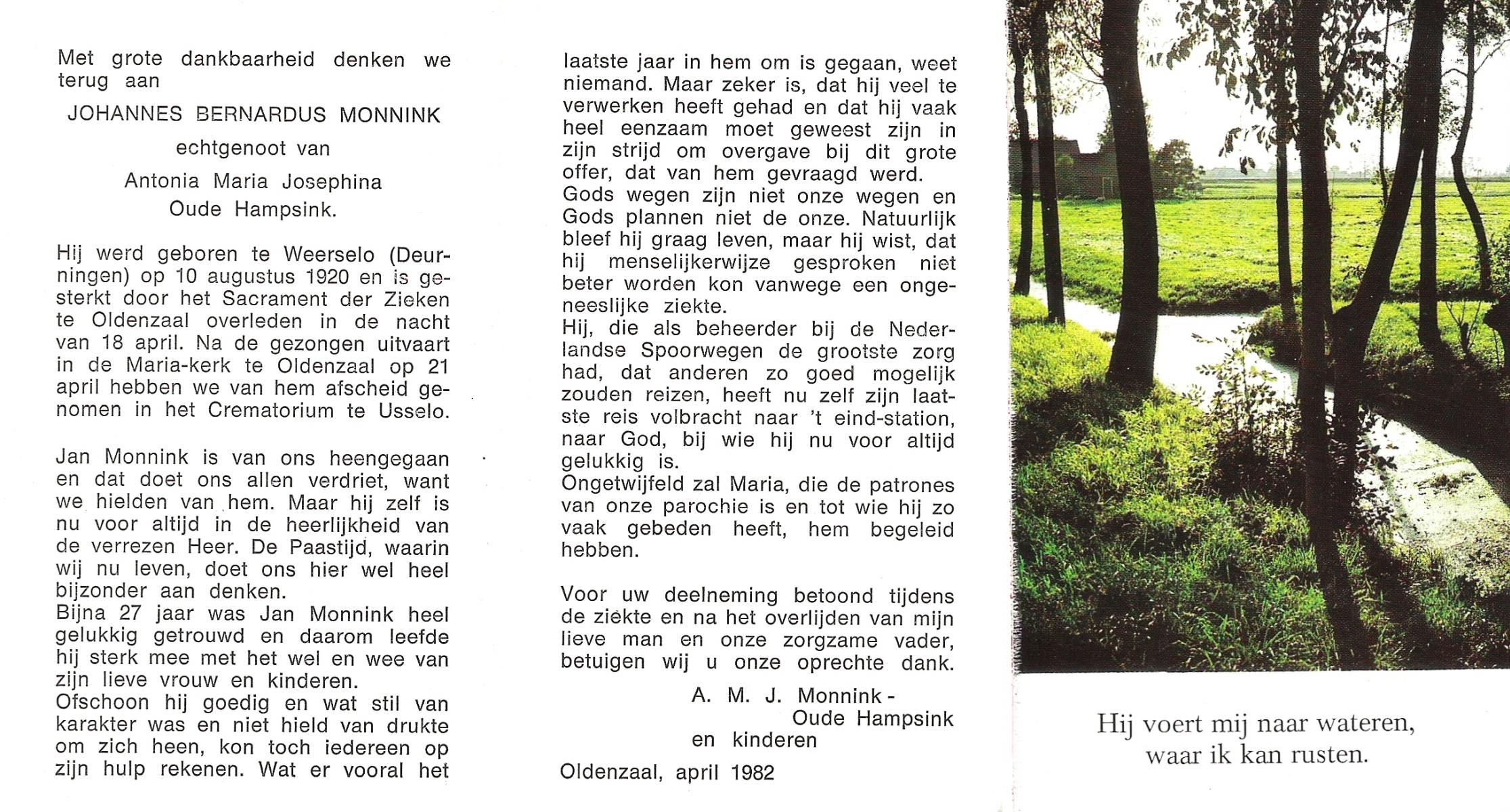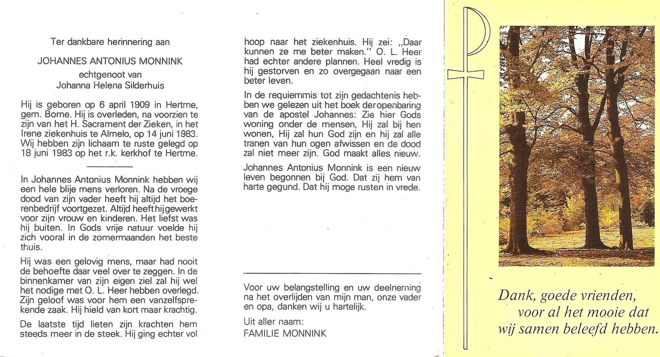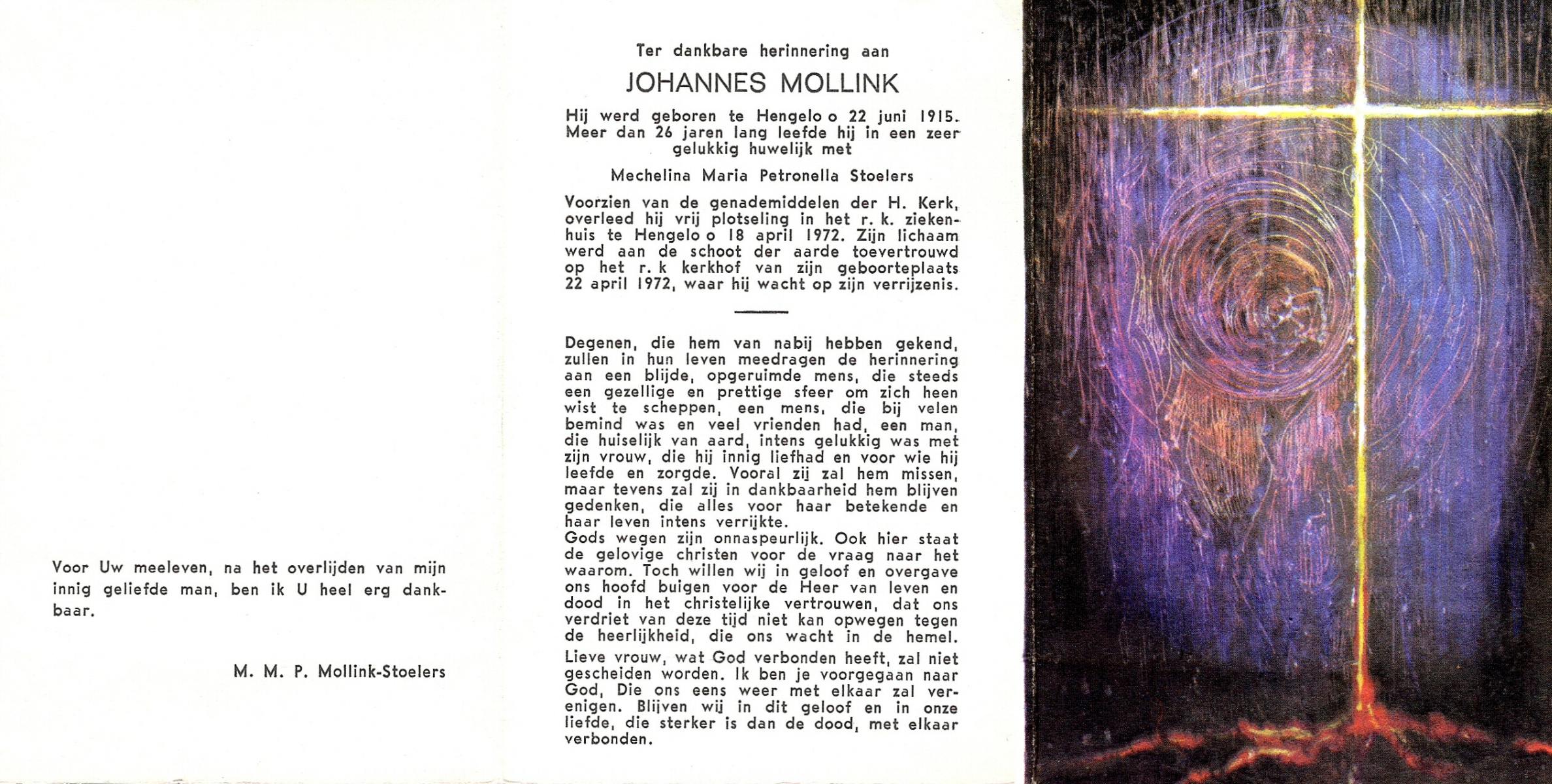 MIDDELKAMP, Hermannes Johannes, geboren op 9-2-1906 te Wierden, overleden op 22-6-1985 te Hellendoorn, Blenke op 79-jarige leeftijd, begraven op 26-6-1985 te Hellendoorn, Nijverdal, rk.