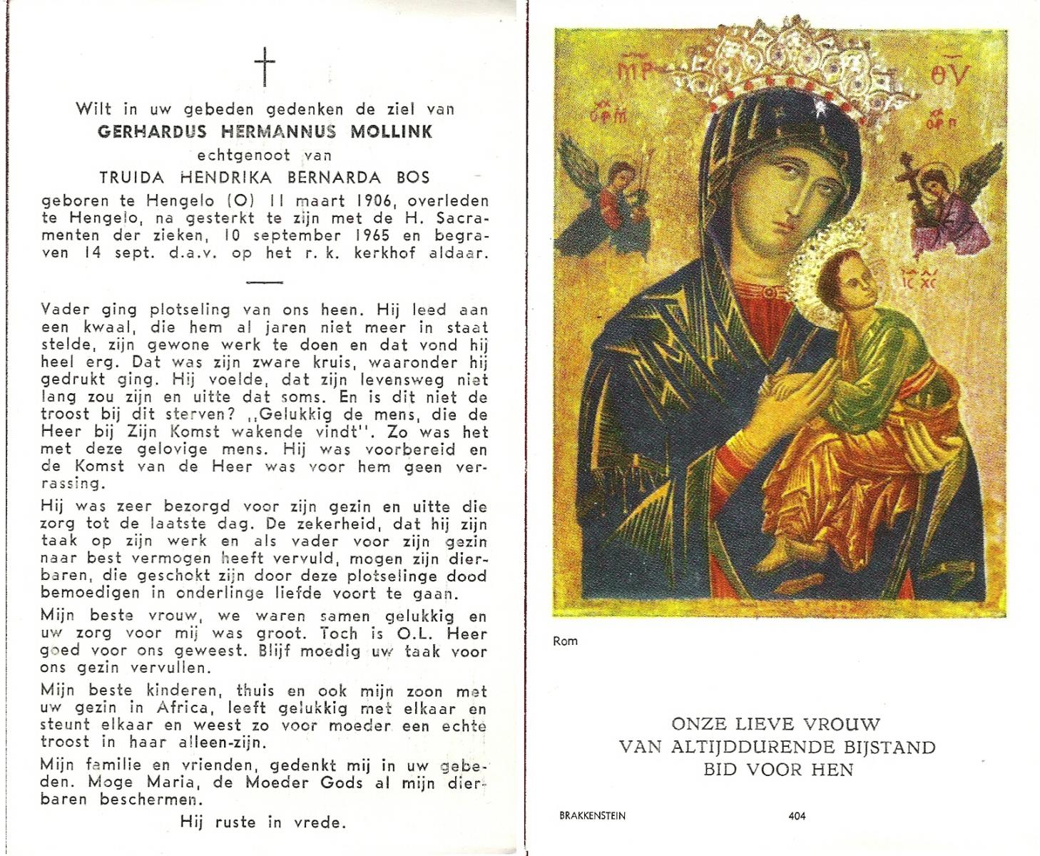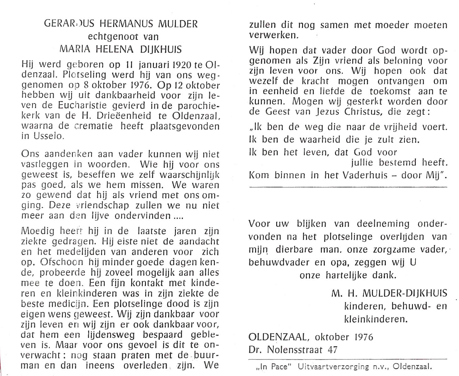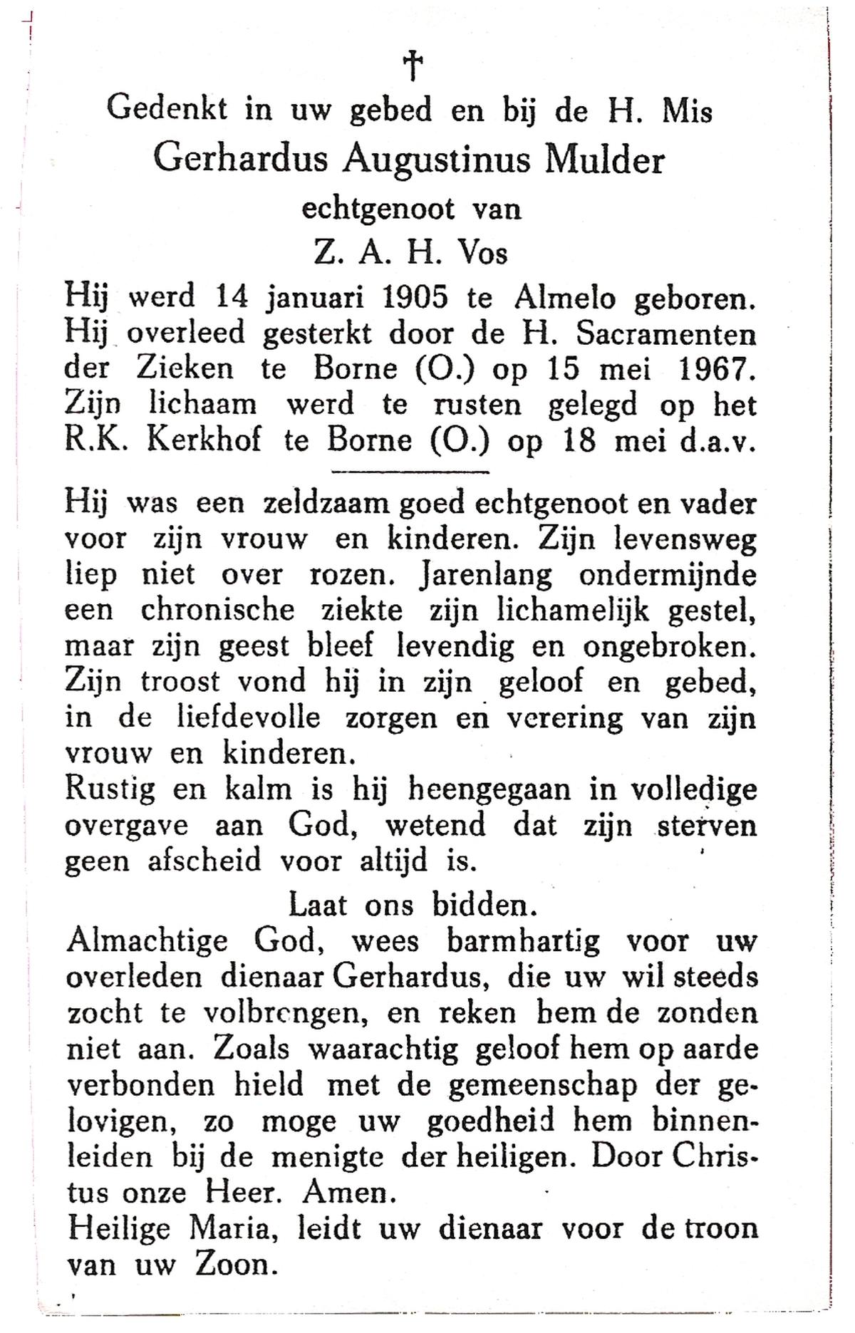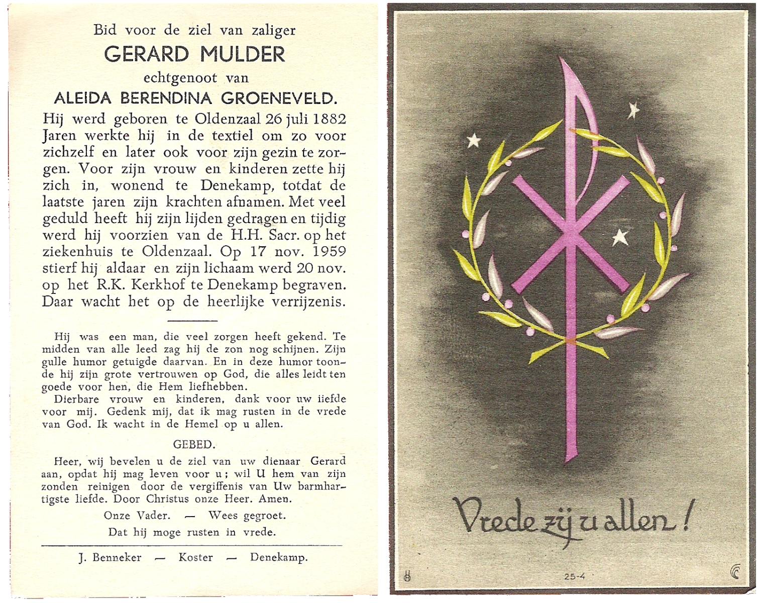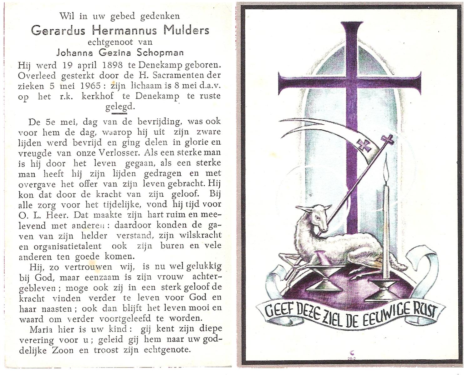 MULDERS, Gerardus Hermannus, geboren op 19-04-1898 te Denekamp, overleden op 5-5-1965 op 67-jarige leeftijd, begraven op 8-5-1965 te Denekamp.