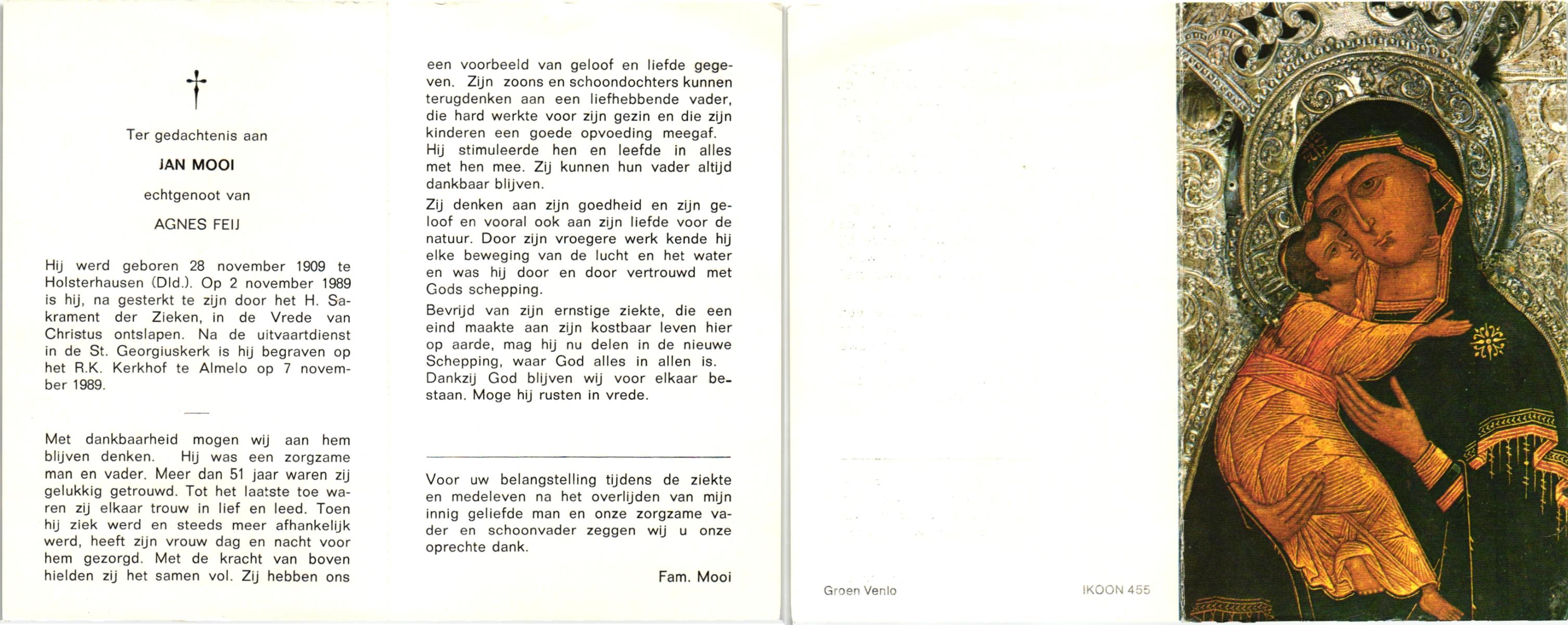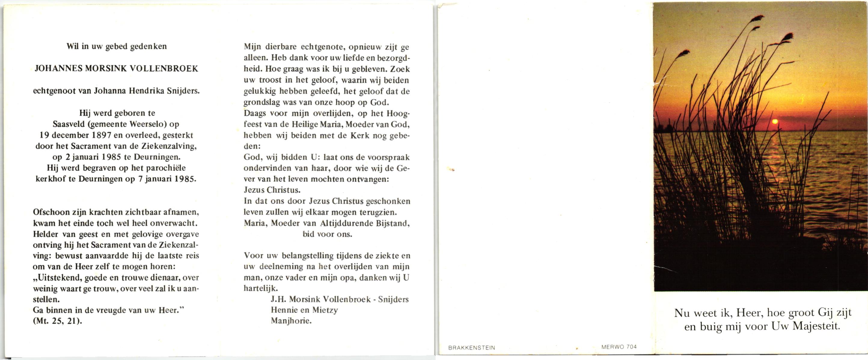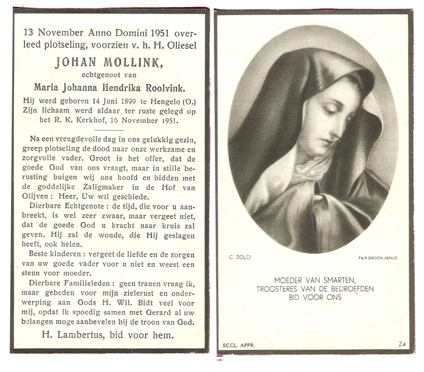 MULDER, Johannes, geboren op 07-01-1890 te Rijssen, overleden op 12-11-1975 te Rijssen op 85-jarige leeftijd, begraven op 15-11-1975 te Rijssen, rk.