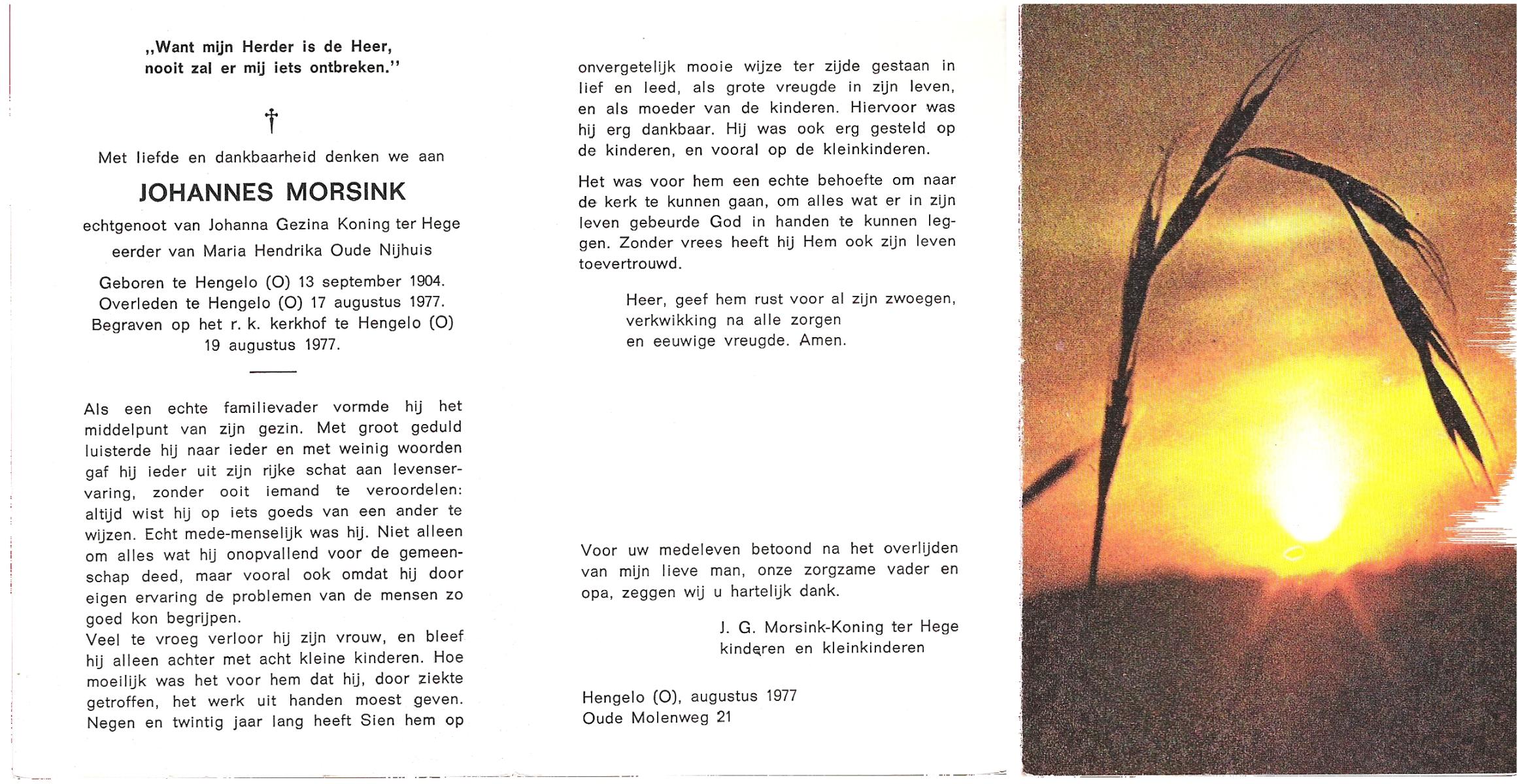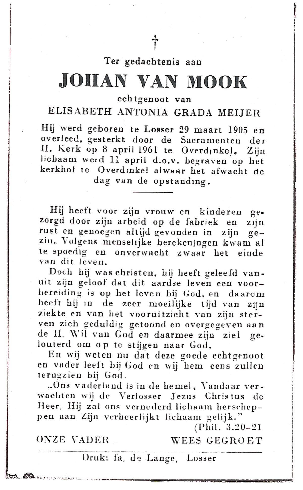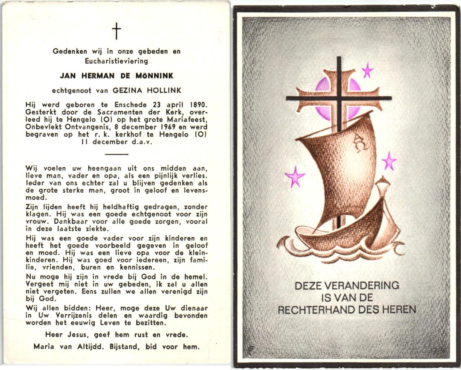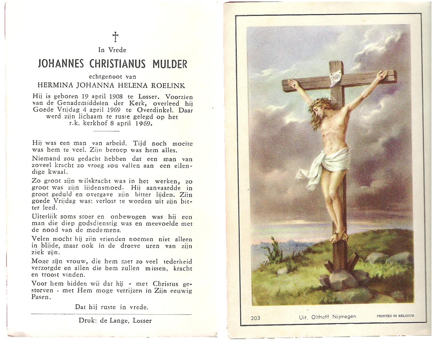 MULDER, Johannes Christianus, geboren op 19-4-1908 te Losser, overleden op 4-4-1969 te Overdinkel op 60-jarige leeftijd, begraven op 8-8-1969 te Overdinkel.