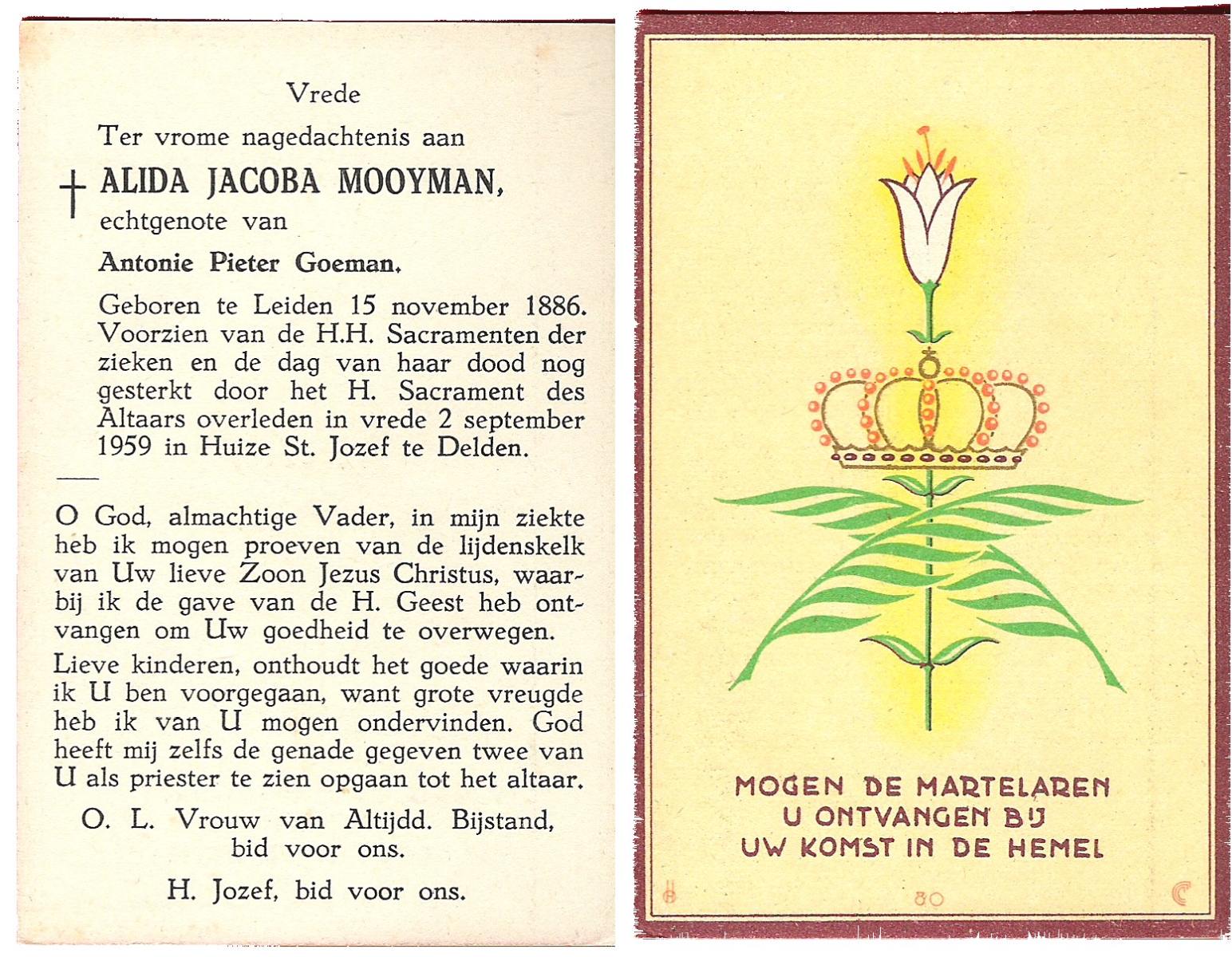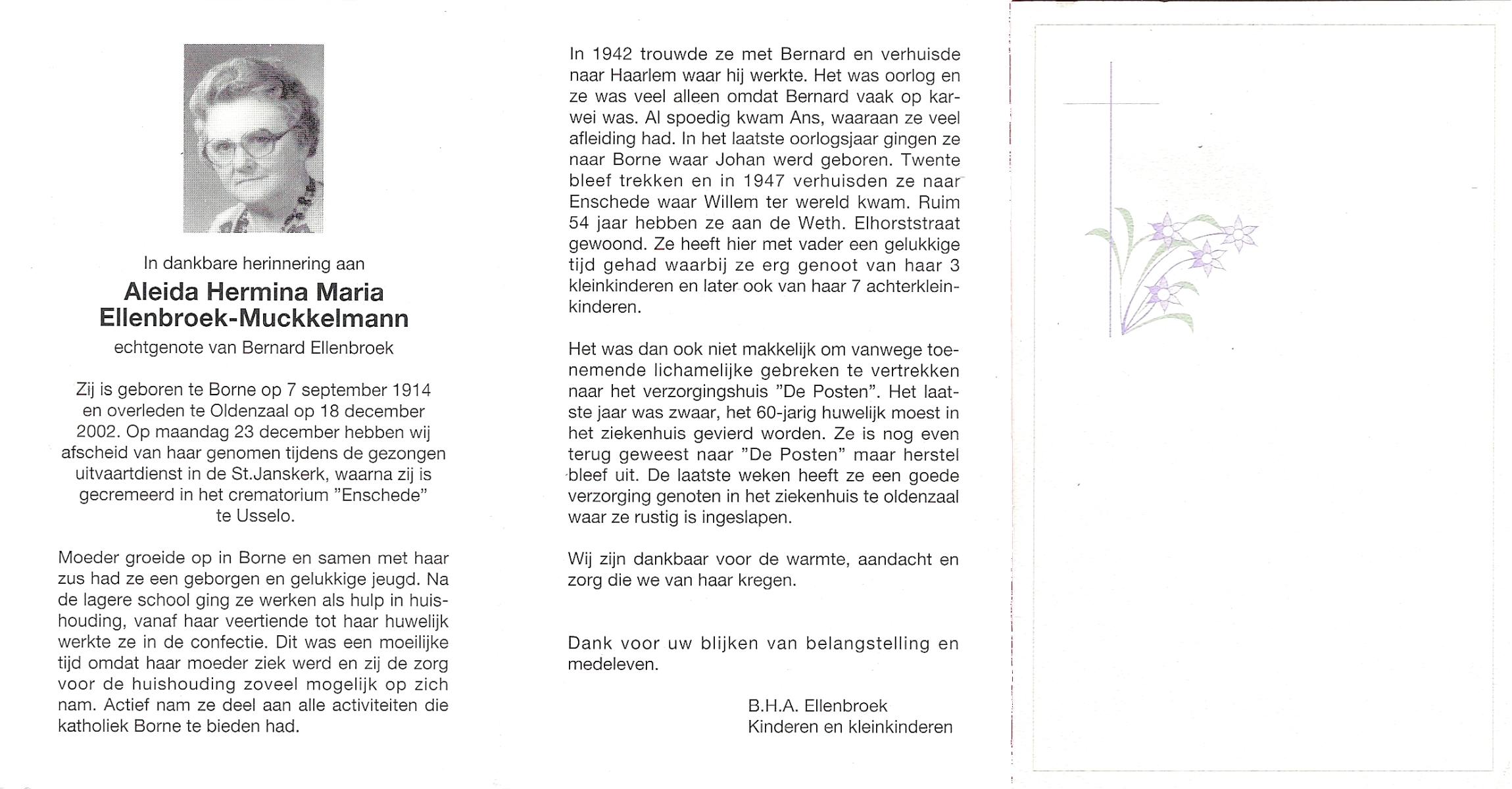 MIDDELHUIS, Aleida Grada, geboren op 2-4-1929 te Neede, overleden op 7-12-1999 te Delden op 70-jarige leeftijd, begraven op 11-12-1999 te Delden.