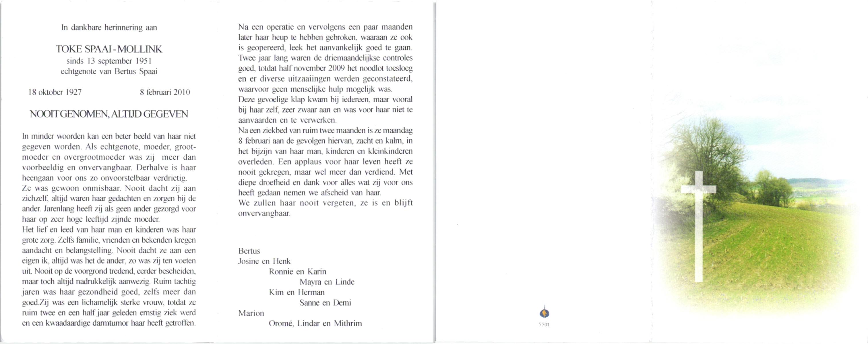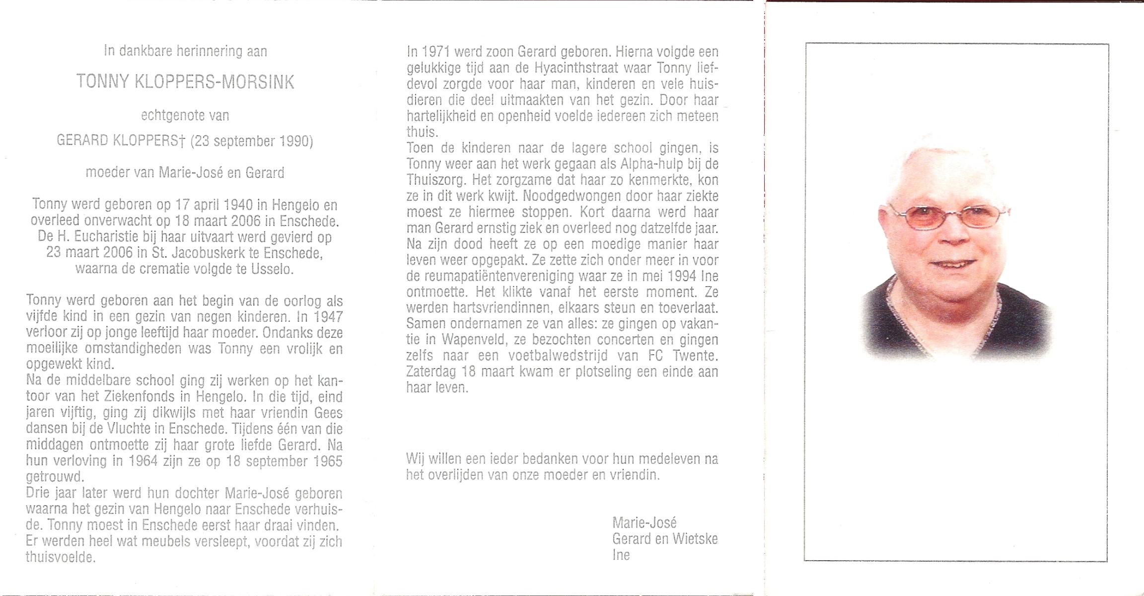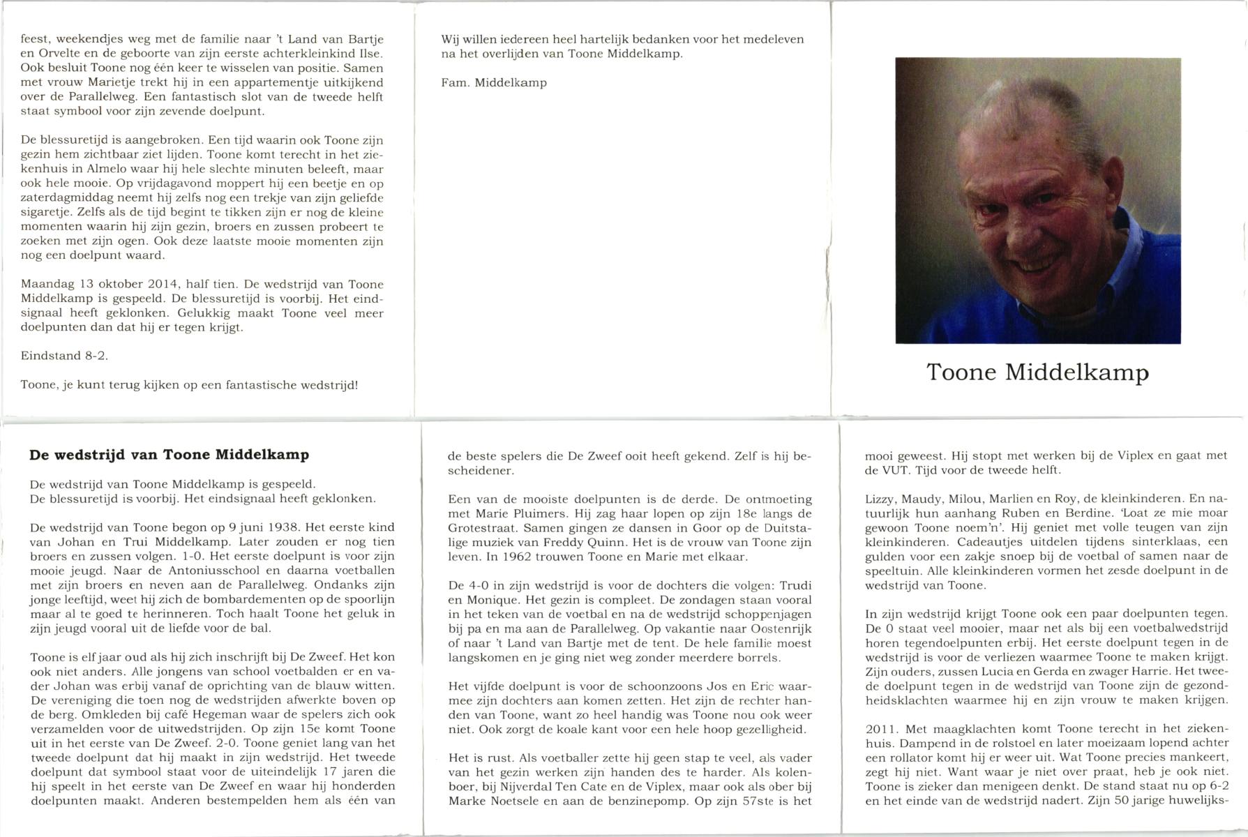 MIDDELKAMP, , Toone, geboren op 9-6-1938, overleden op 13-10-2014 te Hellendoorn, Nijverdal op 76-jarige leeftijd.