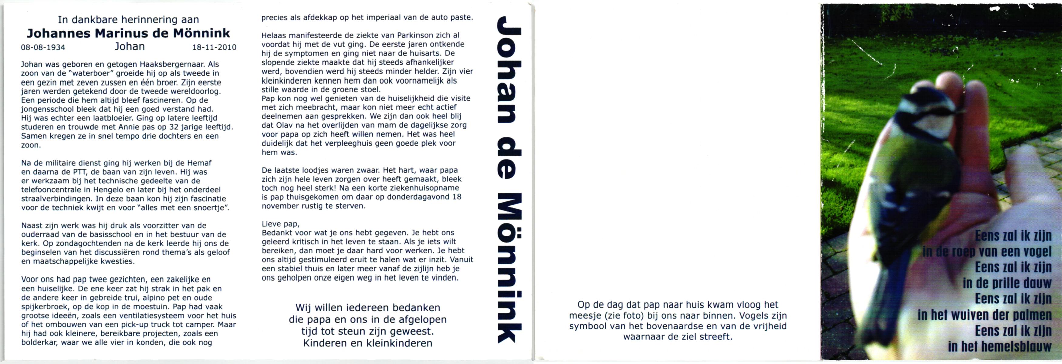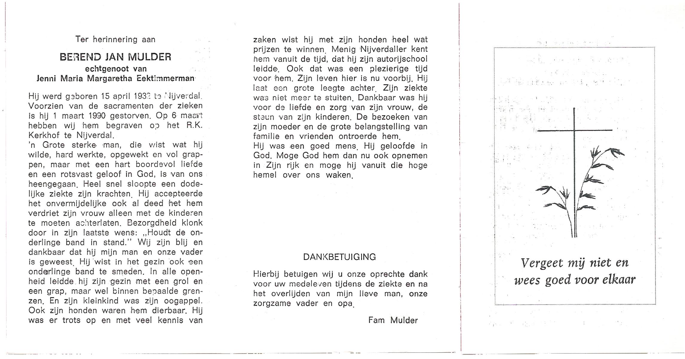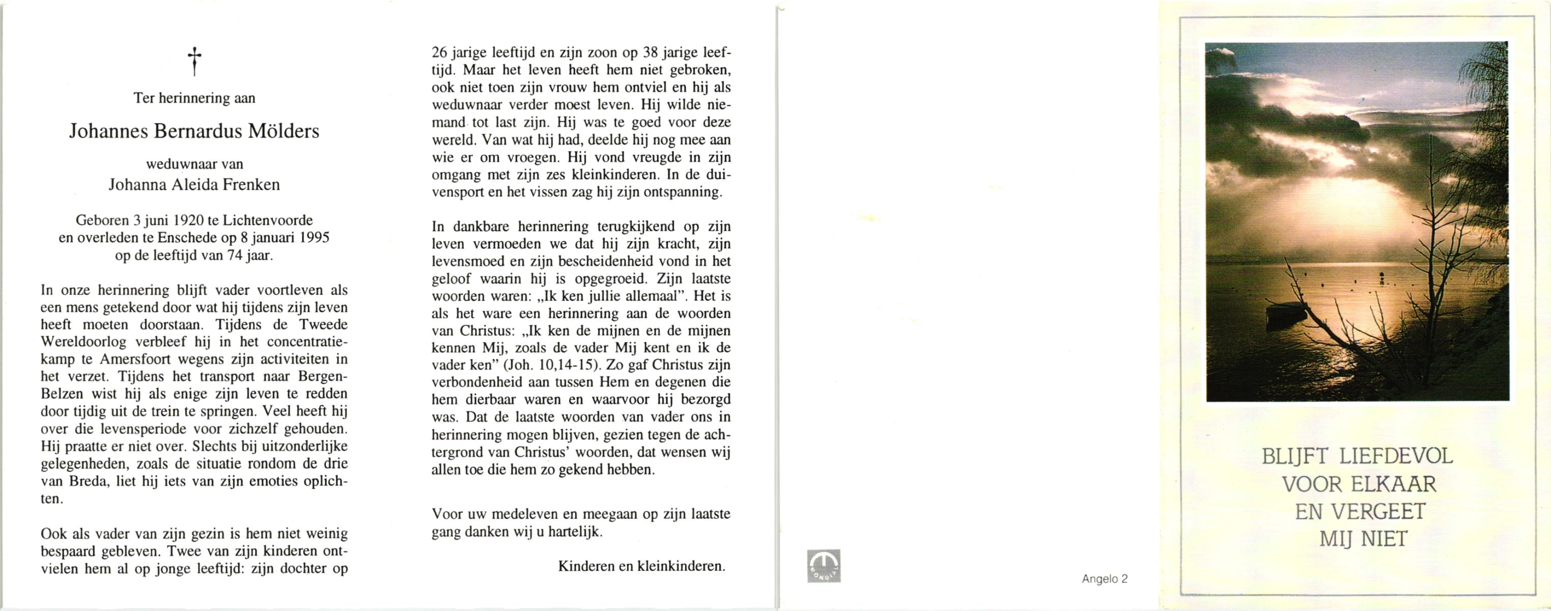 MULDER, Johannes Bernardus, geboren op 31-12-1931 te Borne, overleden op 7-7-2000 te Hengelo op 68-jarige leeftijd.