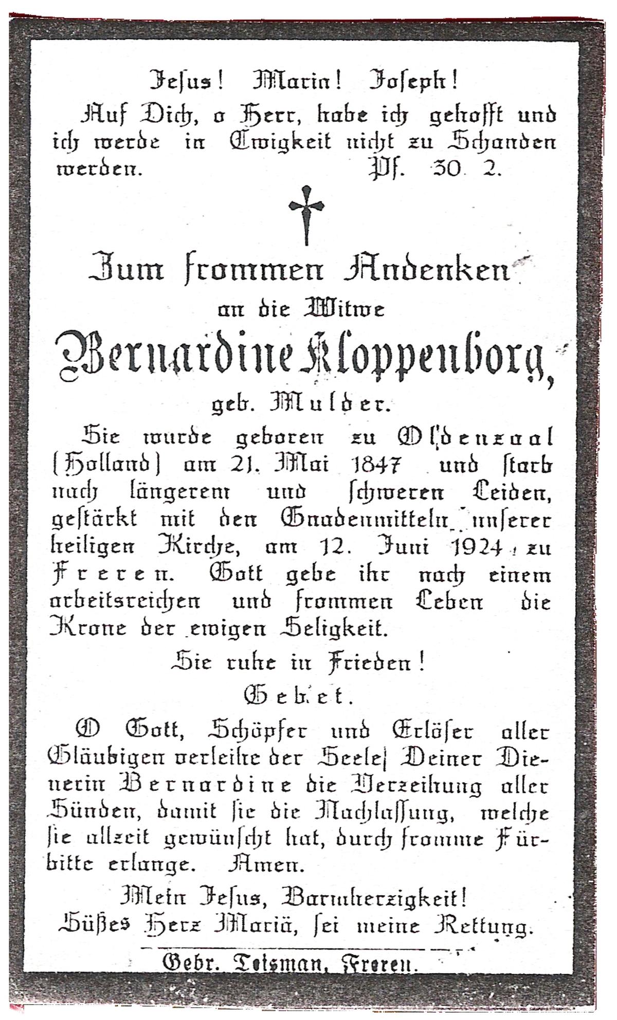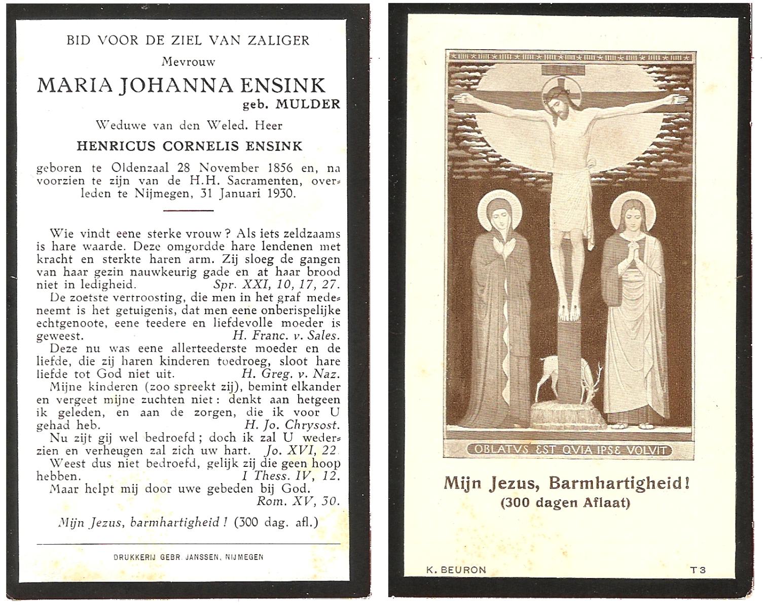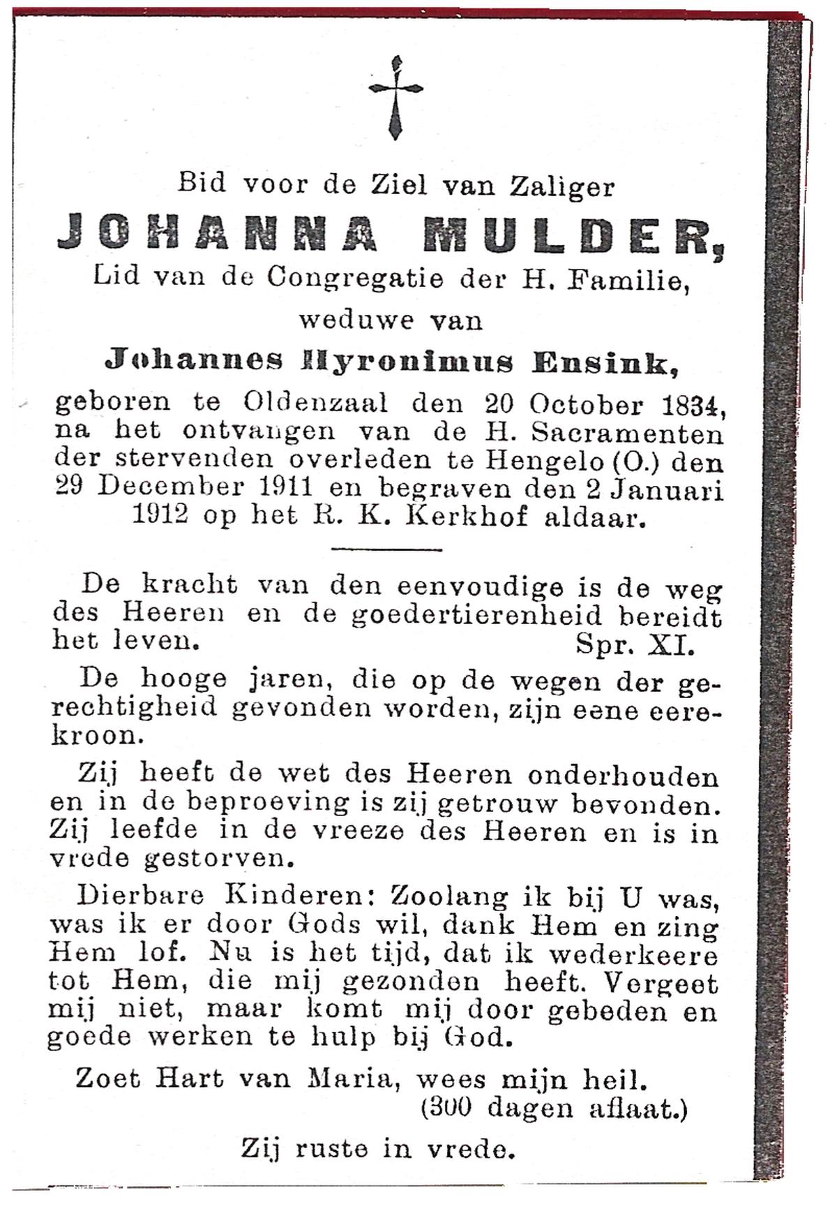 MULDER, Maria Johanna, geboren op 28-11-1856 te Oldenzaal, overleden op 31-1-1930 te Nijmegen op 73-jarige leeftijd.