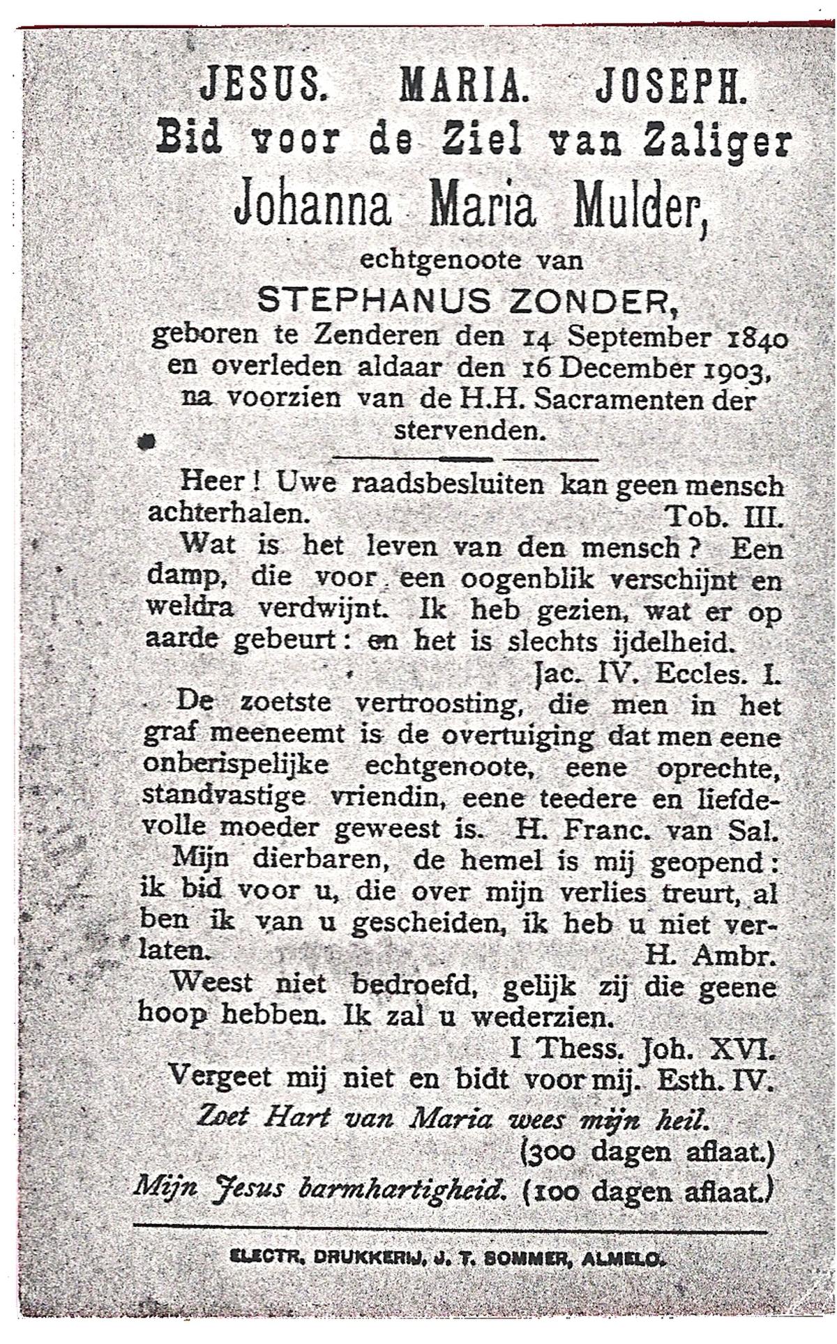 MULDER, Johanna Maria, geboren op 14-09-1840 te Zenderen, overleden op 16-12-1903 te Zenderen op 63-jarige leeftijd.